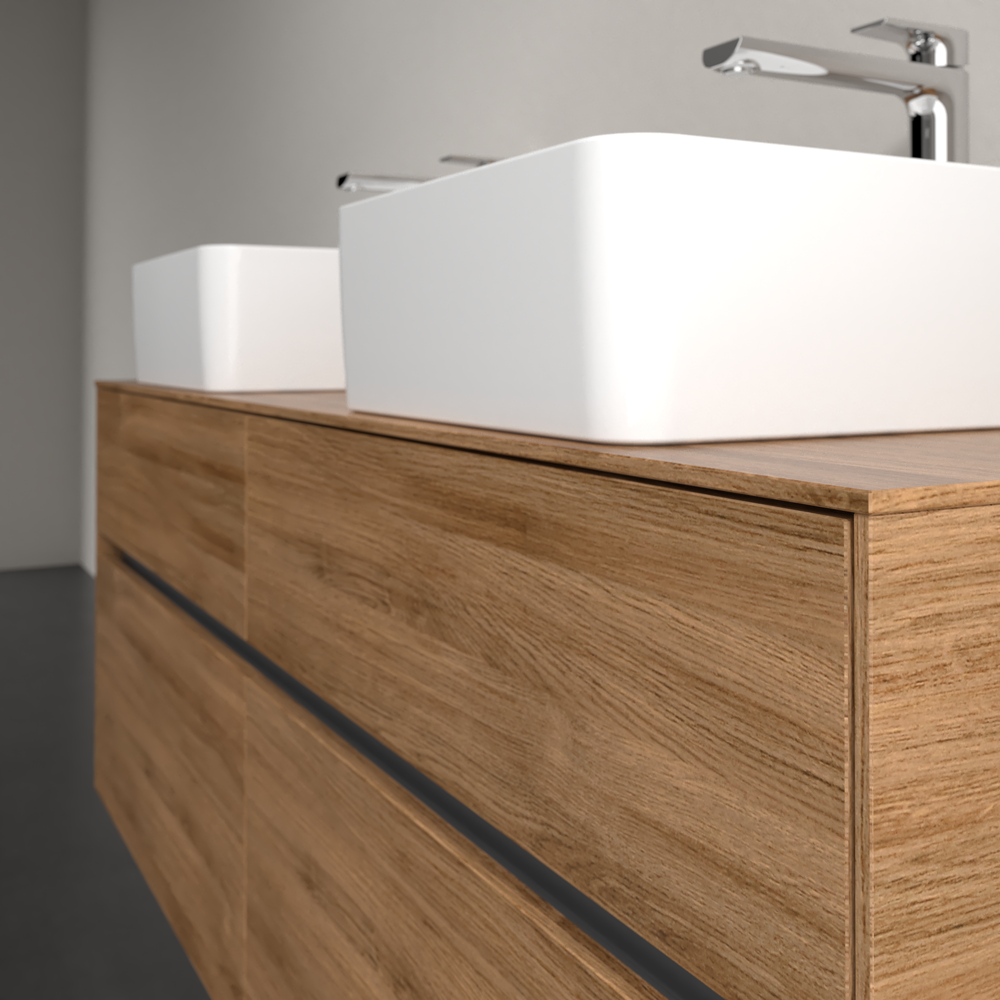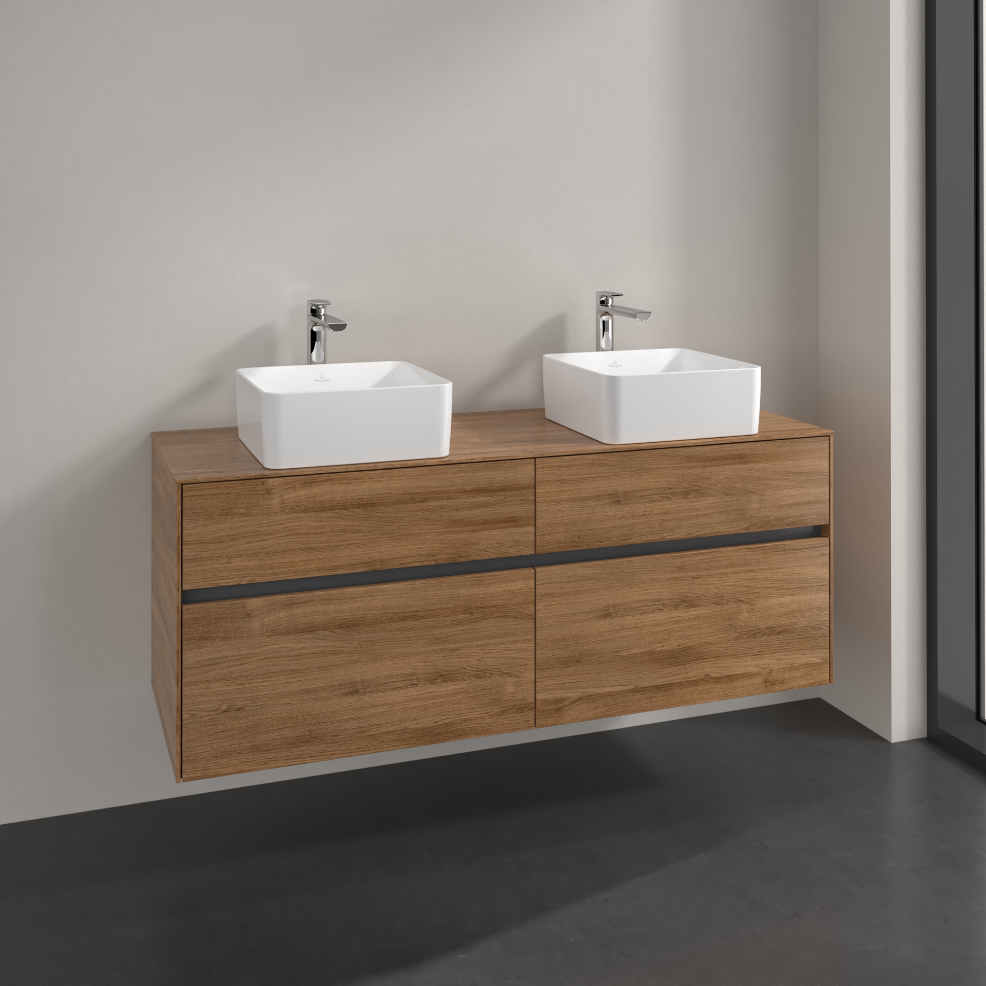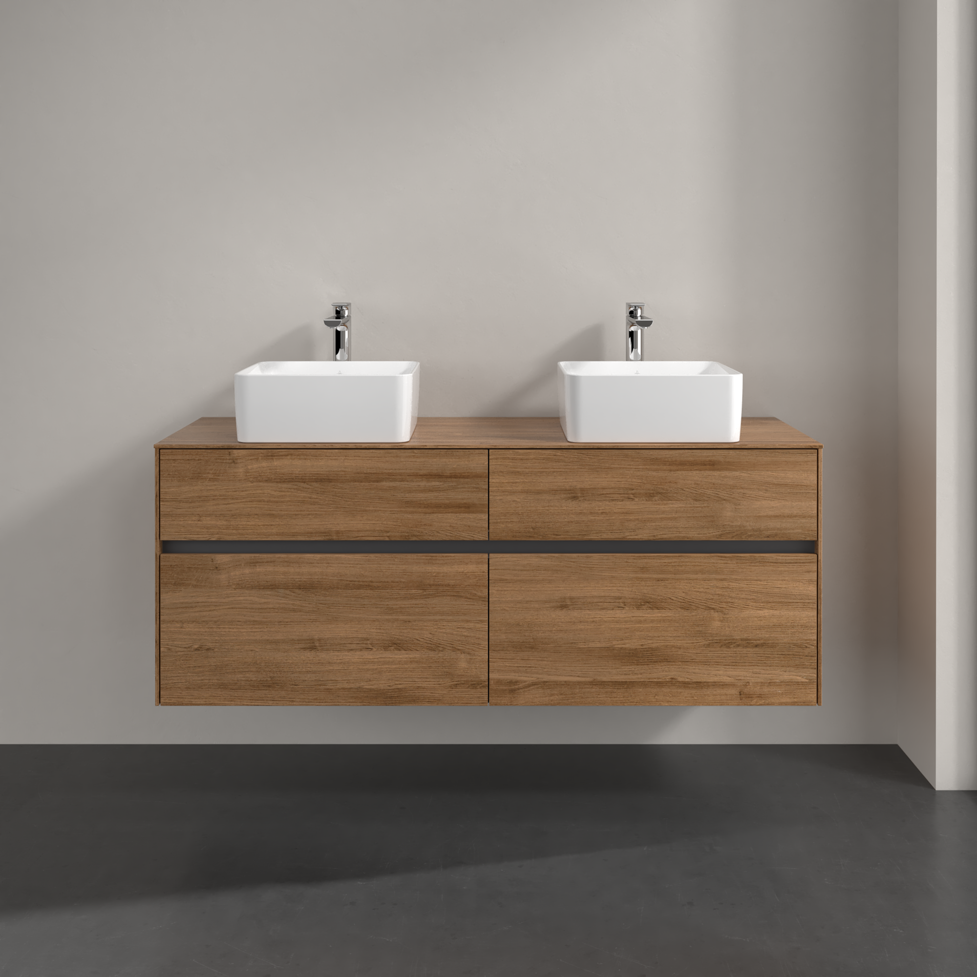 Collaro Meuble sous plan, 4 tiroirs sur rails, 1400x548x500mm, Caisson: Oak Kansas, Façade: Oak Kansas
