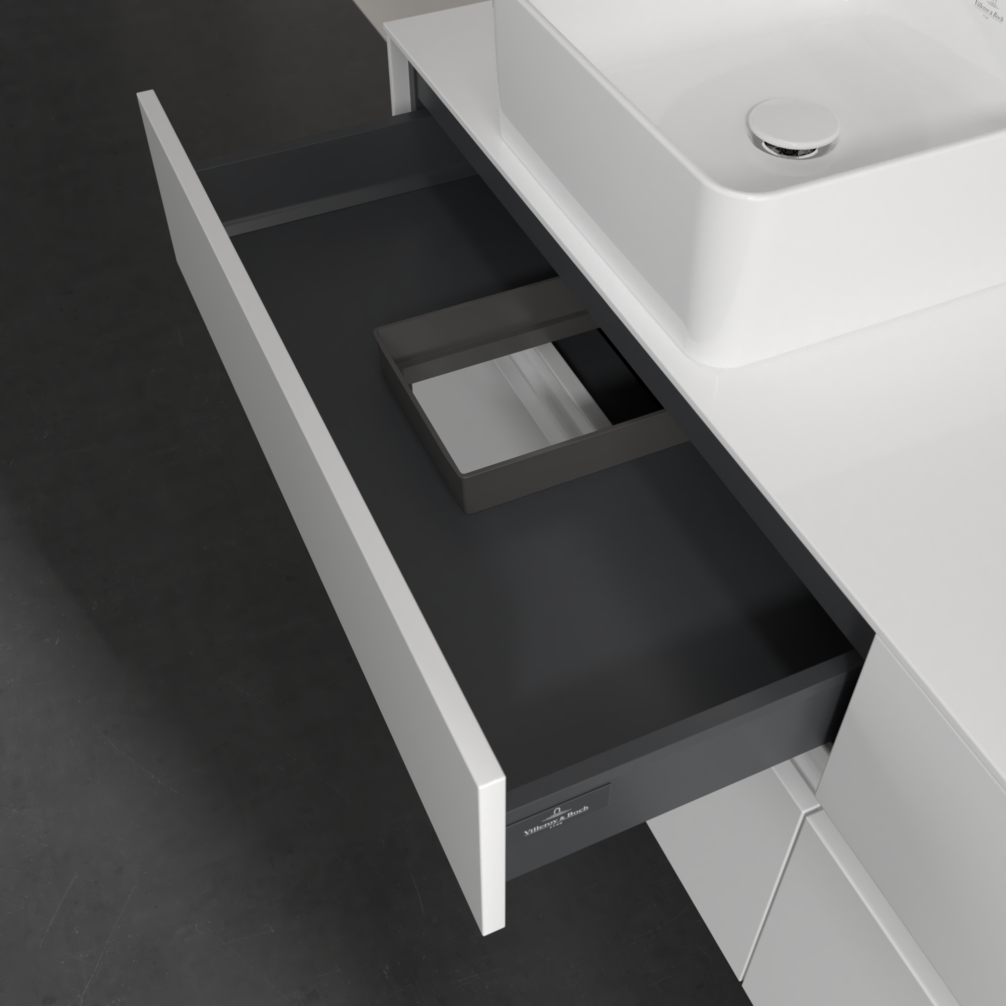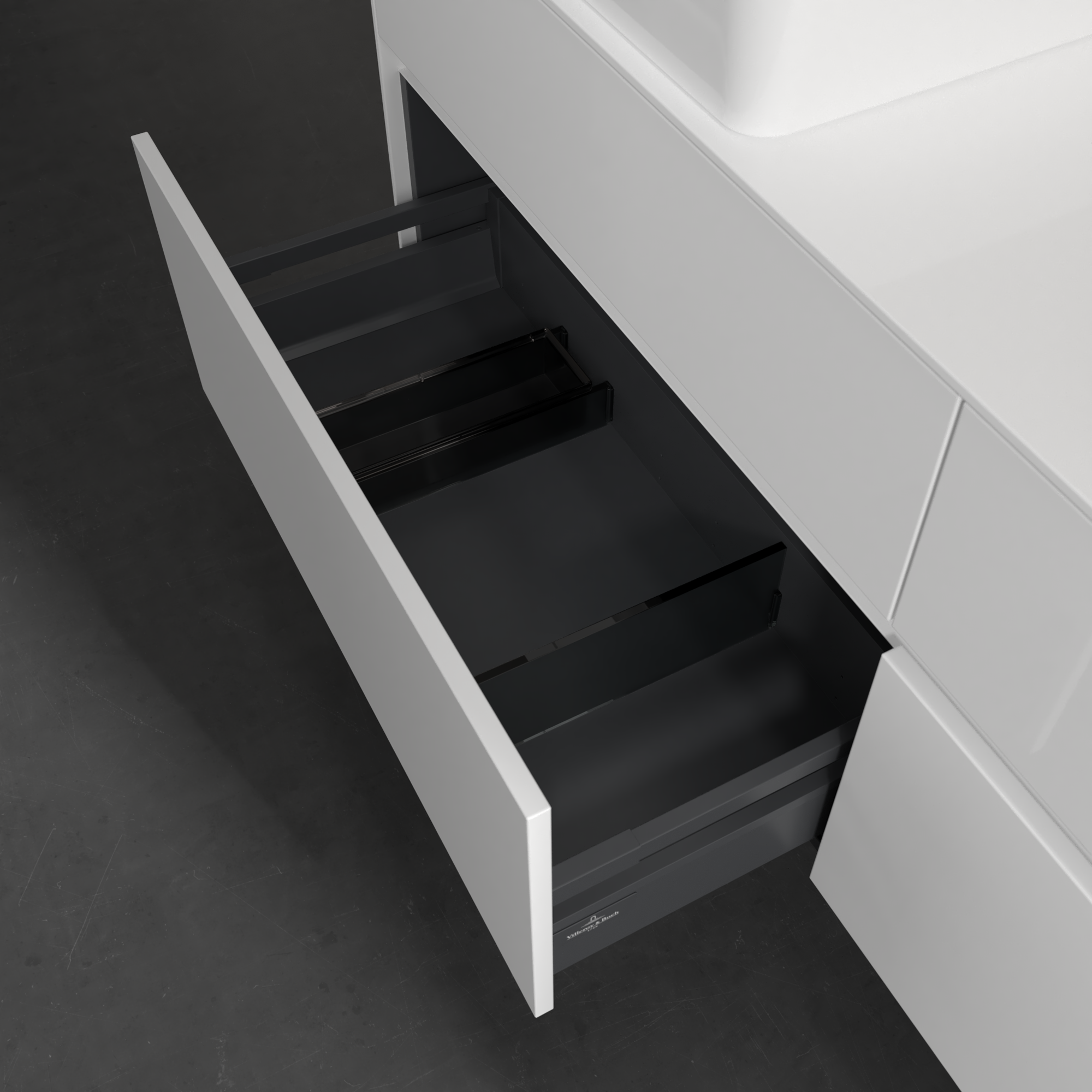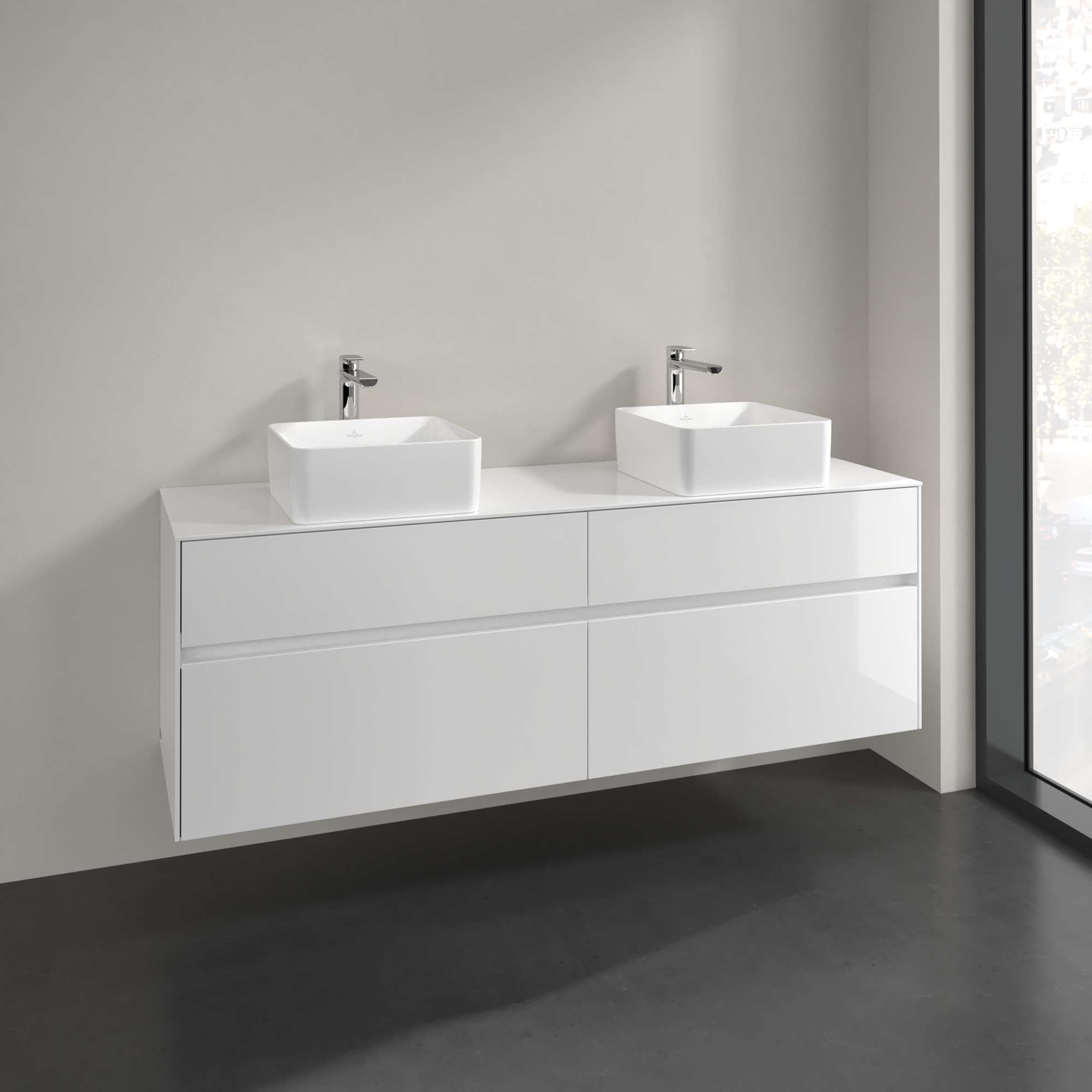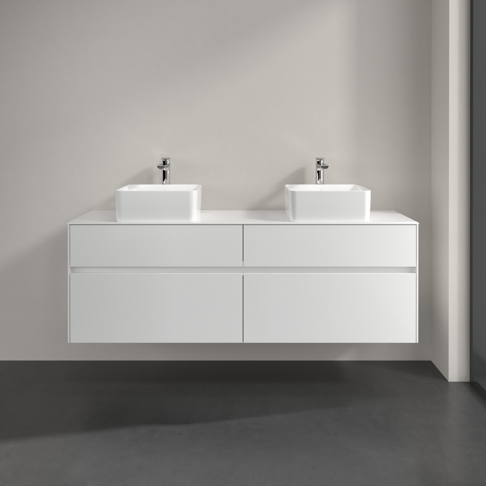 Collaro Meuble sous plan, 4 tiroirs sur rails, 1600x548x500mm, Caisson: Glossy White, Façade: Glossy White