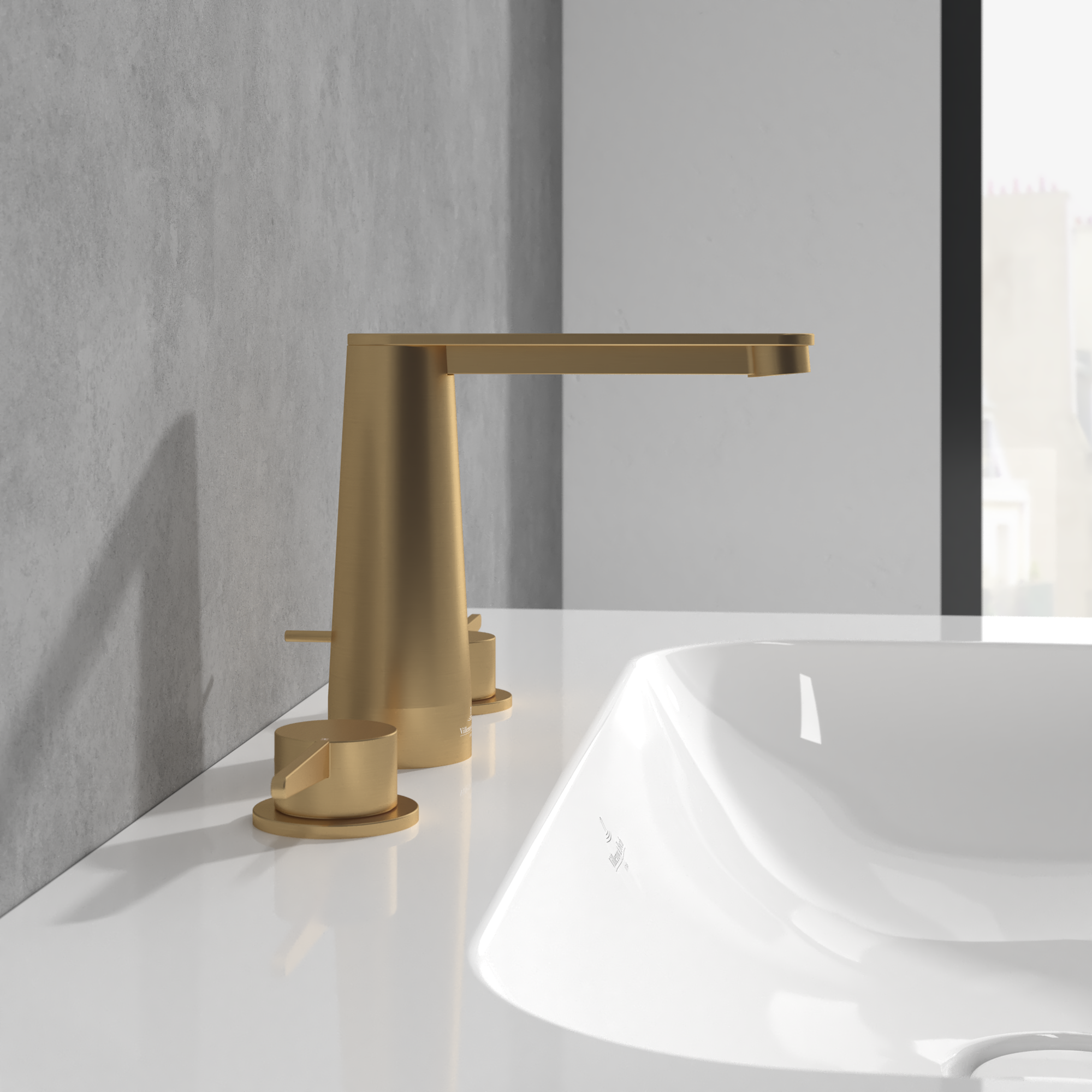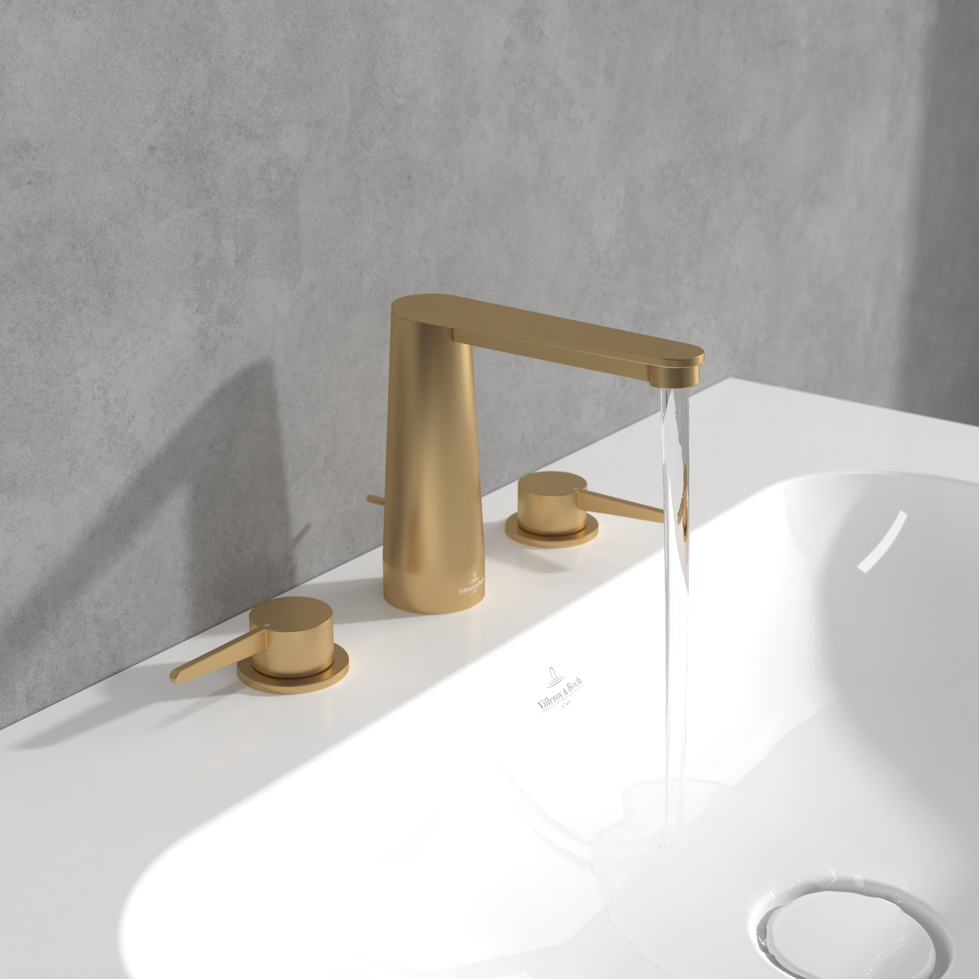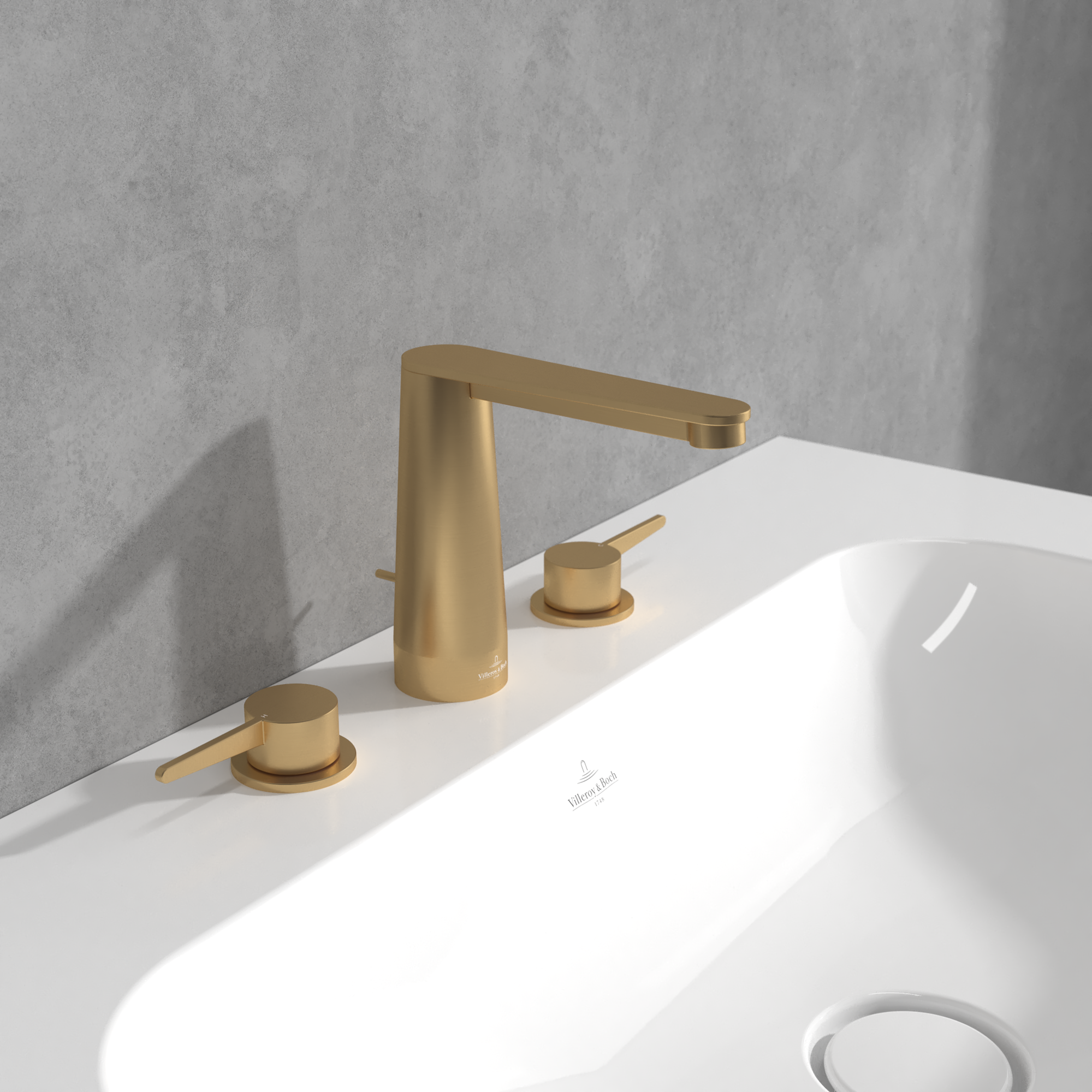 Conum Robinetterie de lavabo trois trous, Avec dispositif de vidage à tirette, Brushed Gold
