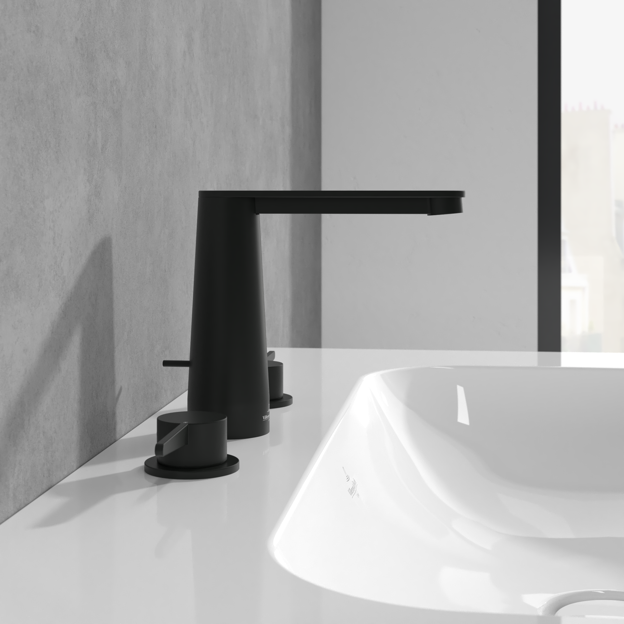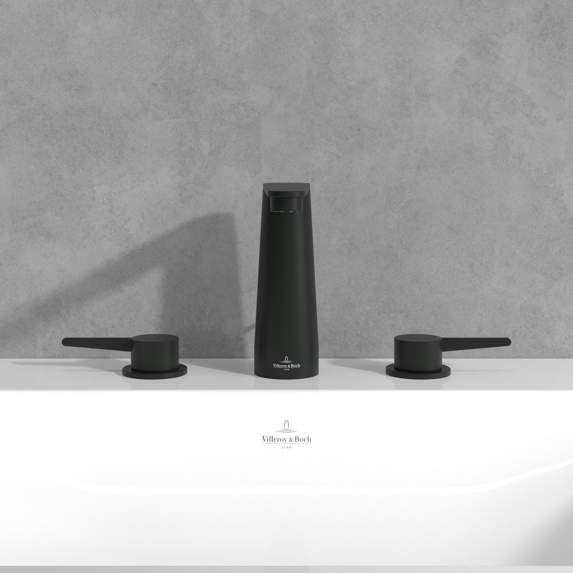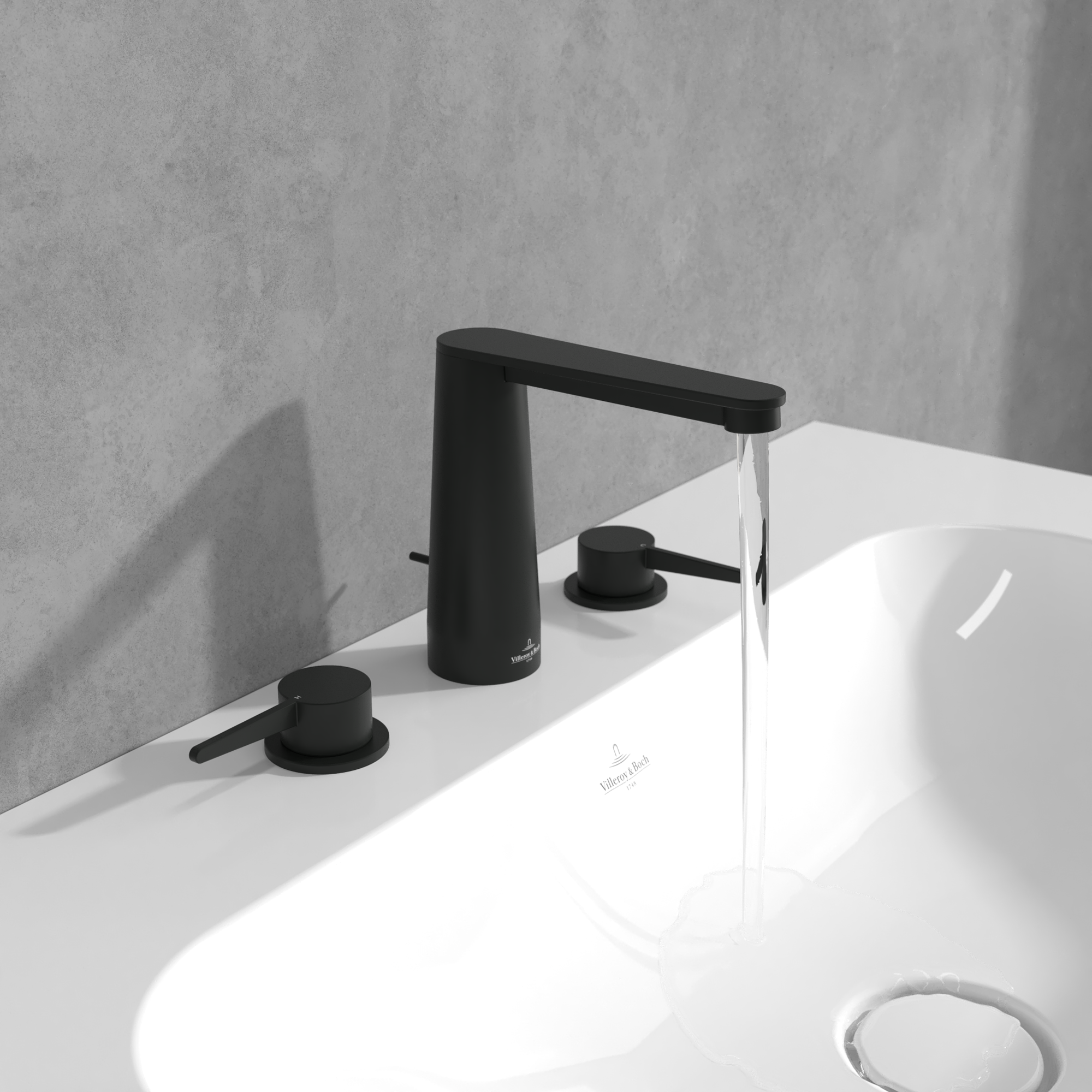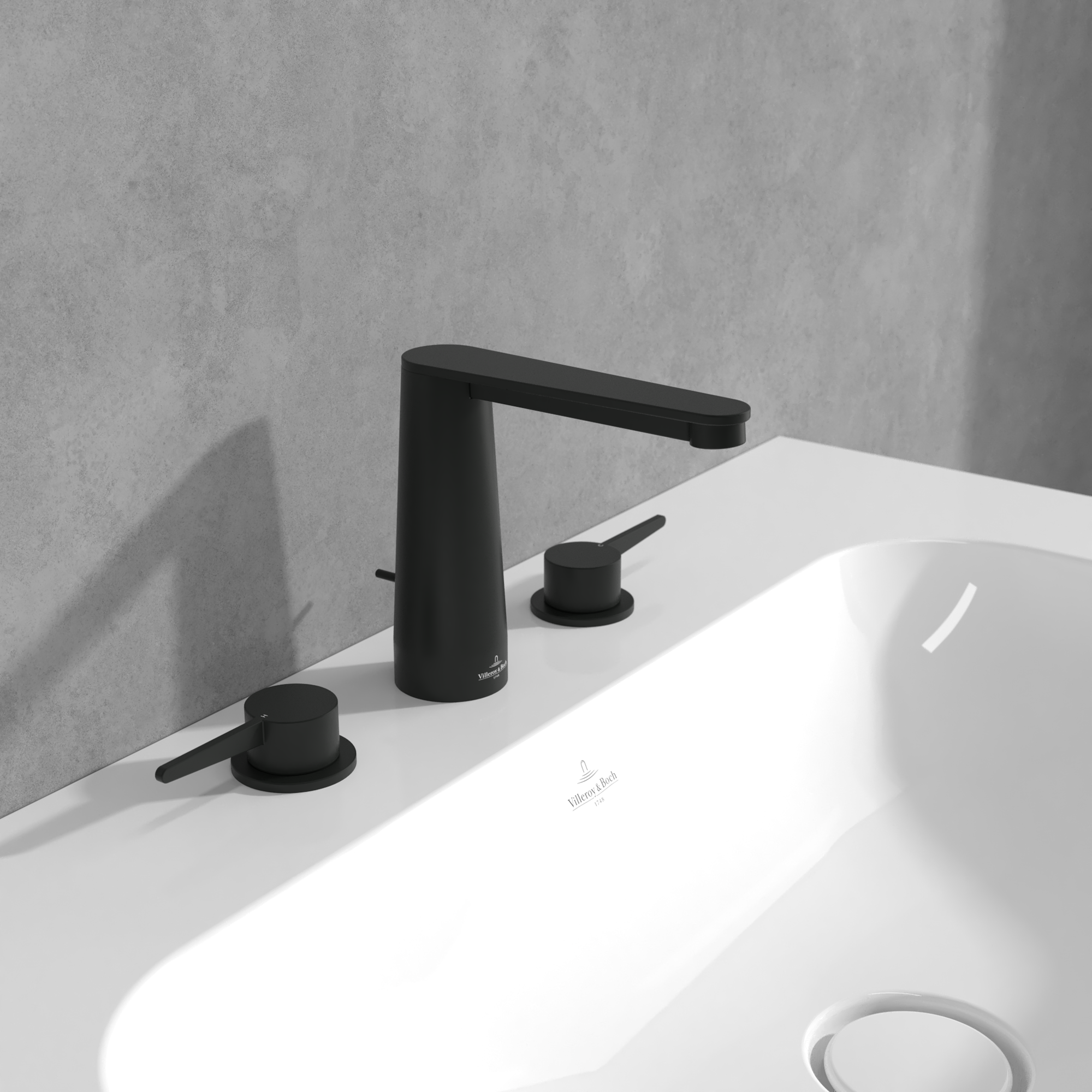 Conum Robinetterie de lavabo trois trous, Avec dispositif de vidage à tirette, Matt Black