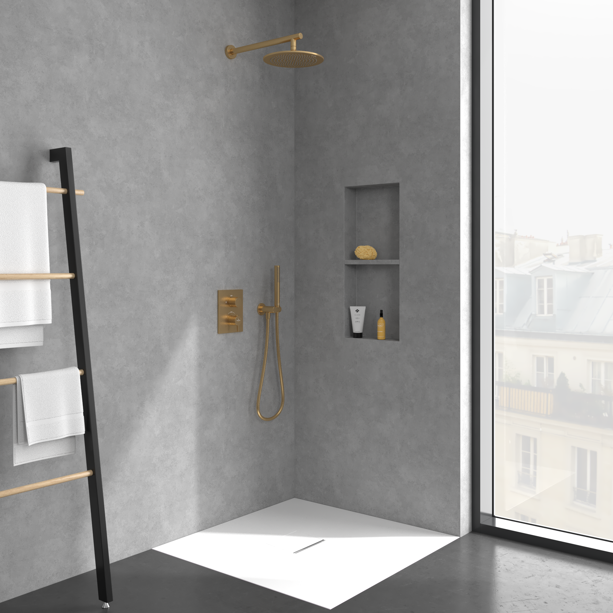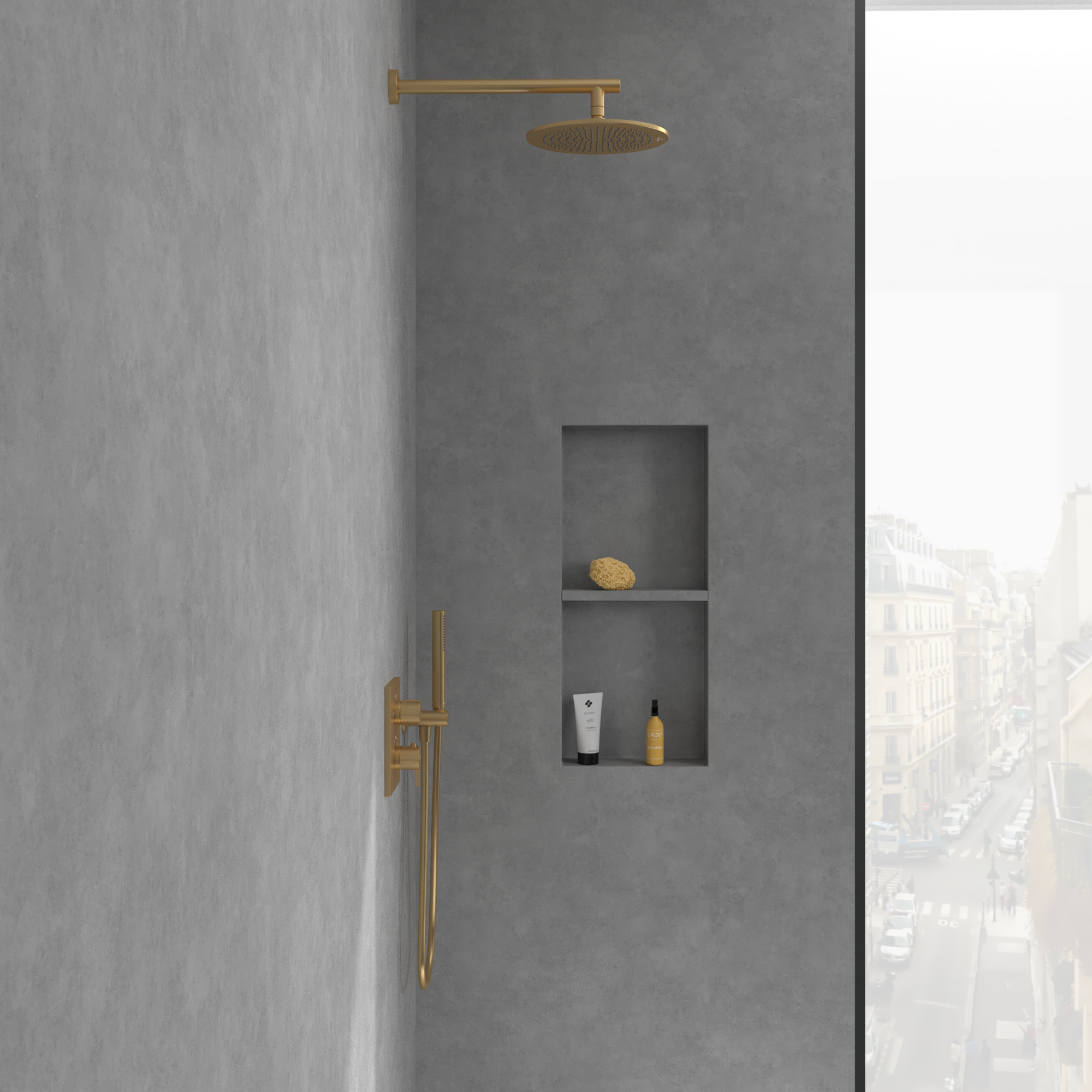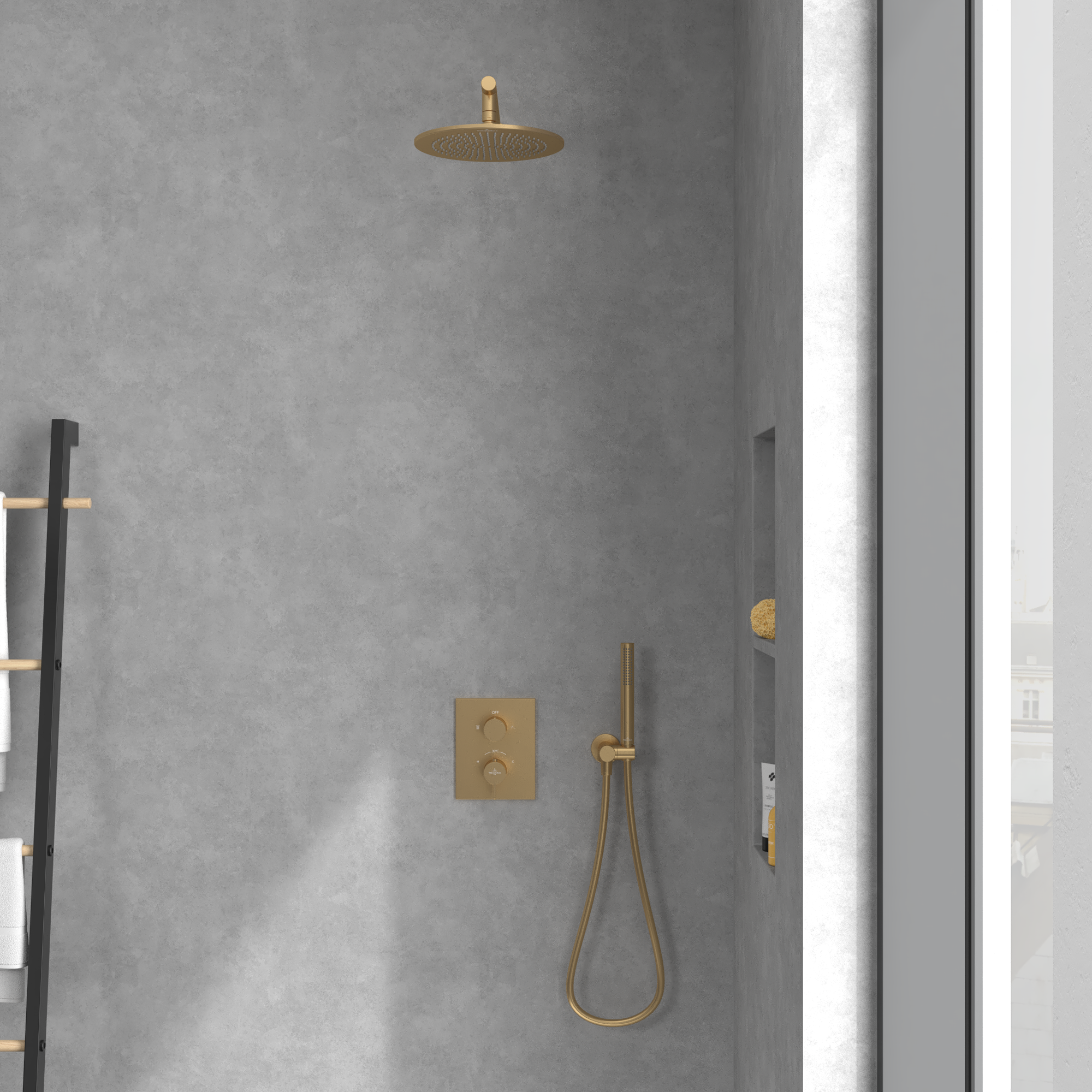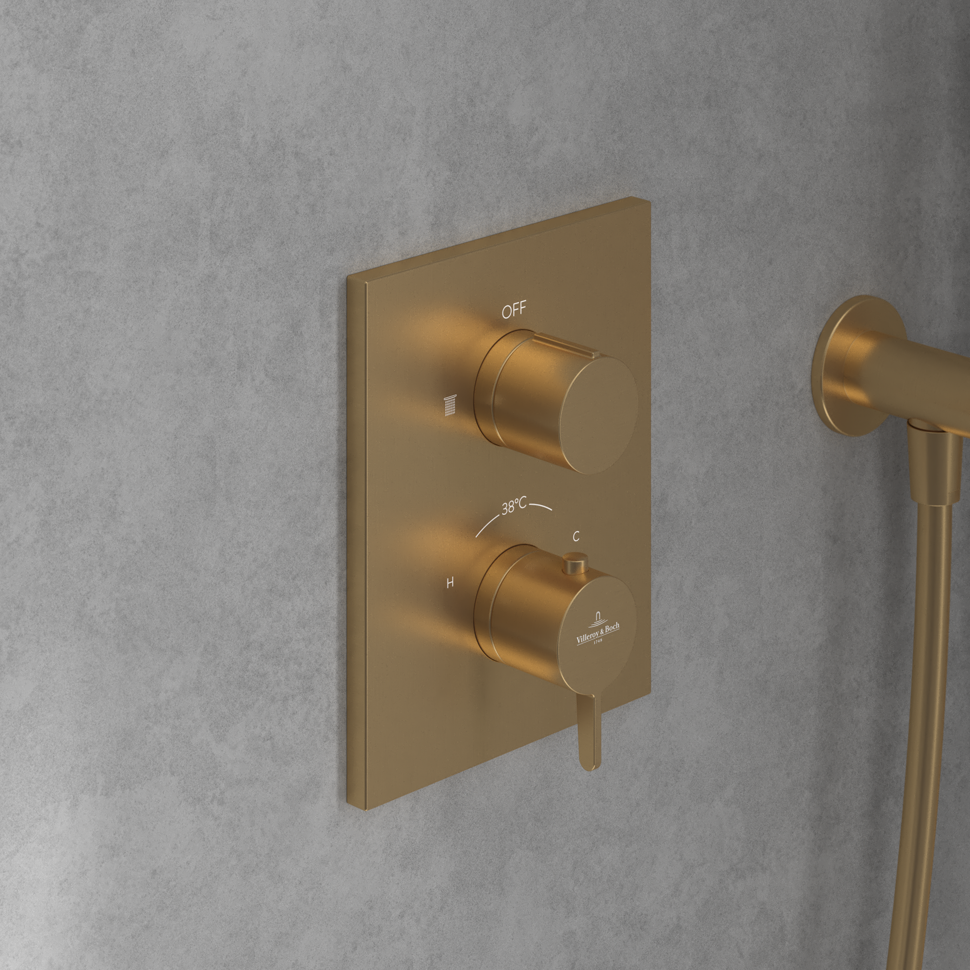 Conum Thermostat encastrable avec régulateur de débit à deux voies , Brushed Gold