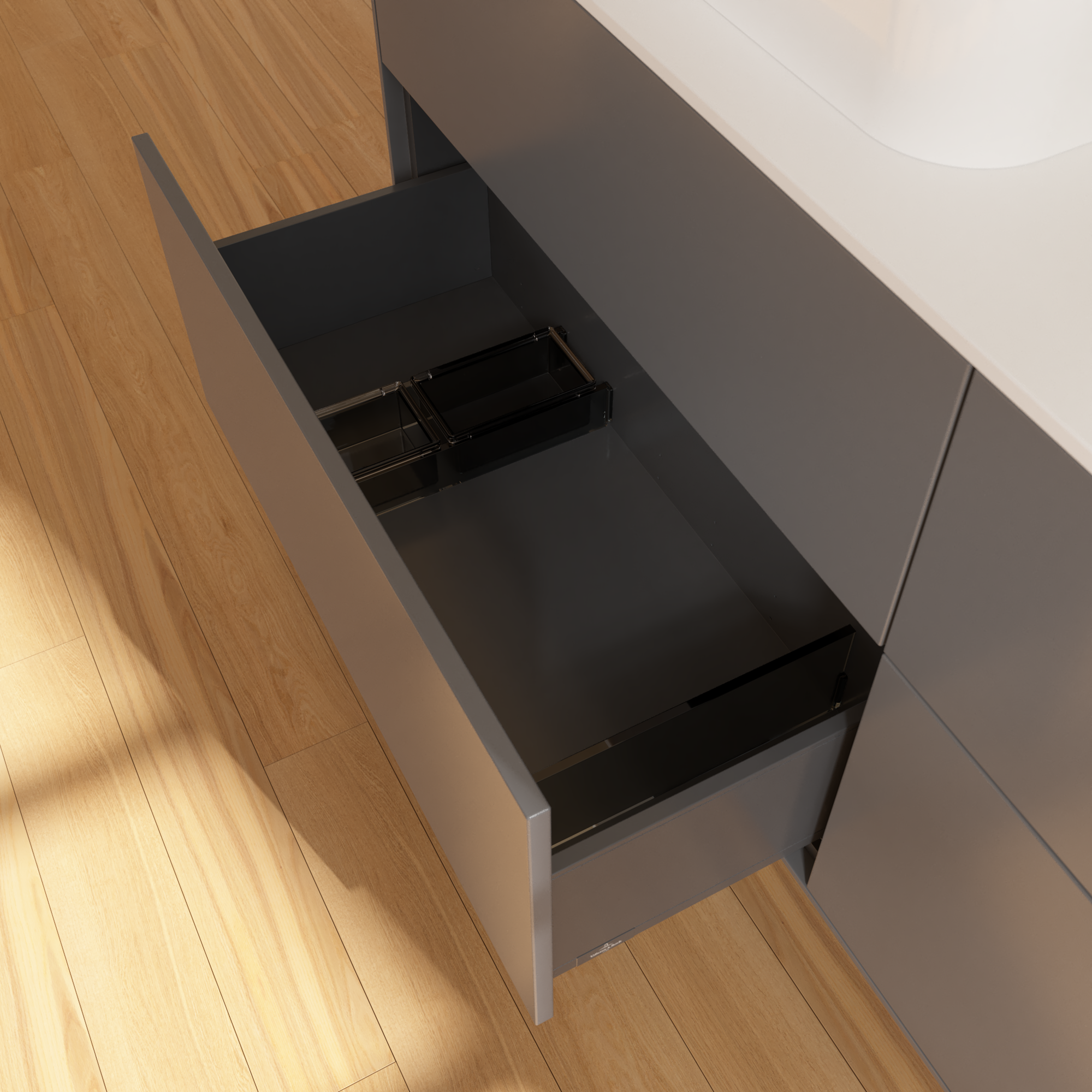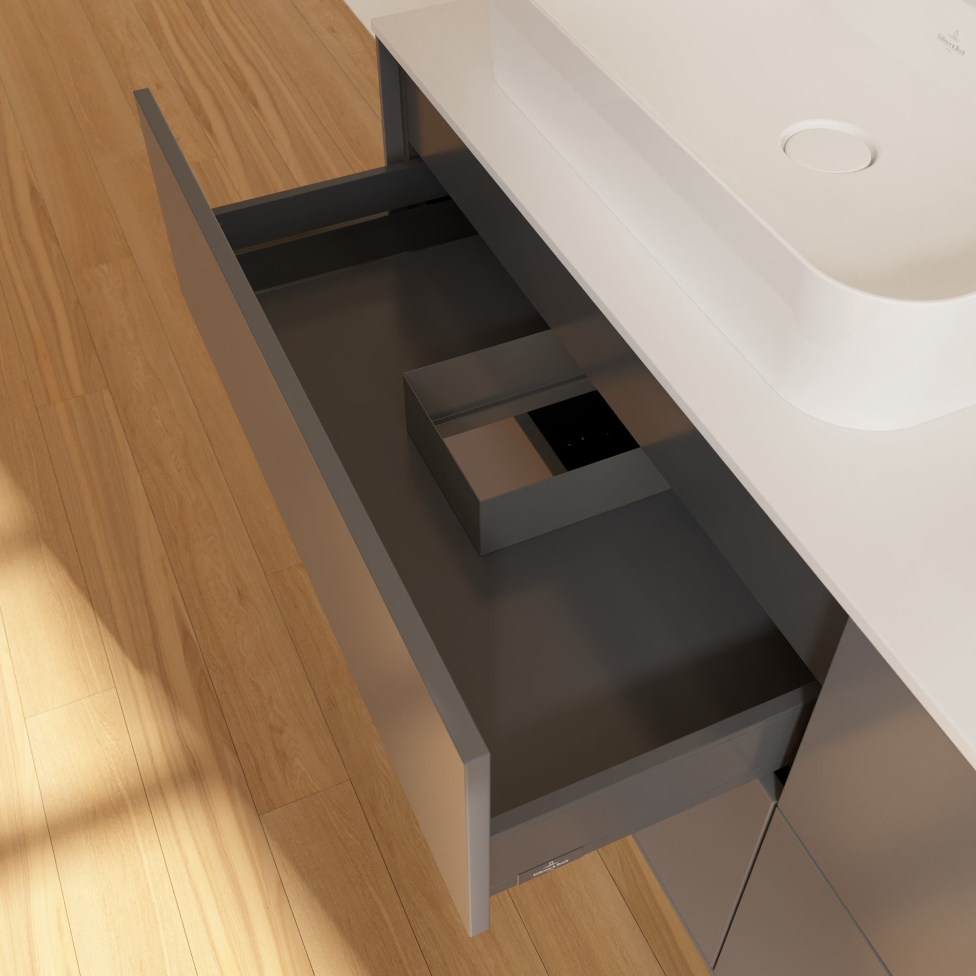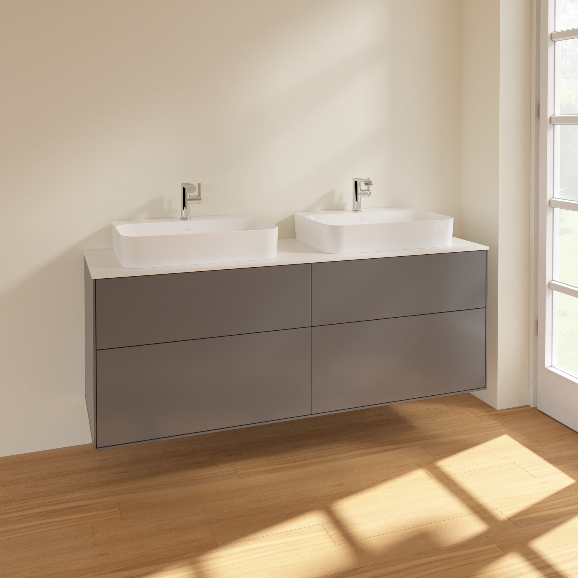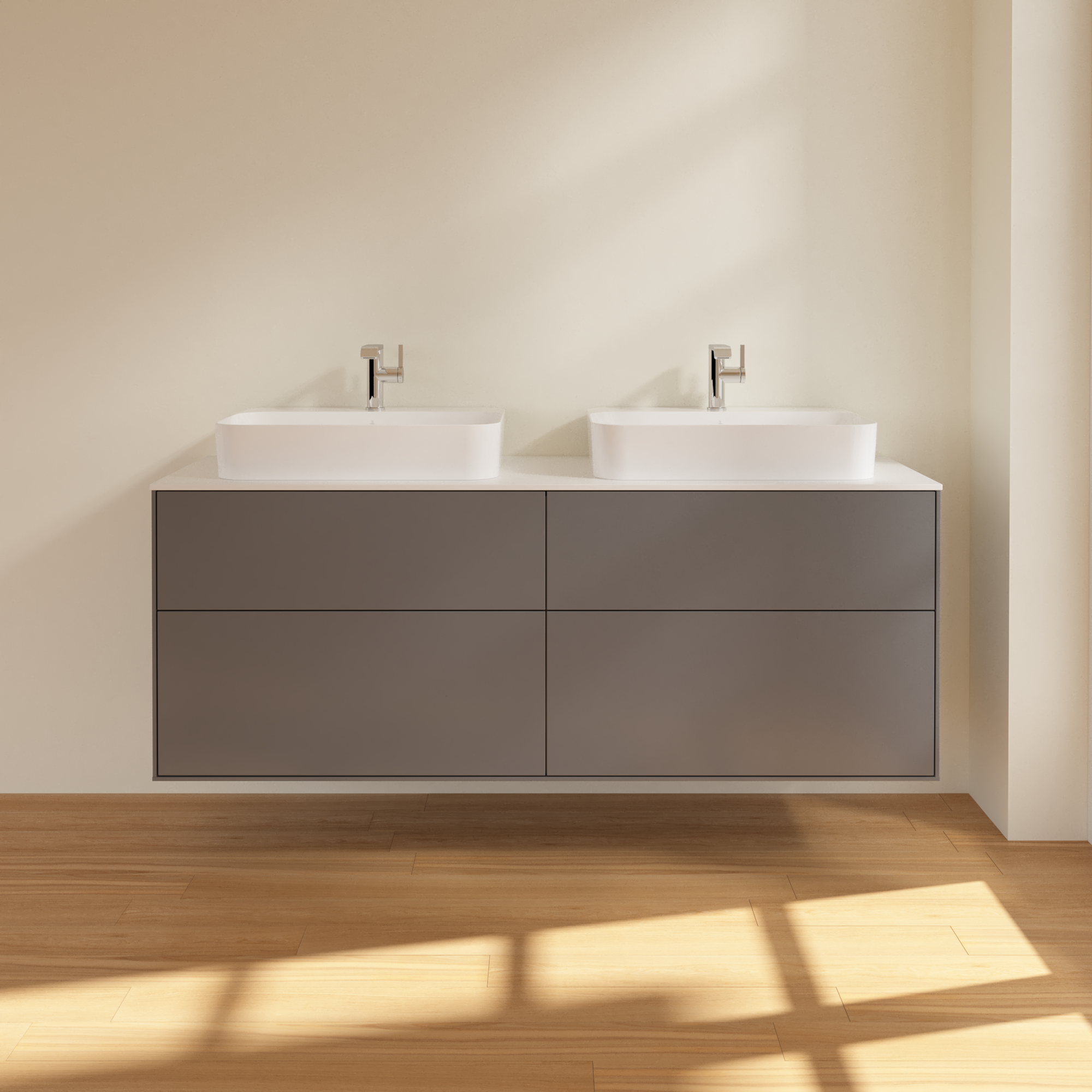 Finion Meuble sous plan, 4 tiroirs sur rails, 1600x603x501mm, Caisson: Anthracite Matt Lacquer, Façade: Anthracite Matt Lacquer, Plaque de recouvrement: Glass White Matt