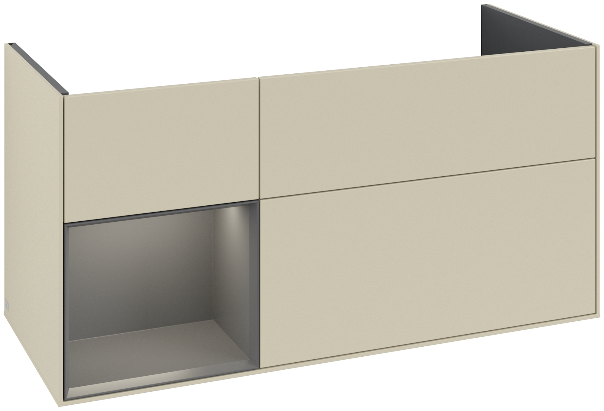 Finion Meuble sous plan, avec éclairage, 3 tiroirs sur rails, 1196x591x498mm, Caisson: Silk Grey Matt Lacquer, Façade: Silk Grey Matt Lacquer, Élément d’étagère: Anthracite Matt Lacquer