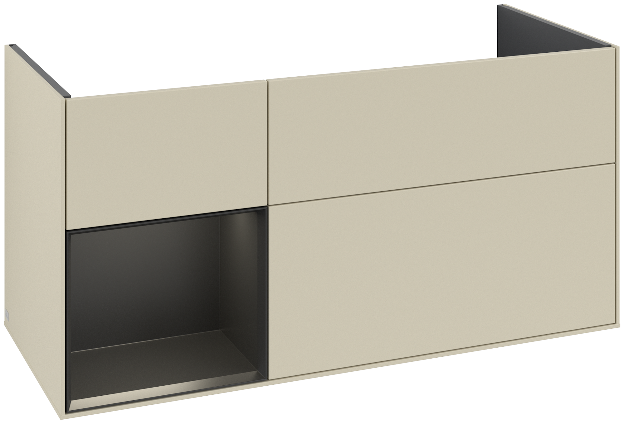 Finion Meuble sous plan, avec éclairage, 3 tiroirs sur rails, 1196x591x498mm, Caisson: Silk Grey Matt Lacquer, Façade: Silk Grey Matt Lacquer, Élément d’étagère: Black Matt Lacquer