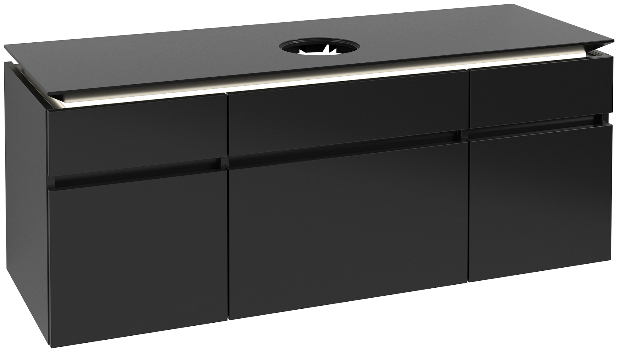 Legato Meuble sous plan, avec éclairage, 5 tiroirs sur rails, 1400x550x500mm, Caisson: Black Matt Lacquer, Façade: Black Matt Lacquer