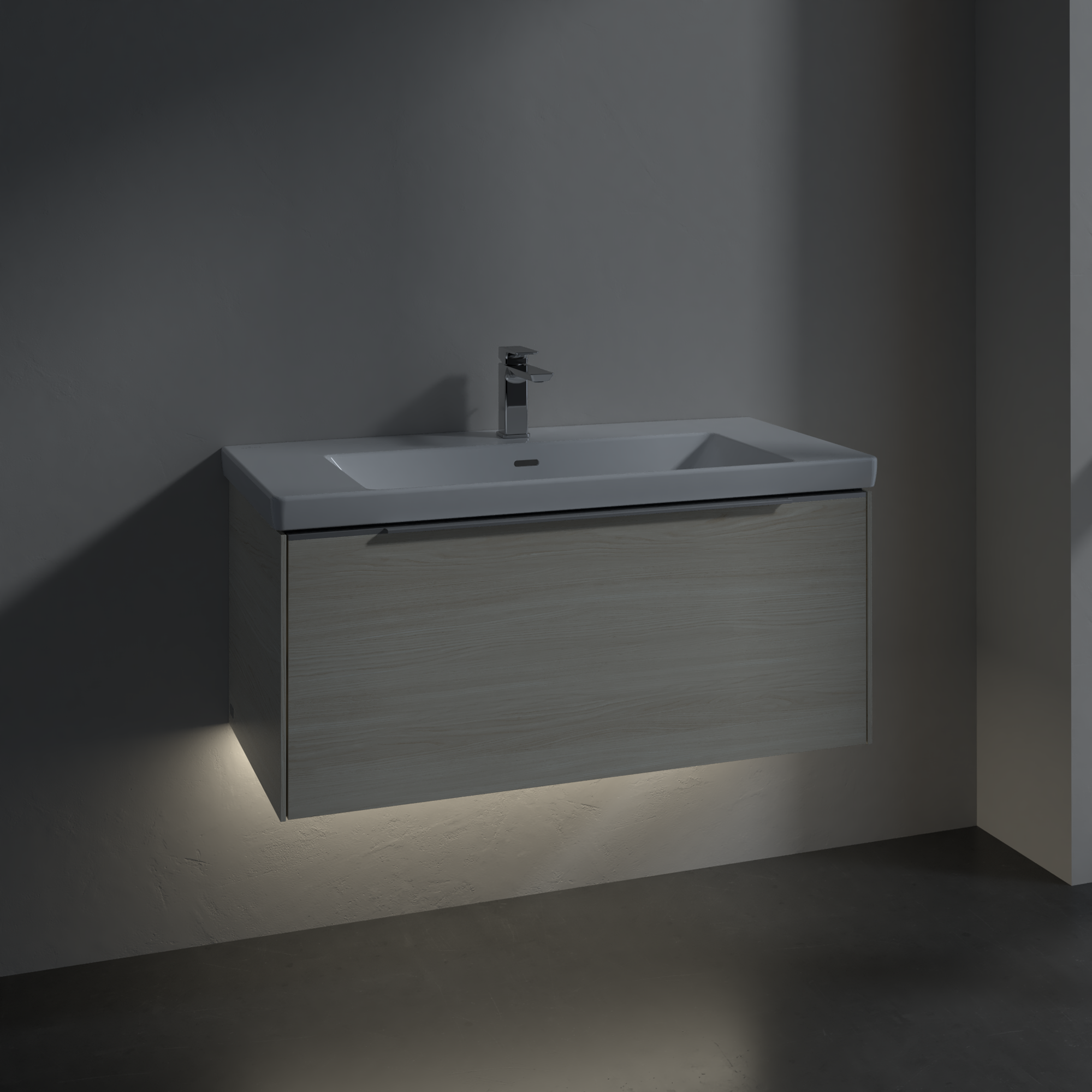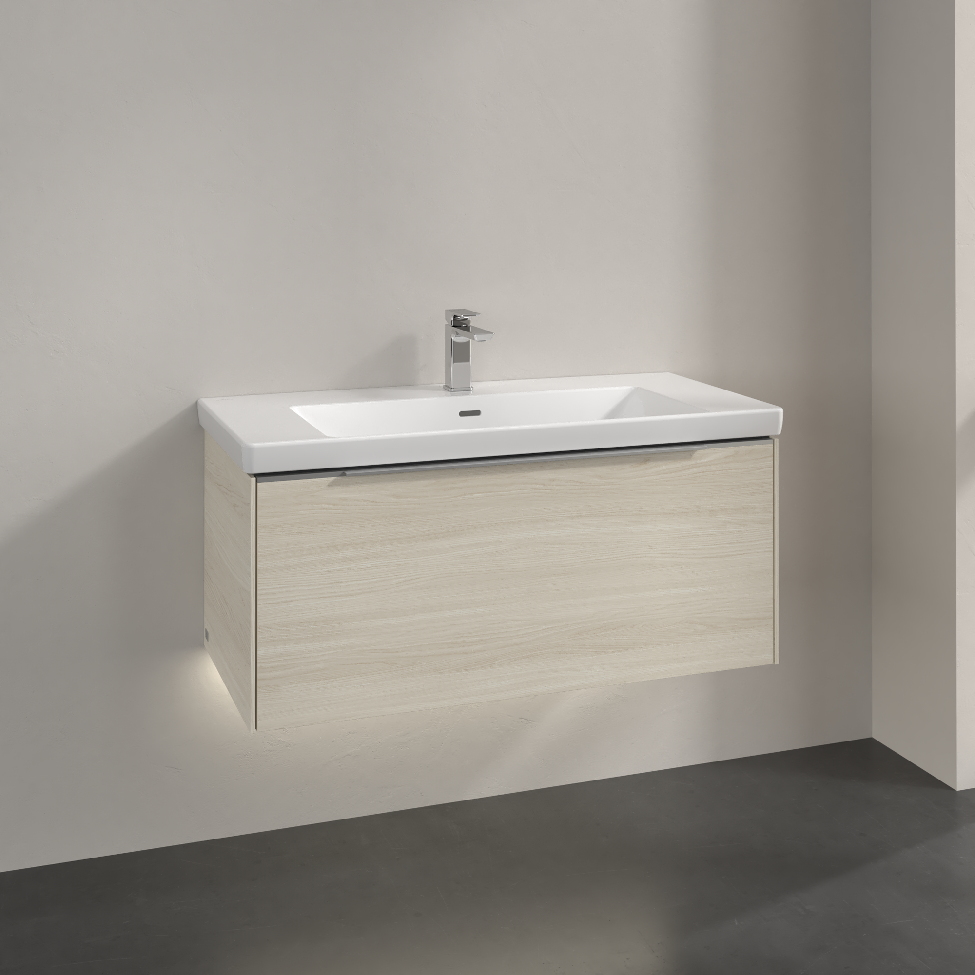 Subway 3.0 Meuble sous plan, avec éclairage, 1 tiroir sur rails, 973x429x462mm, Caisson: White Oak, Façade: White Oak