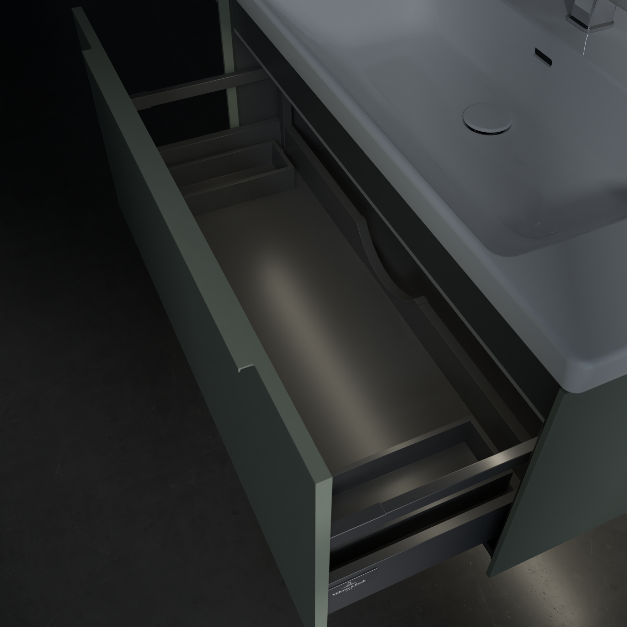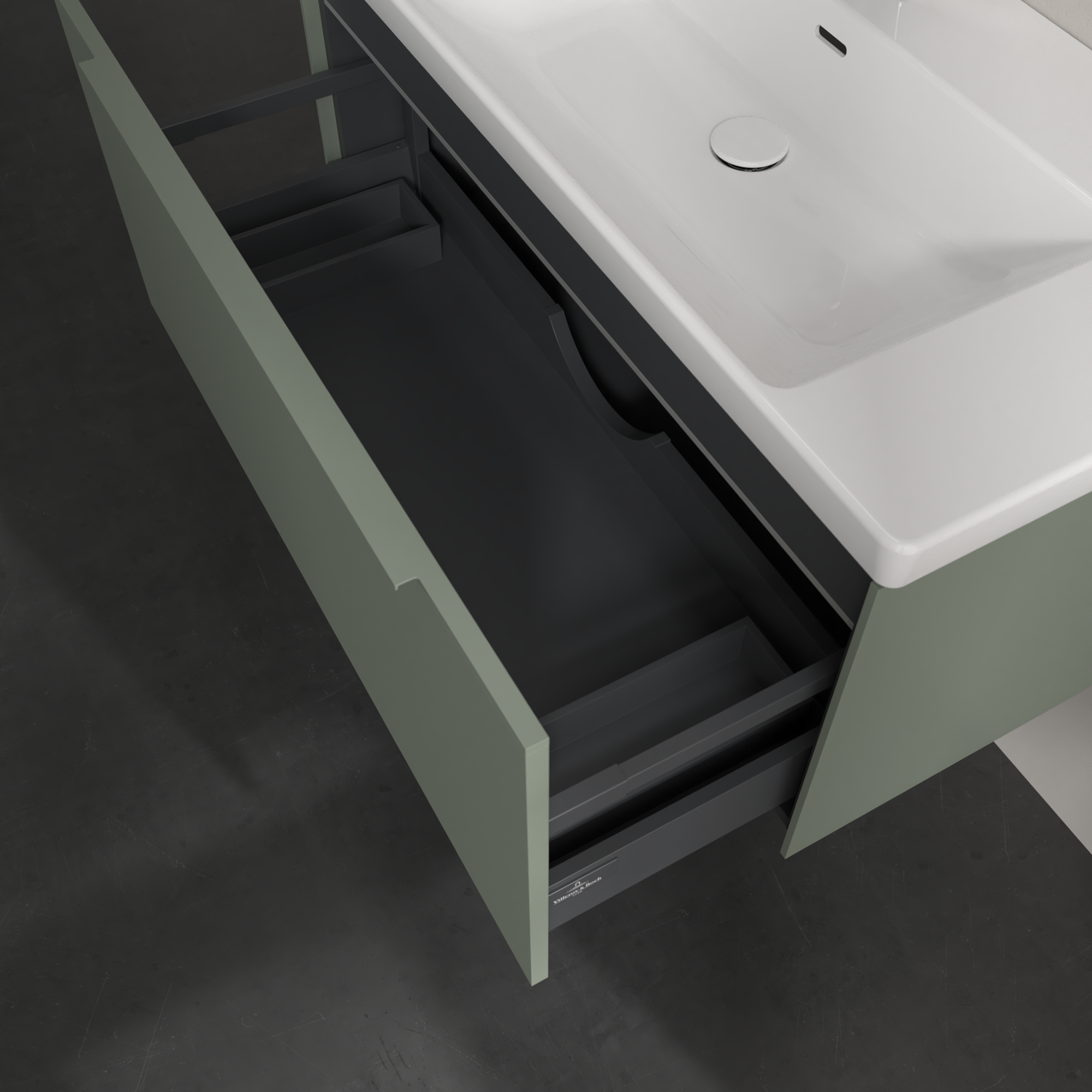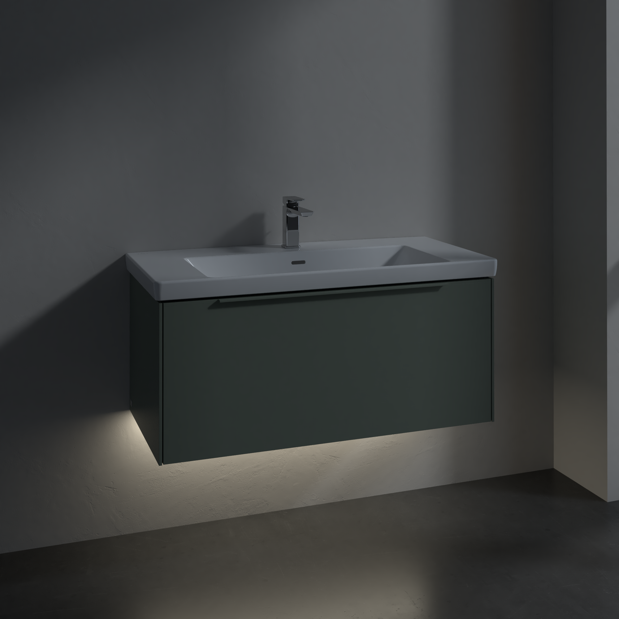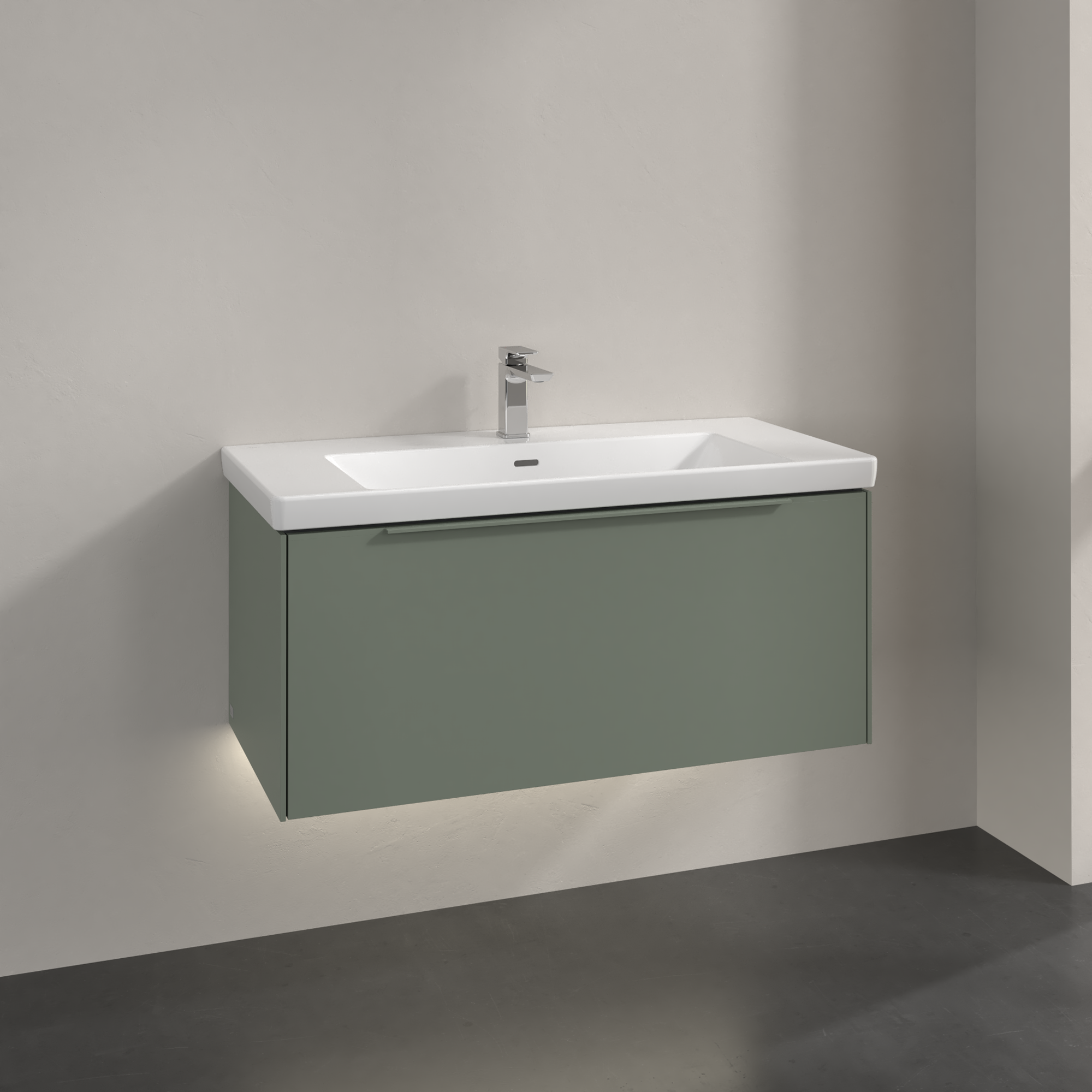 Subway 3.0 Meuble sous plan, avec éclairage, 1 tiroir sur rails, 973x429x462mm, Caisson: Soft Green, Façade: Soft Green