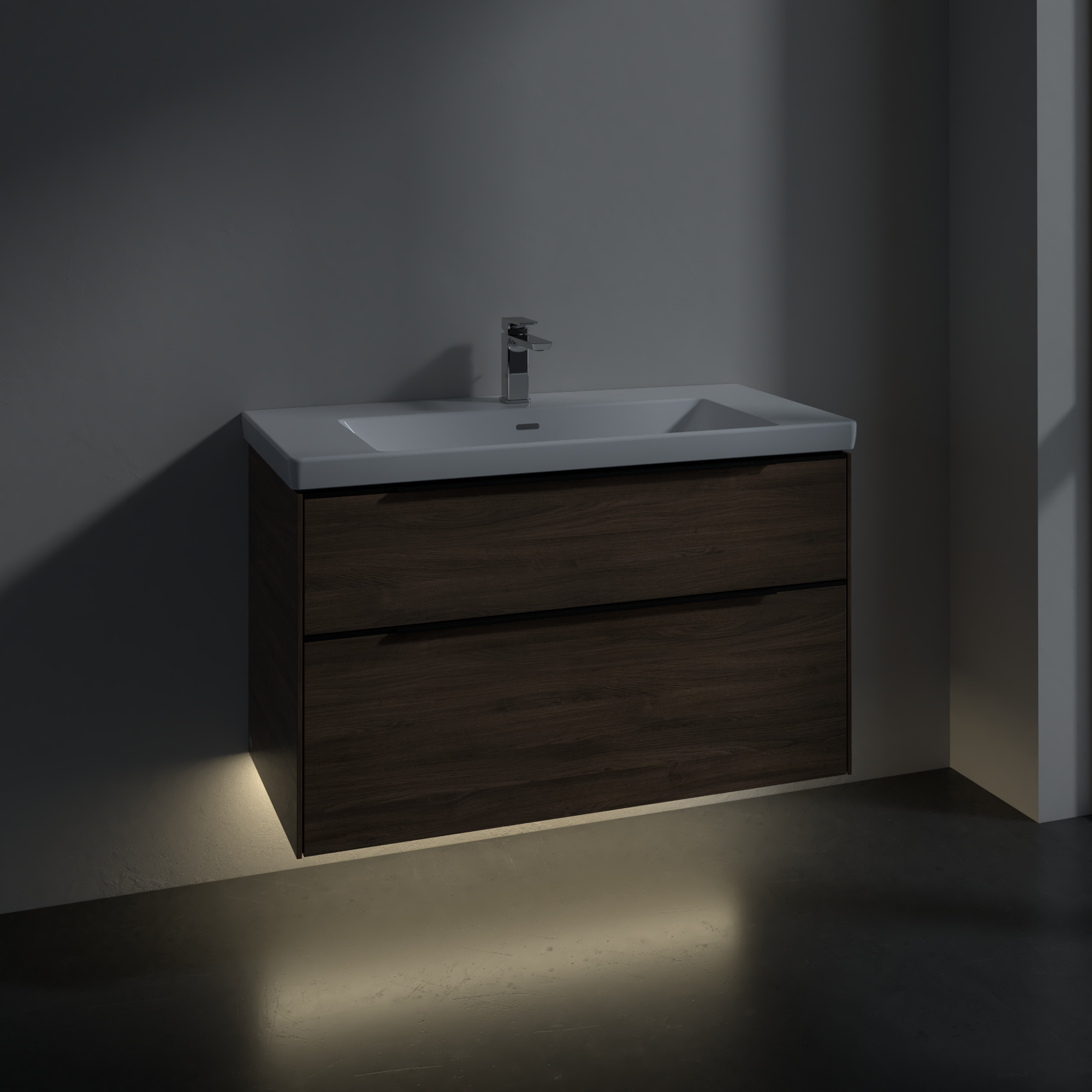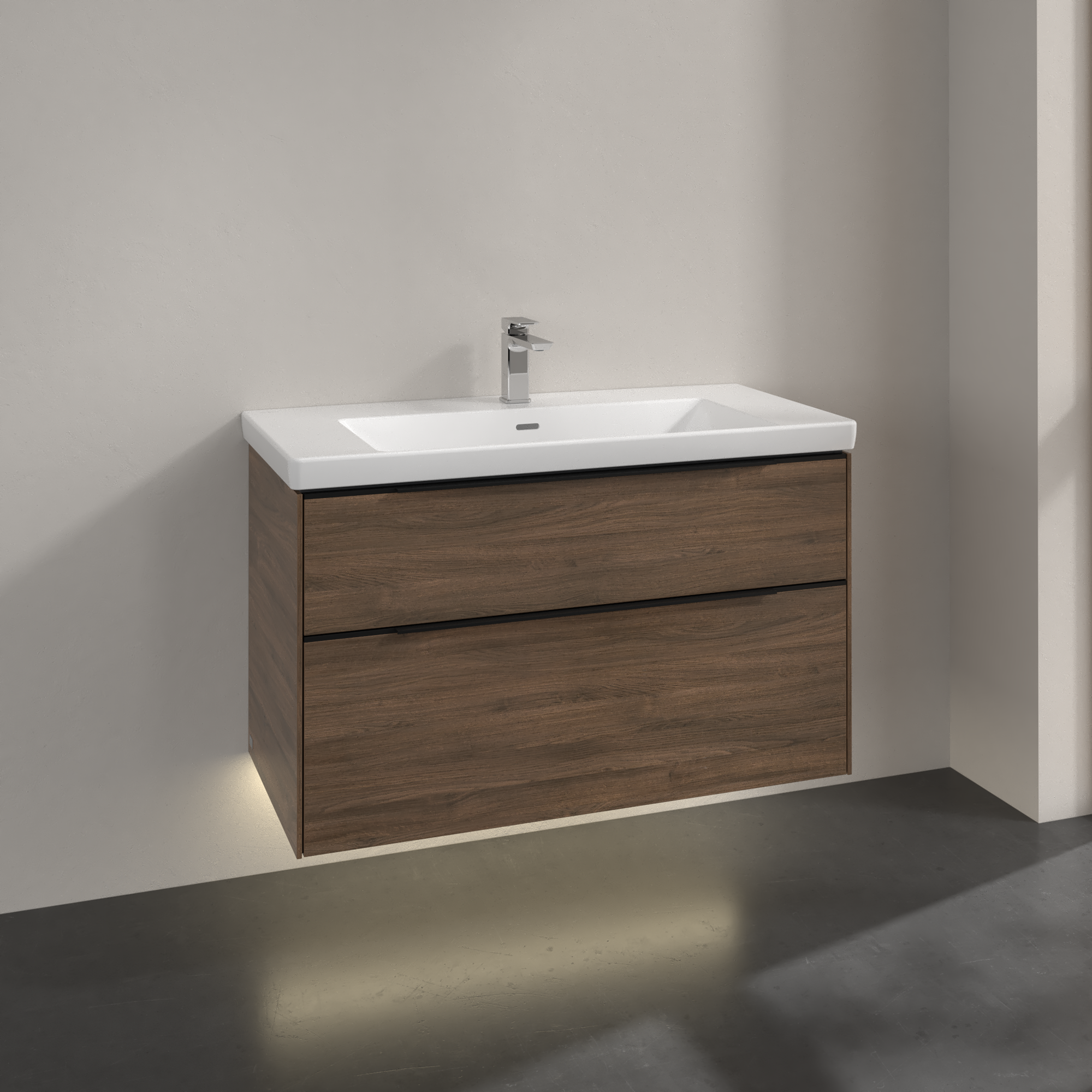 Subway 3.0 Meuble sous plan, avec éclairage, 2 tiroirs sur rails, 973x576x462mm, Caisson: Arizona Oak, Façade: Arizona Oak