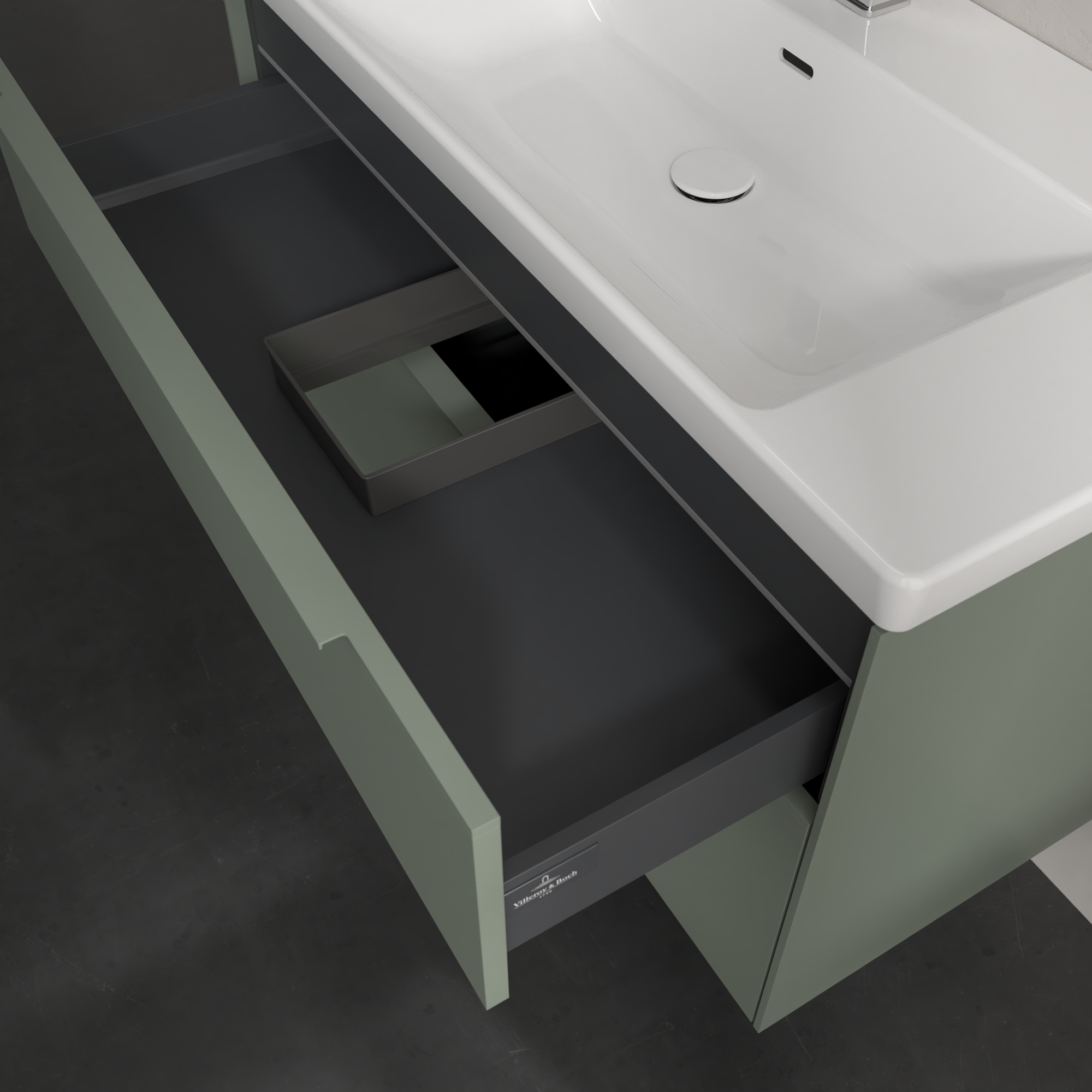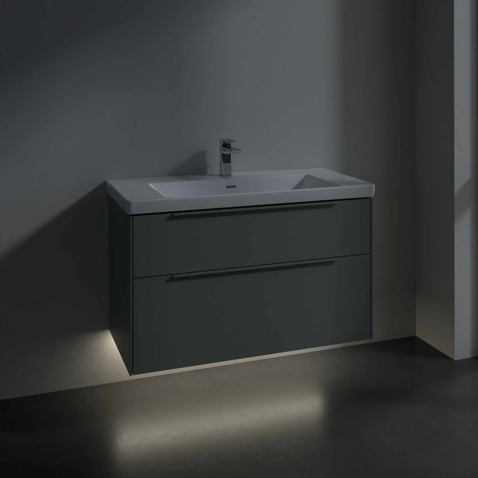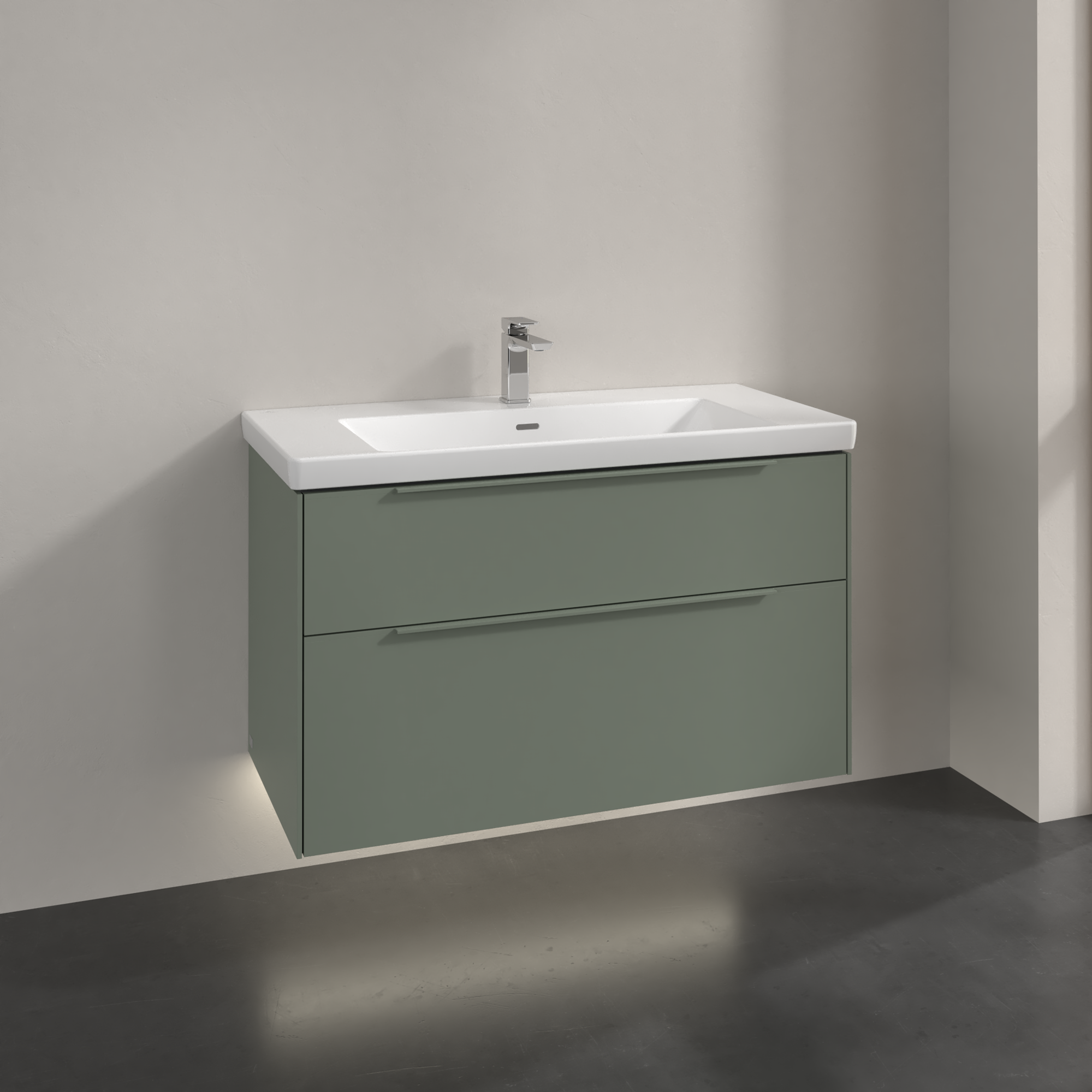 Subway 3.0 Meuble sous plan, avec éclairage, 2 tiroirs sur rails, 973x576x462mm, Caisson: Soft Green, Façade: Soft Green