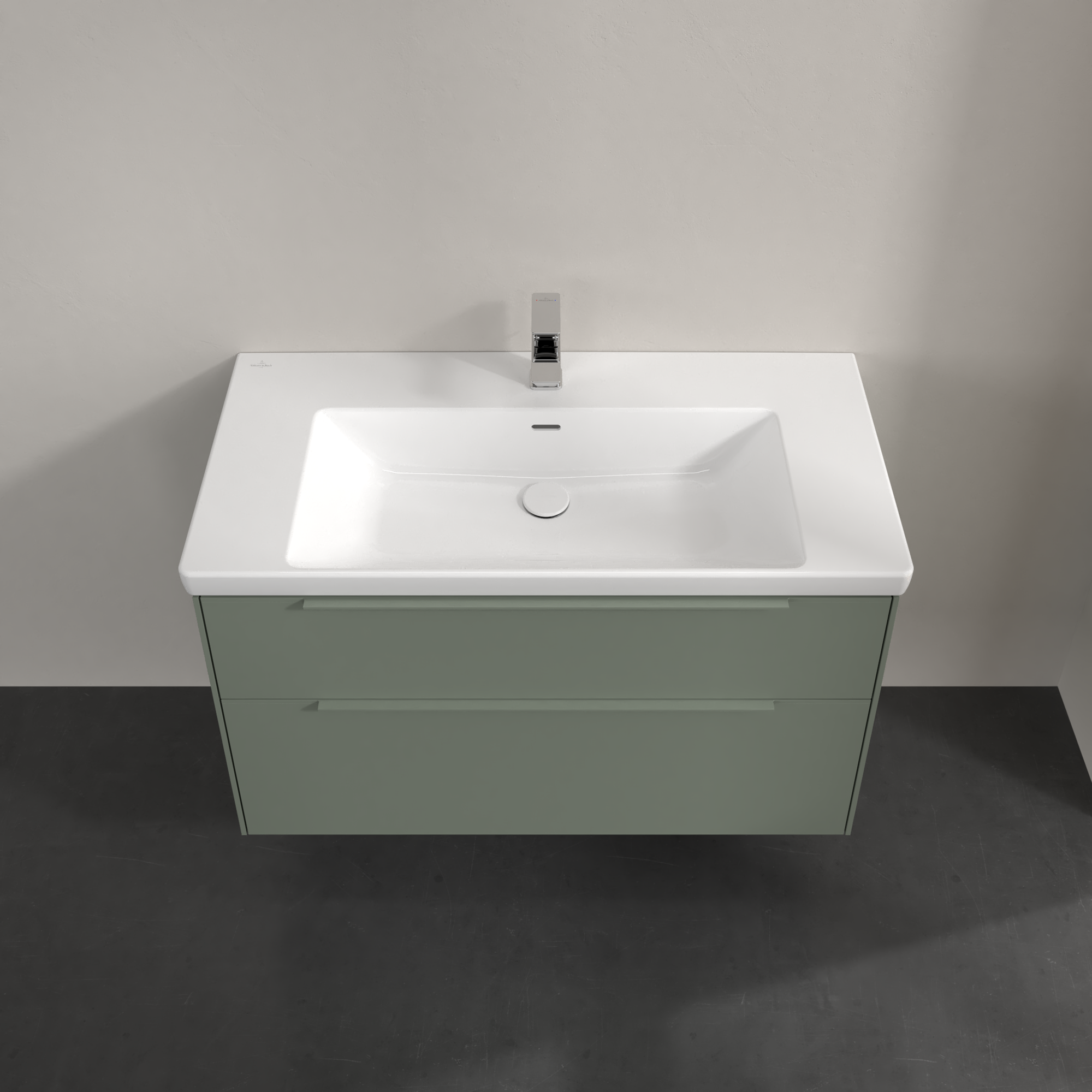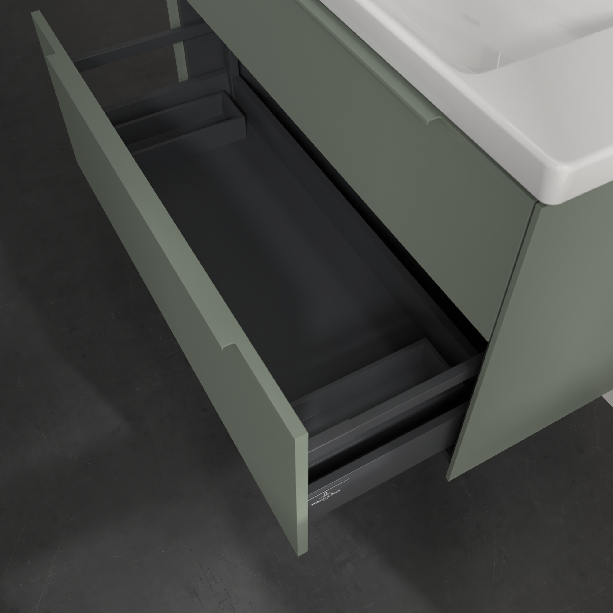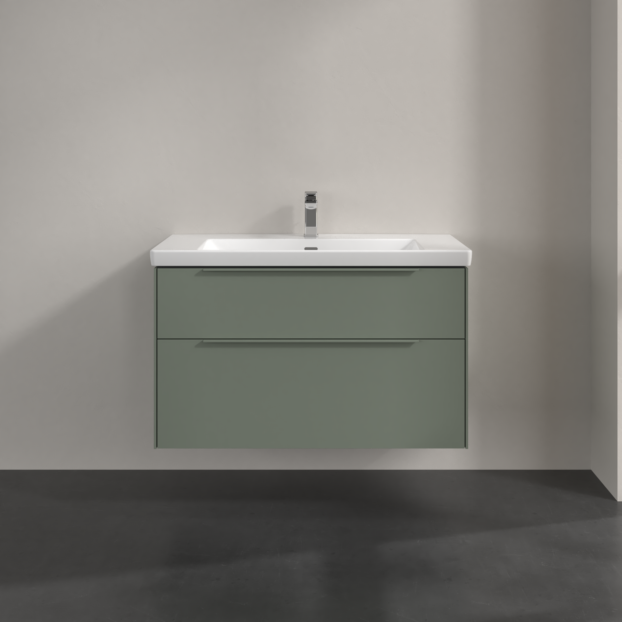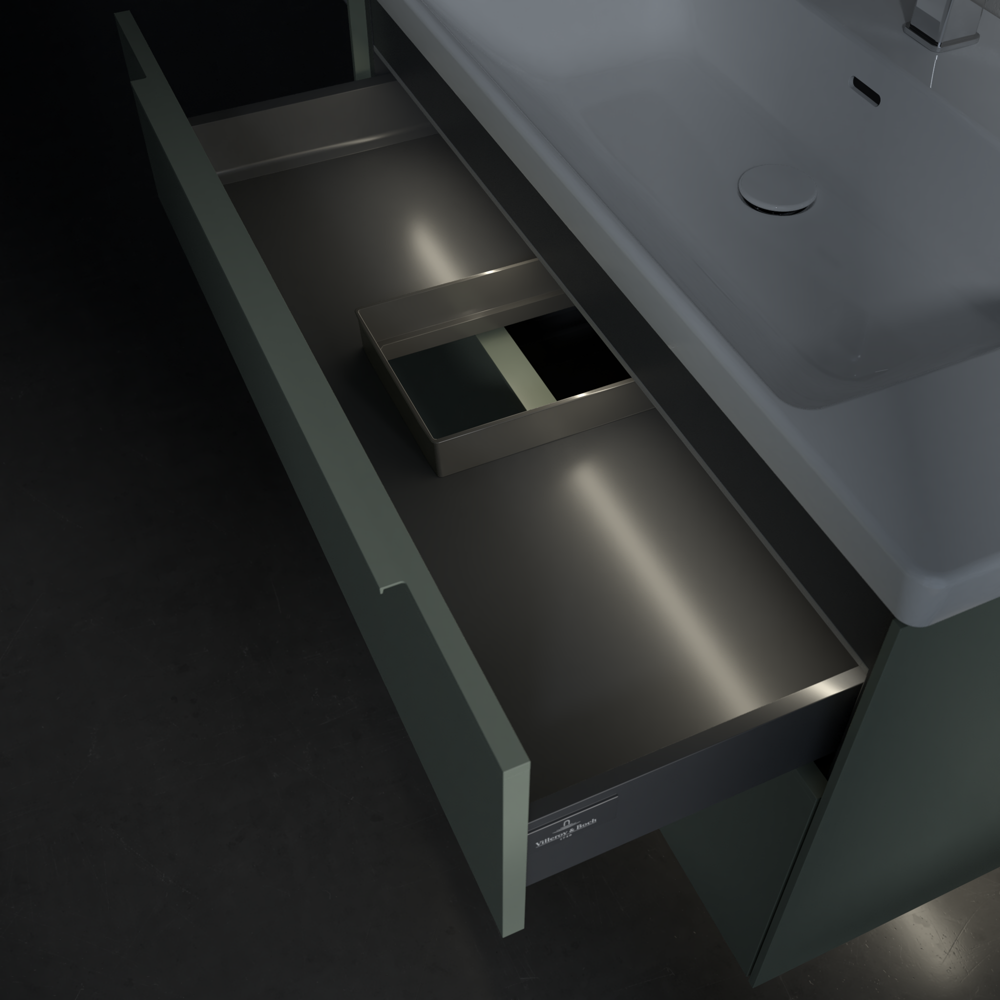 Subway 3.0 Meuble sous plan, avec éclairage, 2 tiroirs sur rails, 973x576x462mm, Caisson: Soft Green, Façade: Soft Green