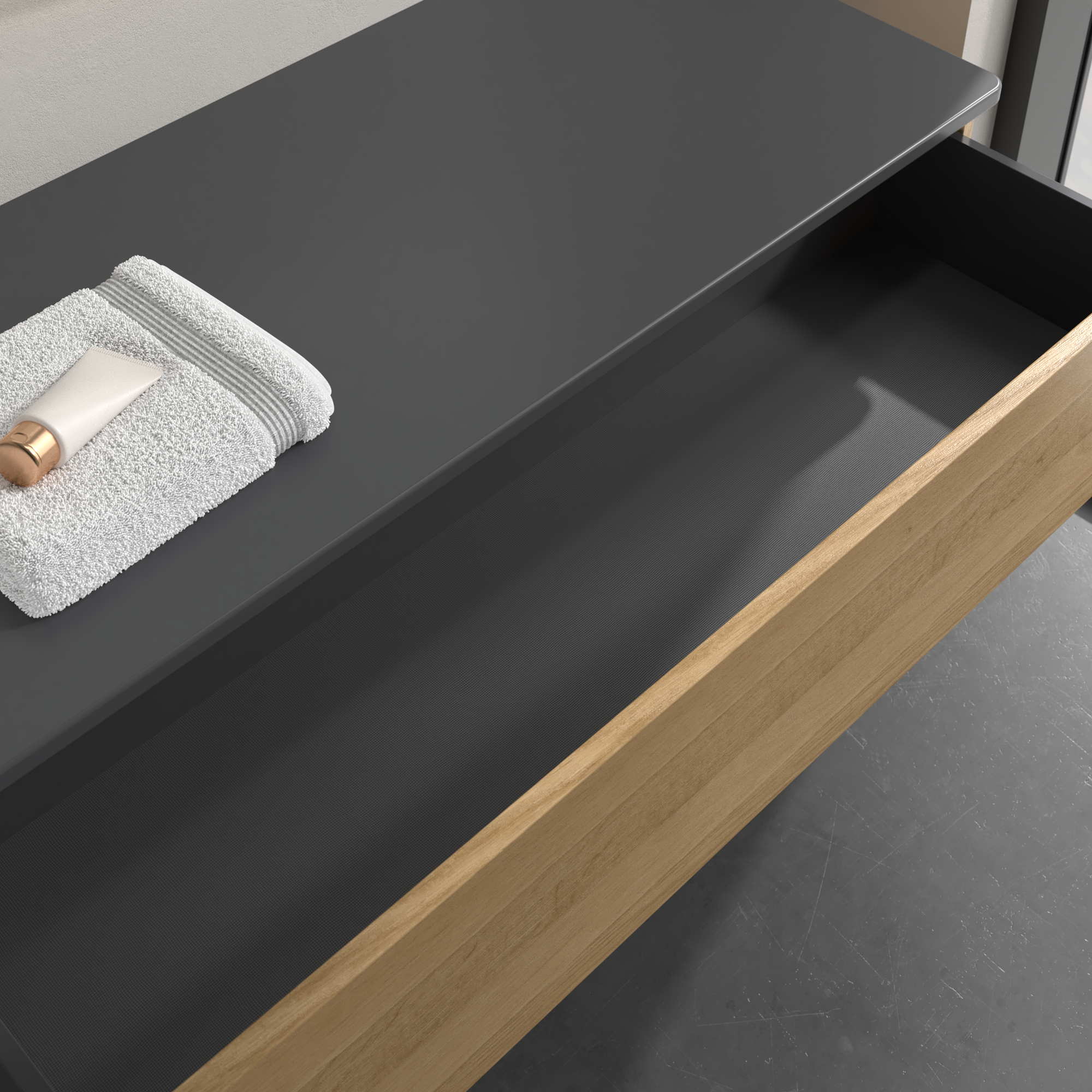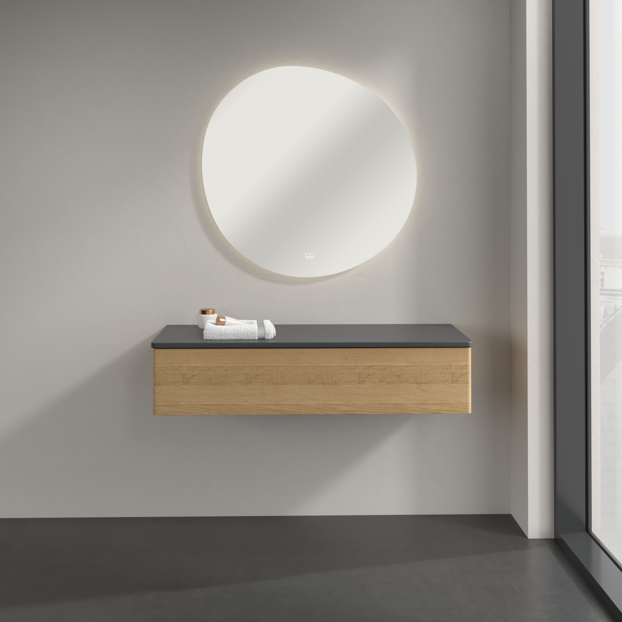 Antao Meuble d'appoint, 1 tiroir sur rails, 1200x268x500mm, Façade sans structure, Caisson: Honey Oak, Façade: Honey Oak, Plaque de recouvrement: Botticino