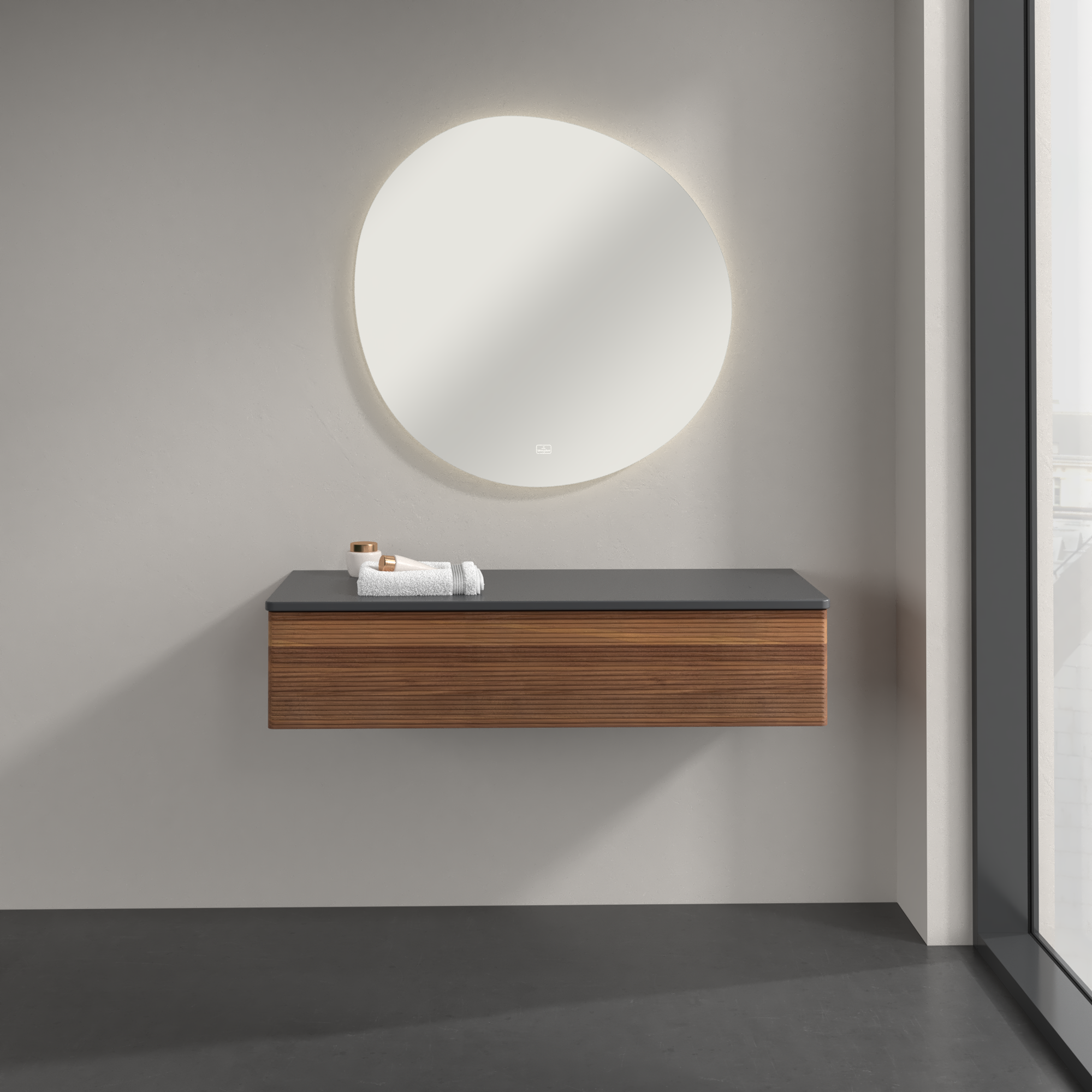 Antao Meuble d'appoint, 1 tiroir sur rails, 1200x268x500mm, Façade avec structure, Caisson: Warm Walnut, Façade: Warm Walnut, Plaque de recouvrement: Warm Walnut