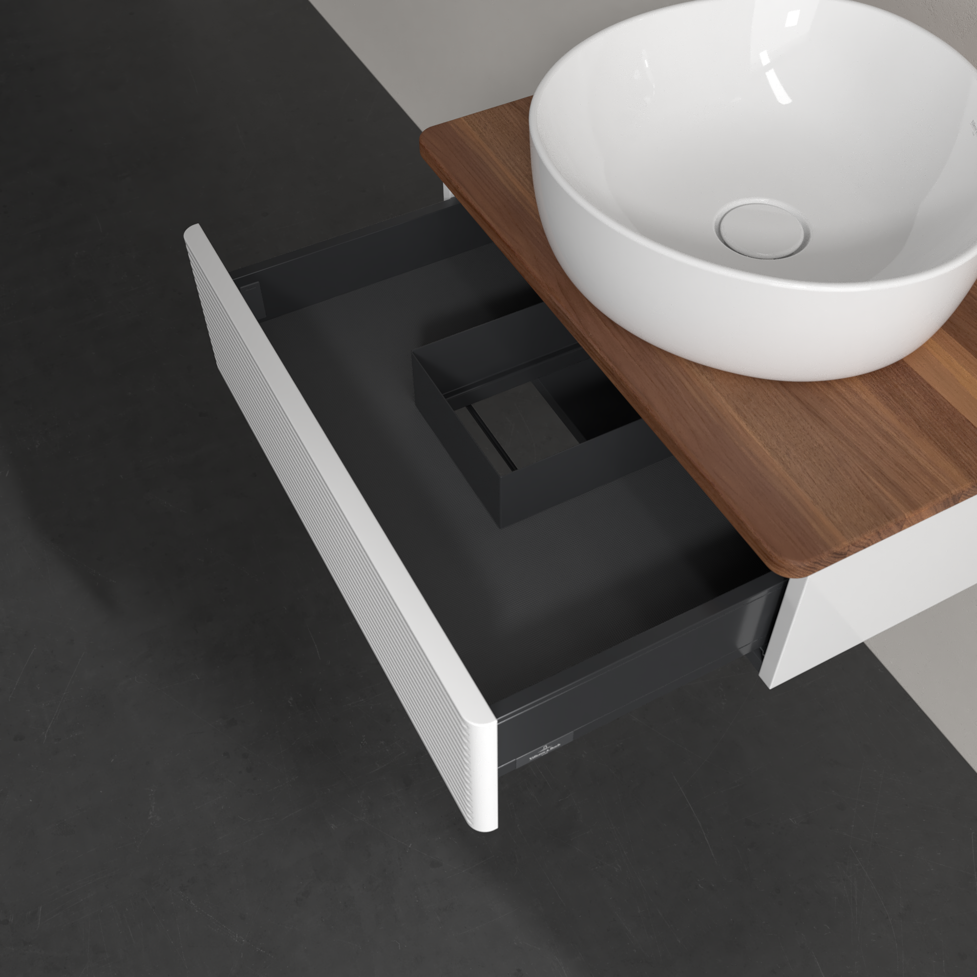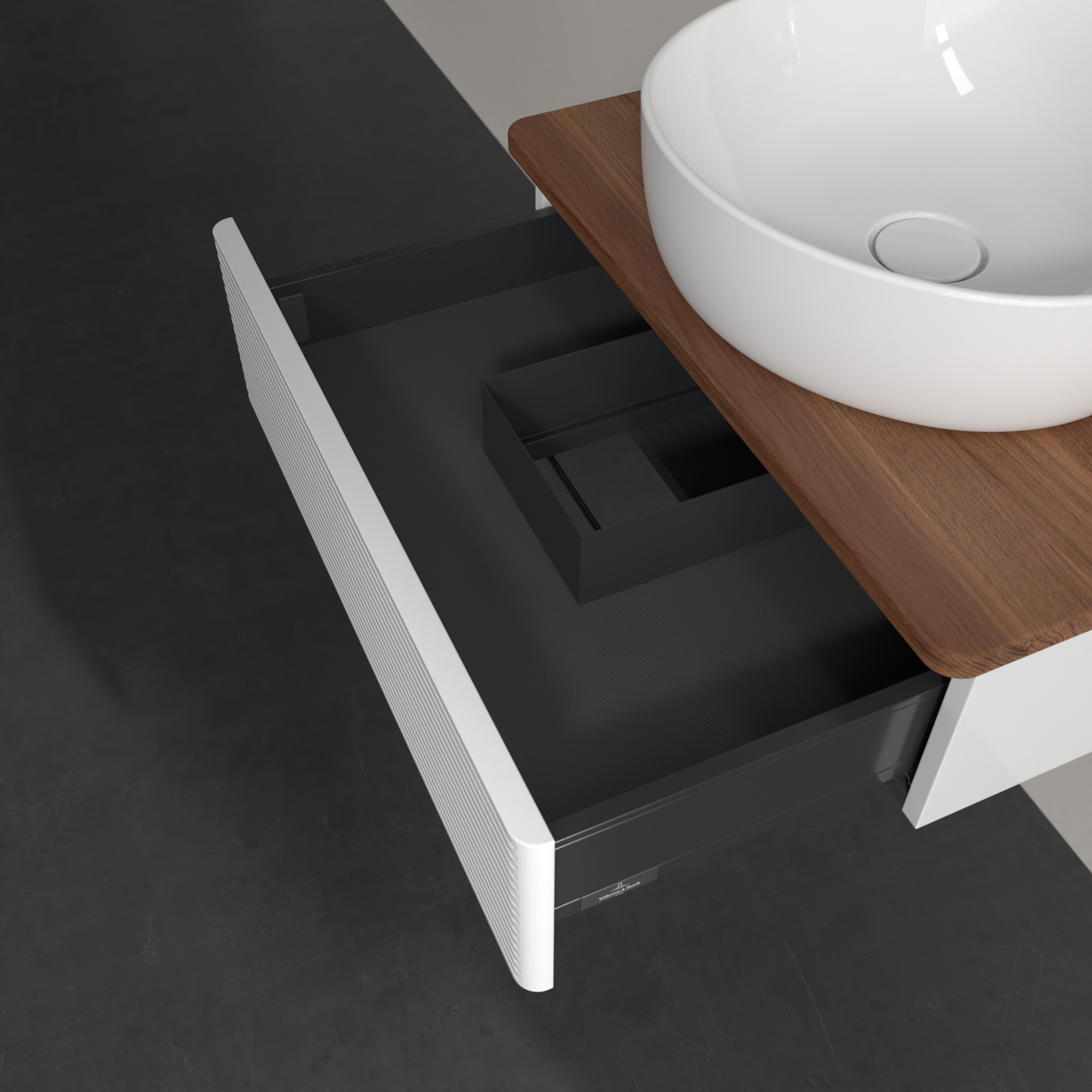 Antao Meuble sous plan, 1 tiroir sur rails, 600x190x500mm, Façade avec structure, Caisson: Glossy White Lacquer, Façade: Glossy White Lacquer, Plaque de recouvrement: Warm Walnut
