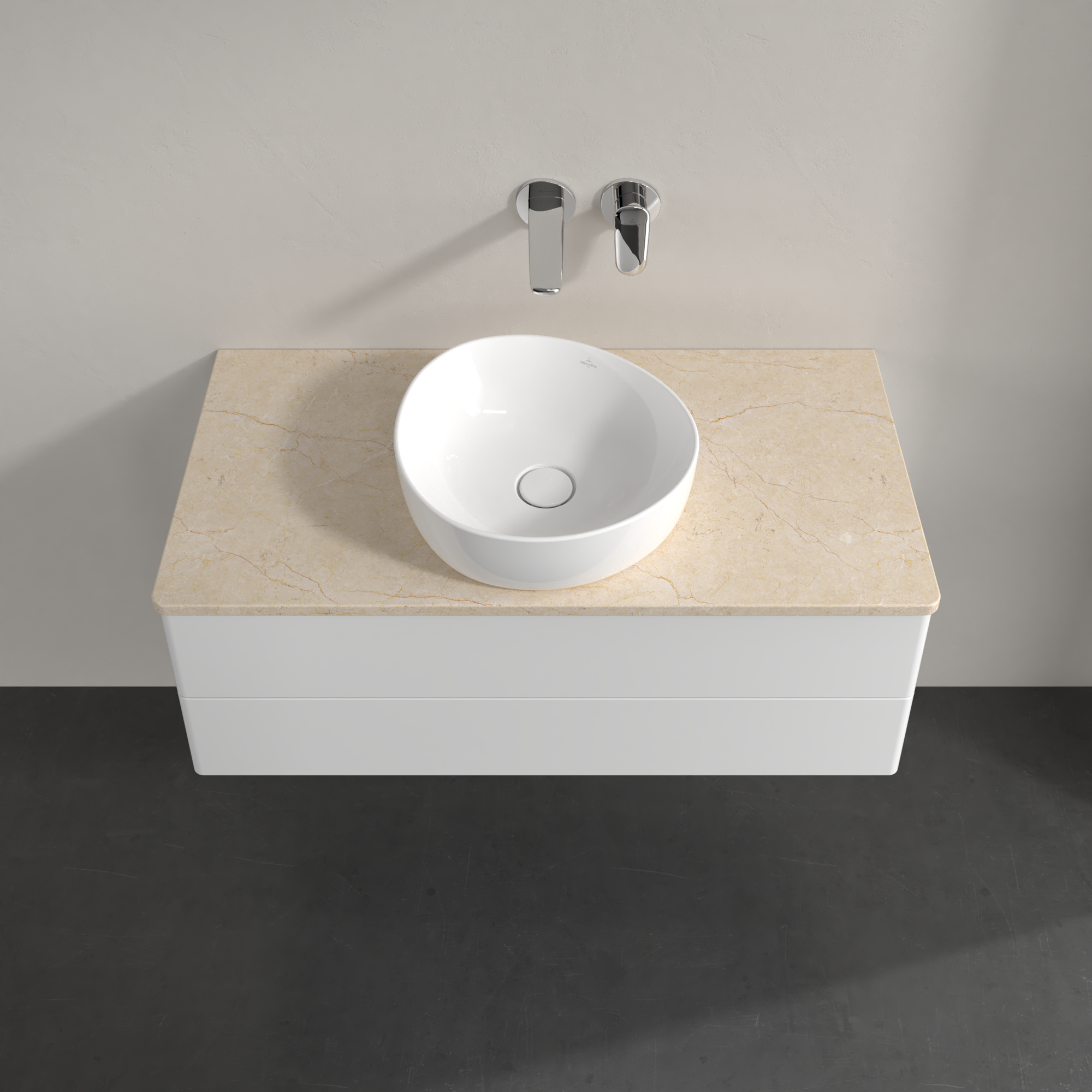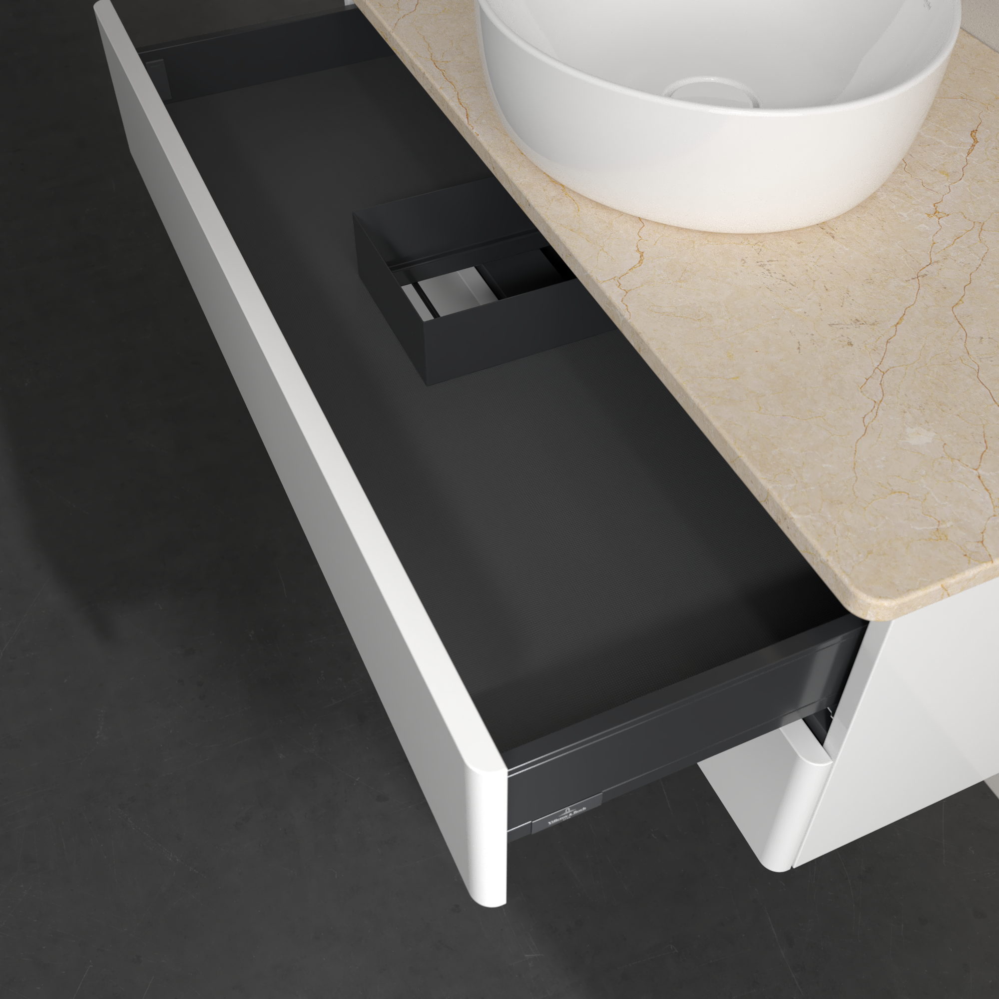 Antao Meuble sous plan, 2 tiroirs sur rails, 1000x360x500mm, Façade sans structure, Caisson: Glossy White Lacquer, Façade: Glossy White Lacquer, Plaque de recouvrement: Botticino