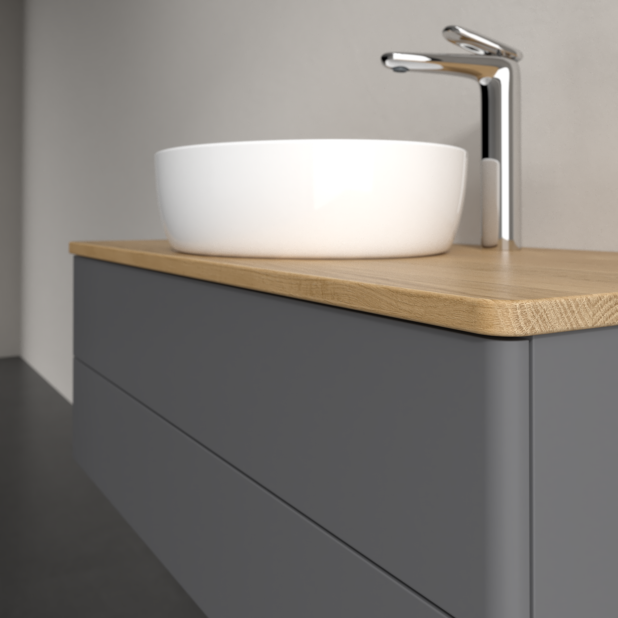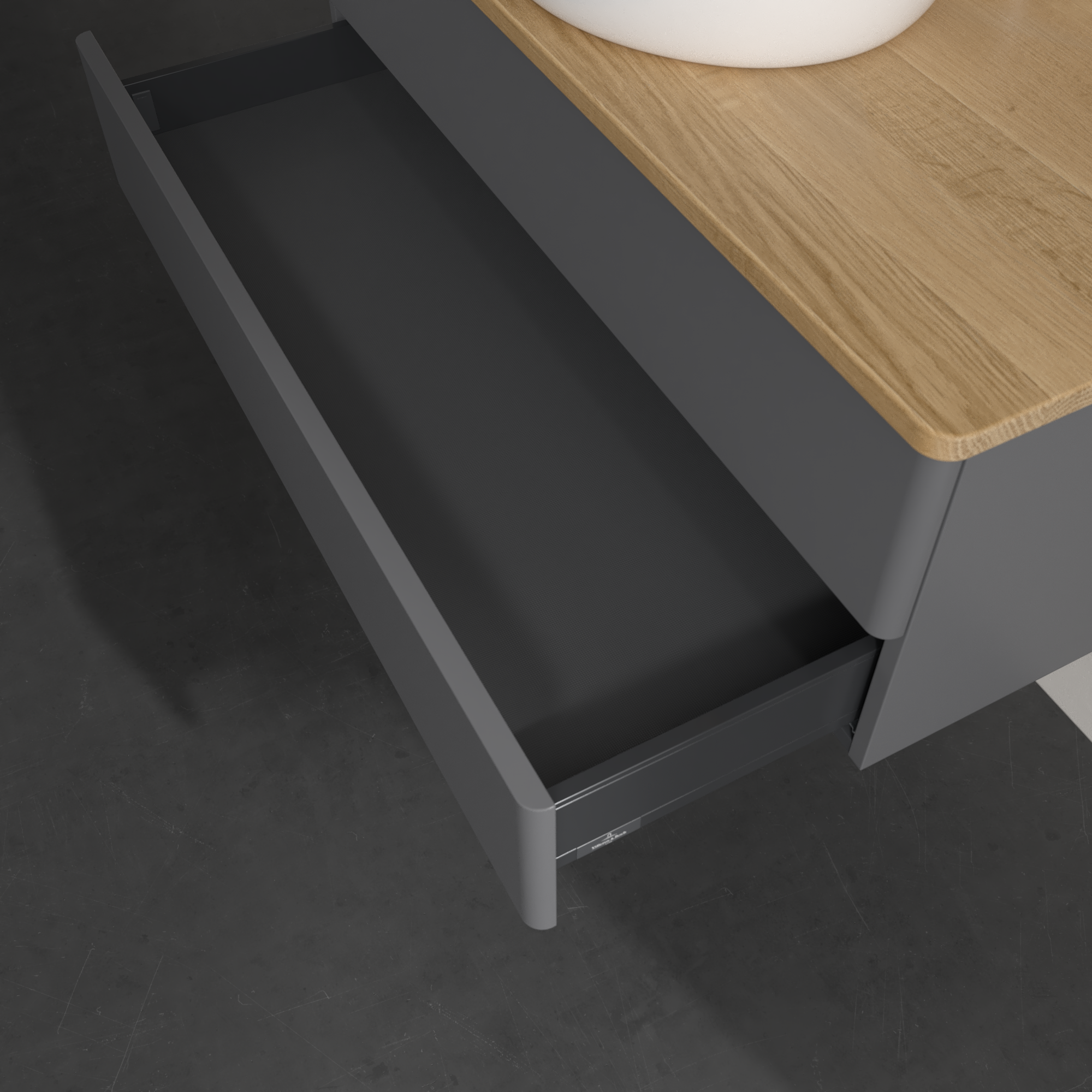 Antao Meuble sous plan, 2 tiroirs sur rails, 1000x360x500mm, Façade sans structure, Caisson: Anthracite Matt Lacquer, Façade: Anthracite Matt Lacquer, Plaque de recouvrement: Honey Oak