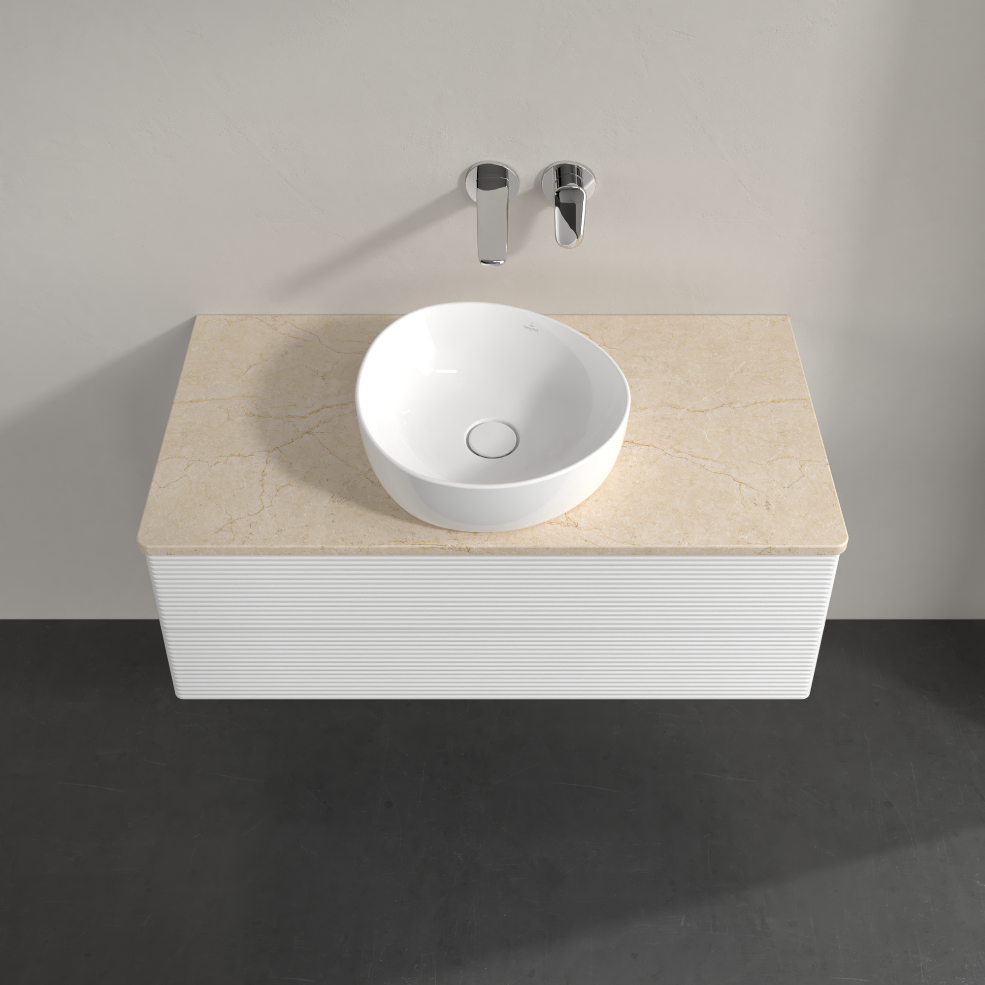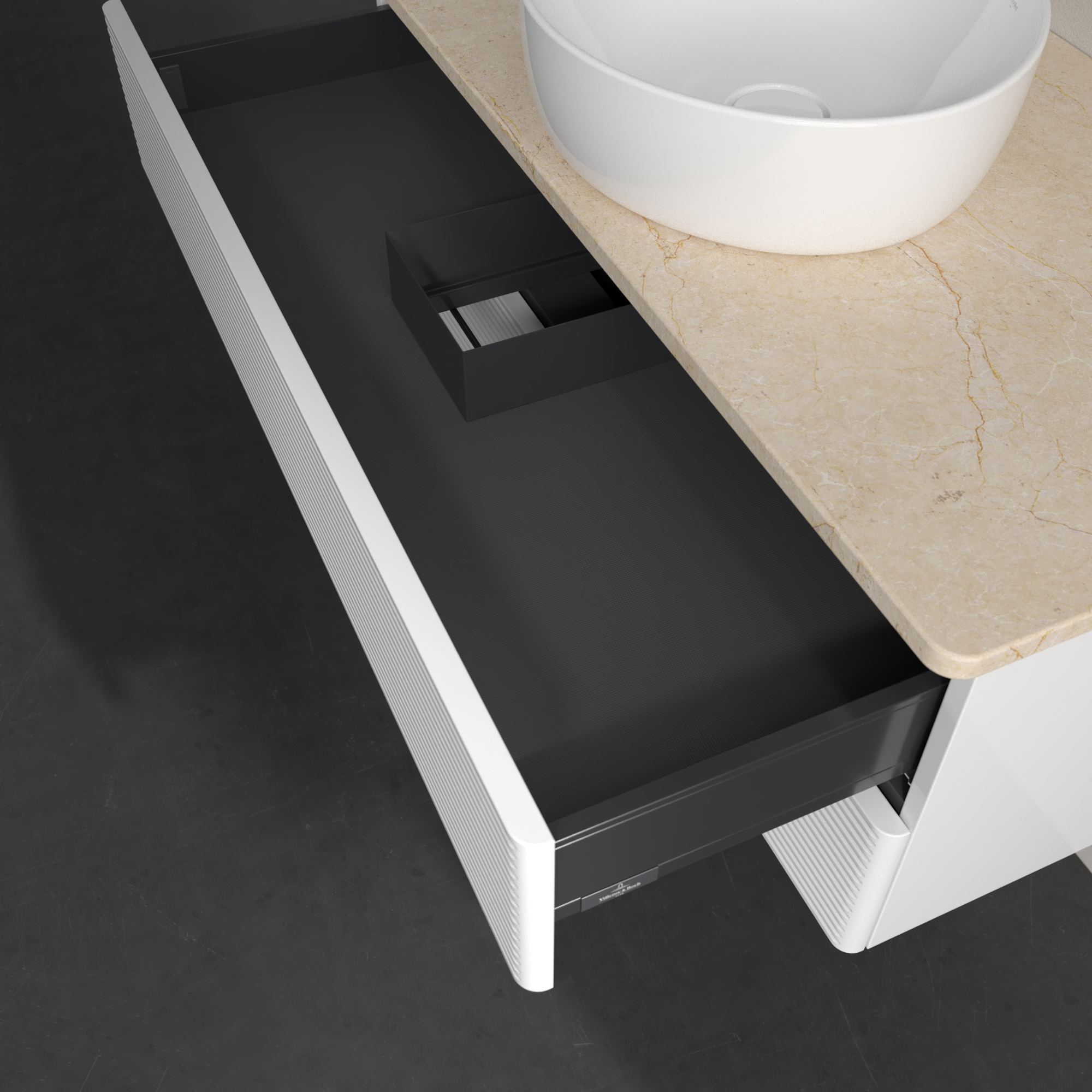 Antao Meuble sous plan, 2 tiroirs sur rails, 1000x360x500mm, Façade avec structure, Caisson: Glossy White Lacquer, Façade: Glossy White Lacquer, Plaque de recouvrement: Botticino