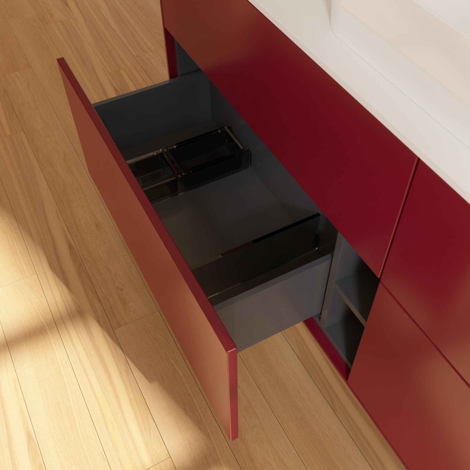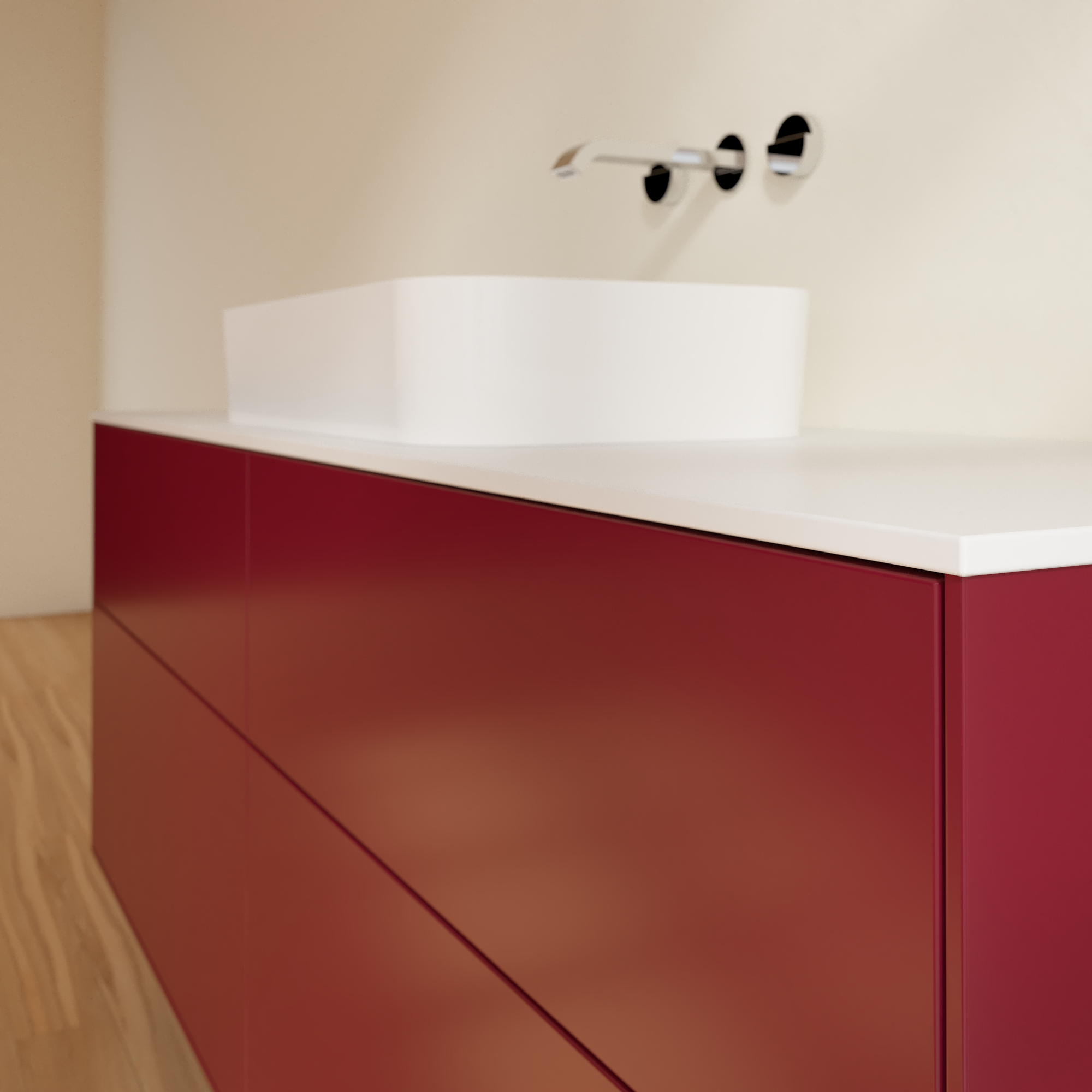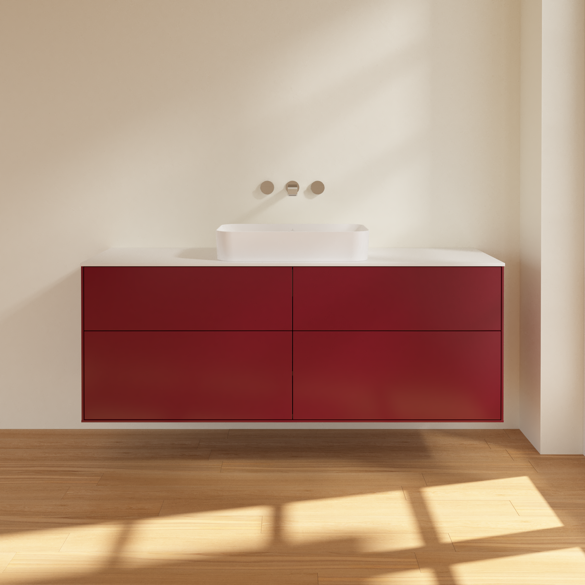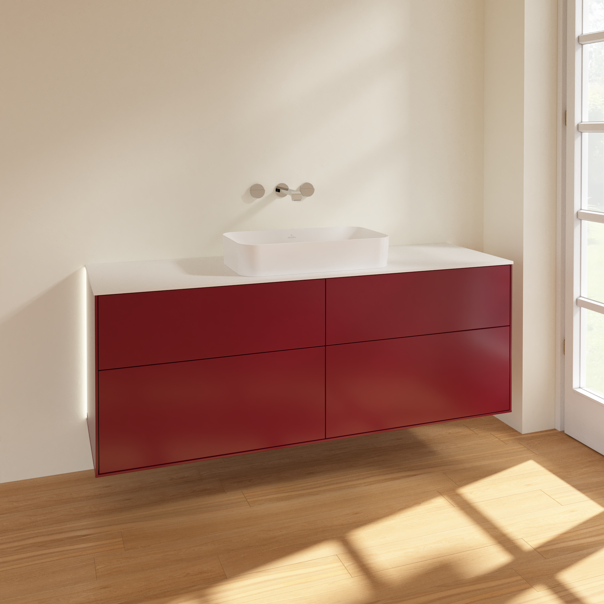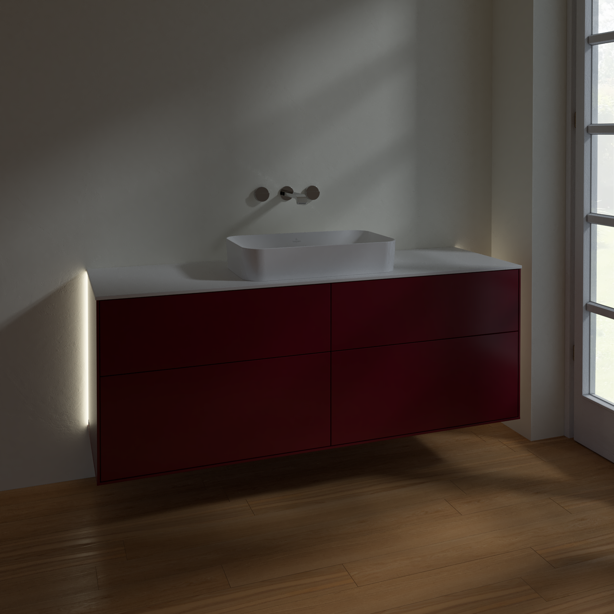 Finion Meuble sous plan, avec éclairage, 4 tiroirs sur rails, 1600x603x501mm, Caisson: Peony Matt Lacquer, Façade: Peony Matt Lacquer, Plaque de recouvrement: Glass White Matt
