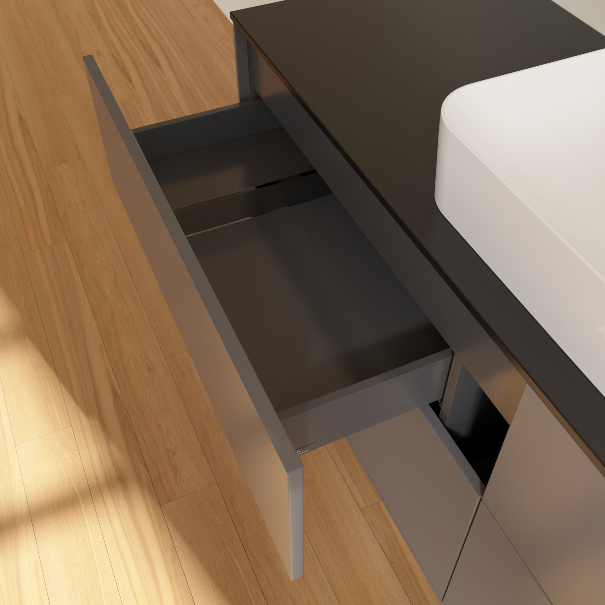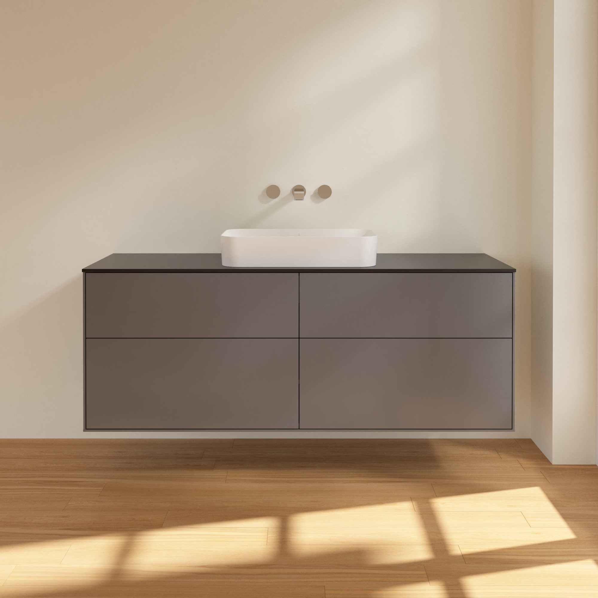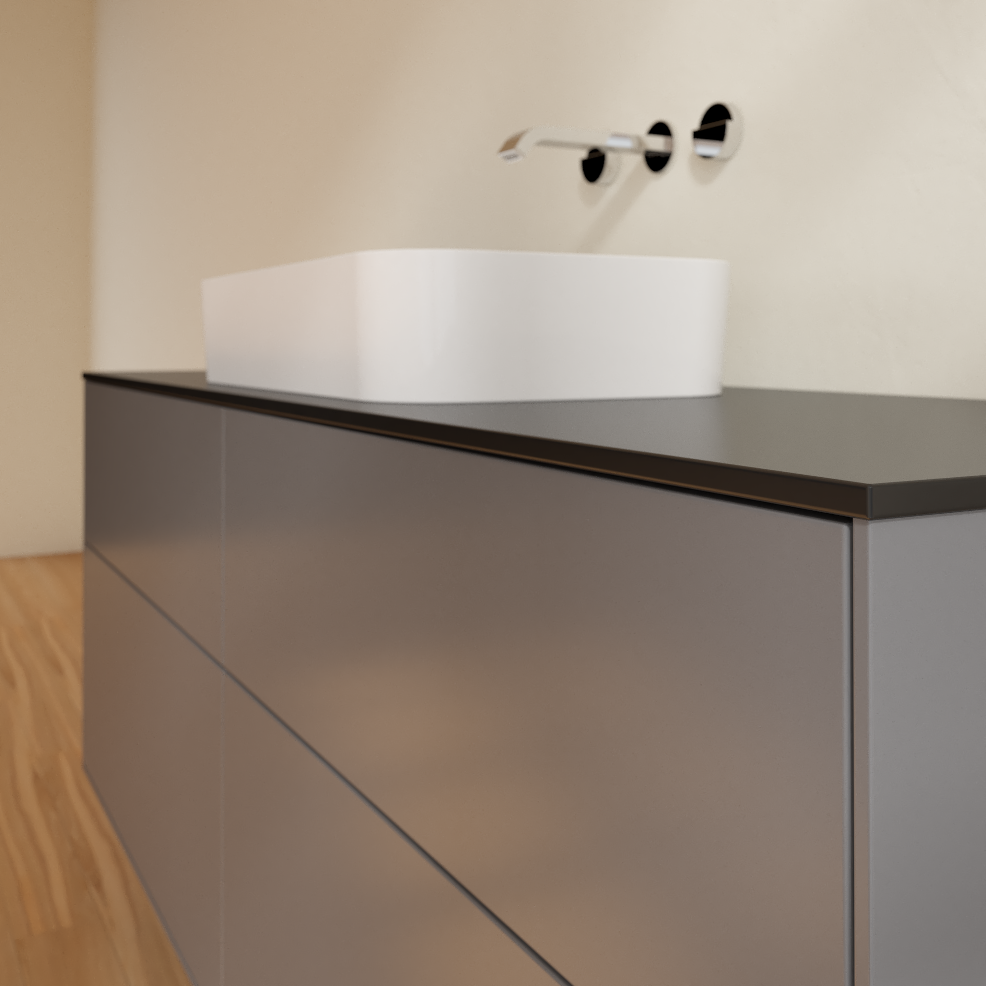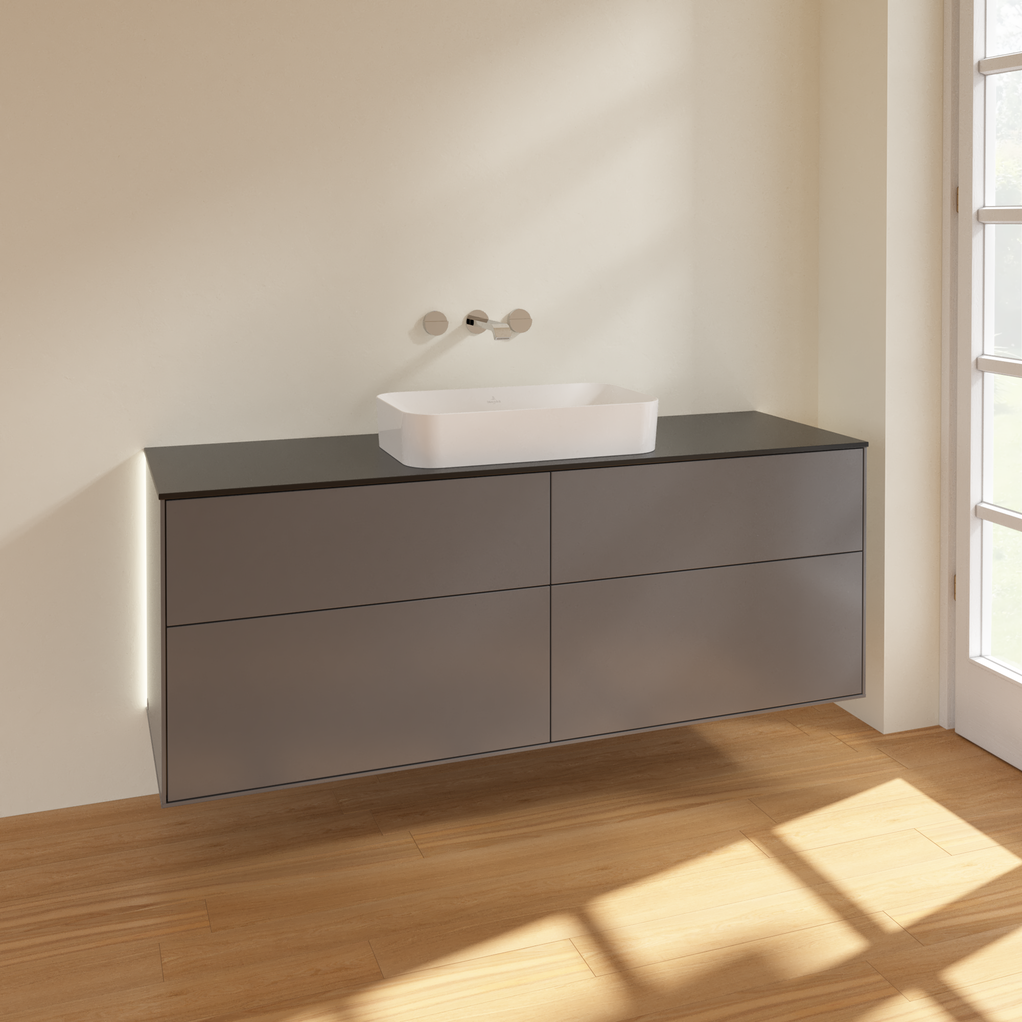 Finion Meuble sous plan, avec éclairage, 4 tiroirs sur rails, 1600x603x501mm, Caisson: Anthracite Matt Lacquer, Façade: Anthracite Matt Lacquer, Plaque de recouvrement: Glass Black Matt