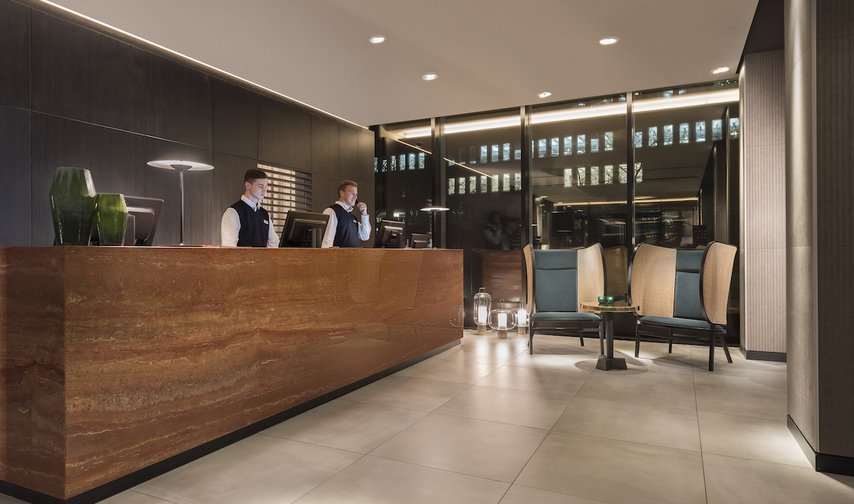 En harmonie avec le design intérieur de haute qualité qui règne dans l’hôtel, des carreaux Villeroy & Boch ont été mis en œuvre dans divers endroits. Par exemple, le sol du hall d’entrée est recouvert de grands carreaux en grès porcelainé de la série SPOTLIGHT ; leur couleur grège évoquant la sobriété du béton est en parfaite harmonie avec les tonalités chaleureuses de l’aménagement intérieur. La série PRO ARCHITECTURA a été retenue pour la très spacieuse piscine intérieure ; ce concept modulaire de formats et de couleurs comprend non seulement un grand choix de carreaux de qualité supérieure mais aussi toutes les pièces spéciales nécessaires à la construction de piscines. Pour la zone de repos autour de la piscine, le choix s’est arrêté sur des carreaux anthracite en grès porcelainé de la série WAREHOUSE dont le design s’inspire du béton coulé au look discrètement usagé.