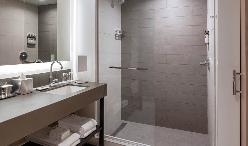 Le Hyatt Regency de Seattle dispose de chambres et de suites de grand standing entre 30 et 170 m², toutes avec des salles de bains modernes équipées de carreaux Villeroy & Boch. Claire et accueillante, la série de carreaux en grès porcelainé ASPEN a été retenue pour recouvrir les sols des halls d’entrée et des salles de bains ainsi que deux murs des douches et des baignoires ; cette série présente un aspect de pierre très expressif avec des stratifications et des veinures de couleur mate blanc crème.