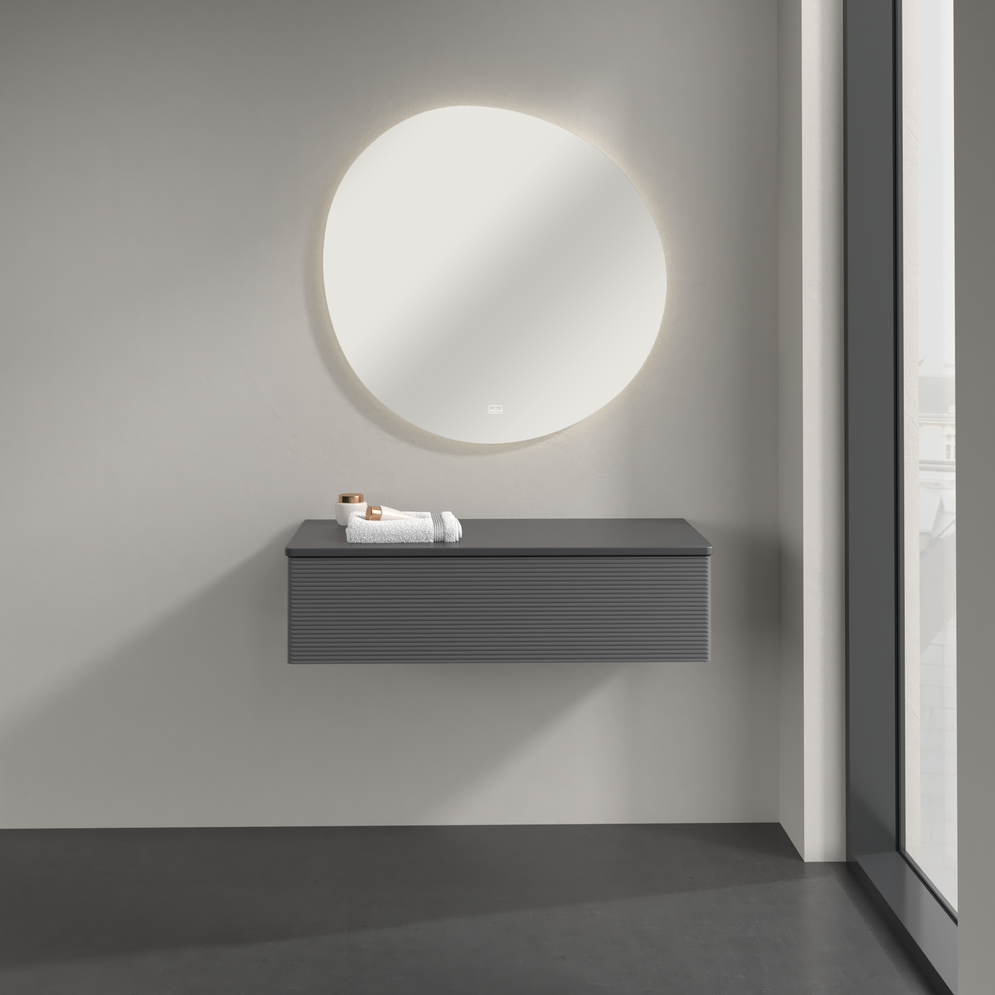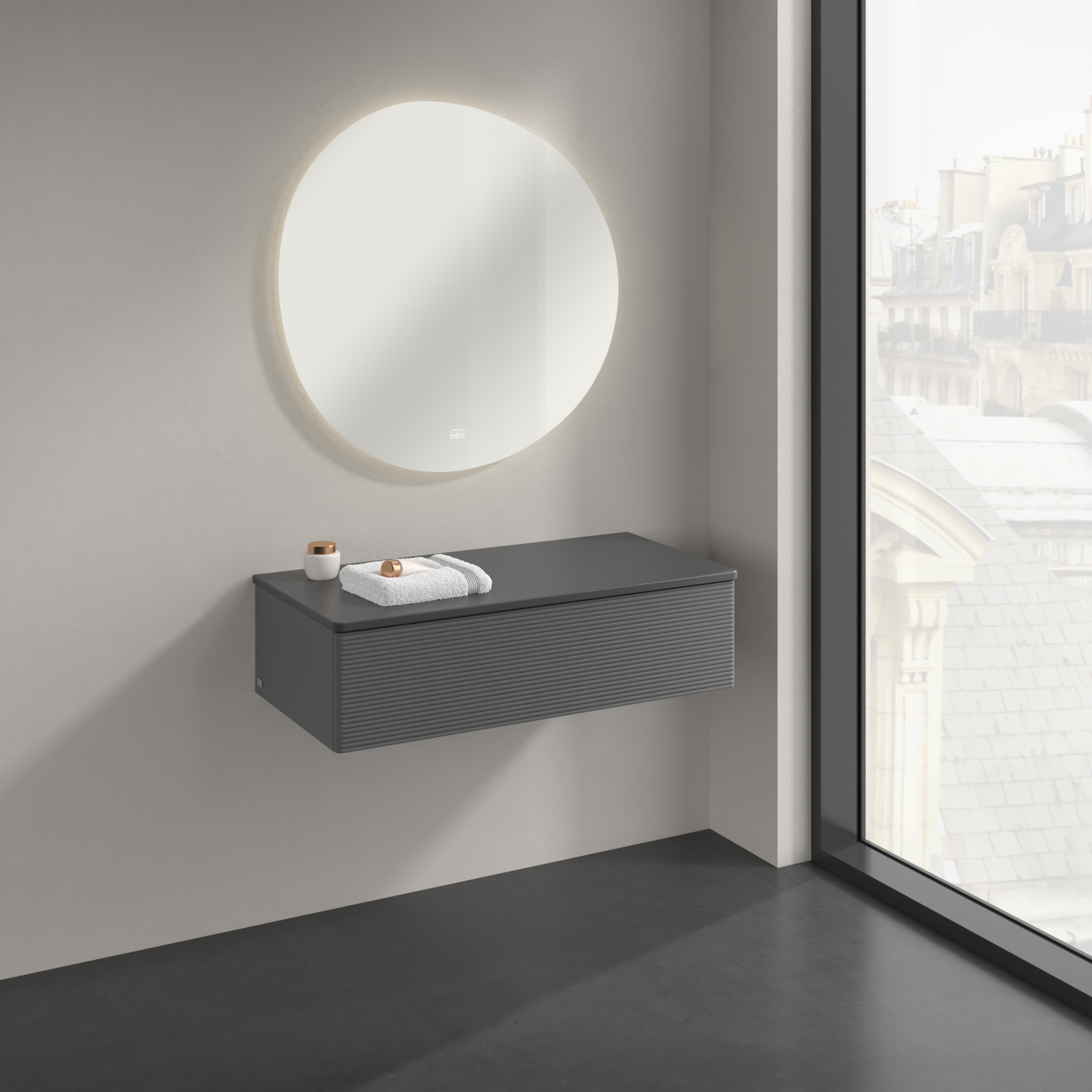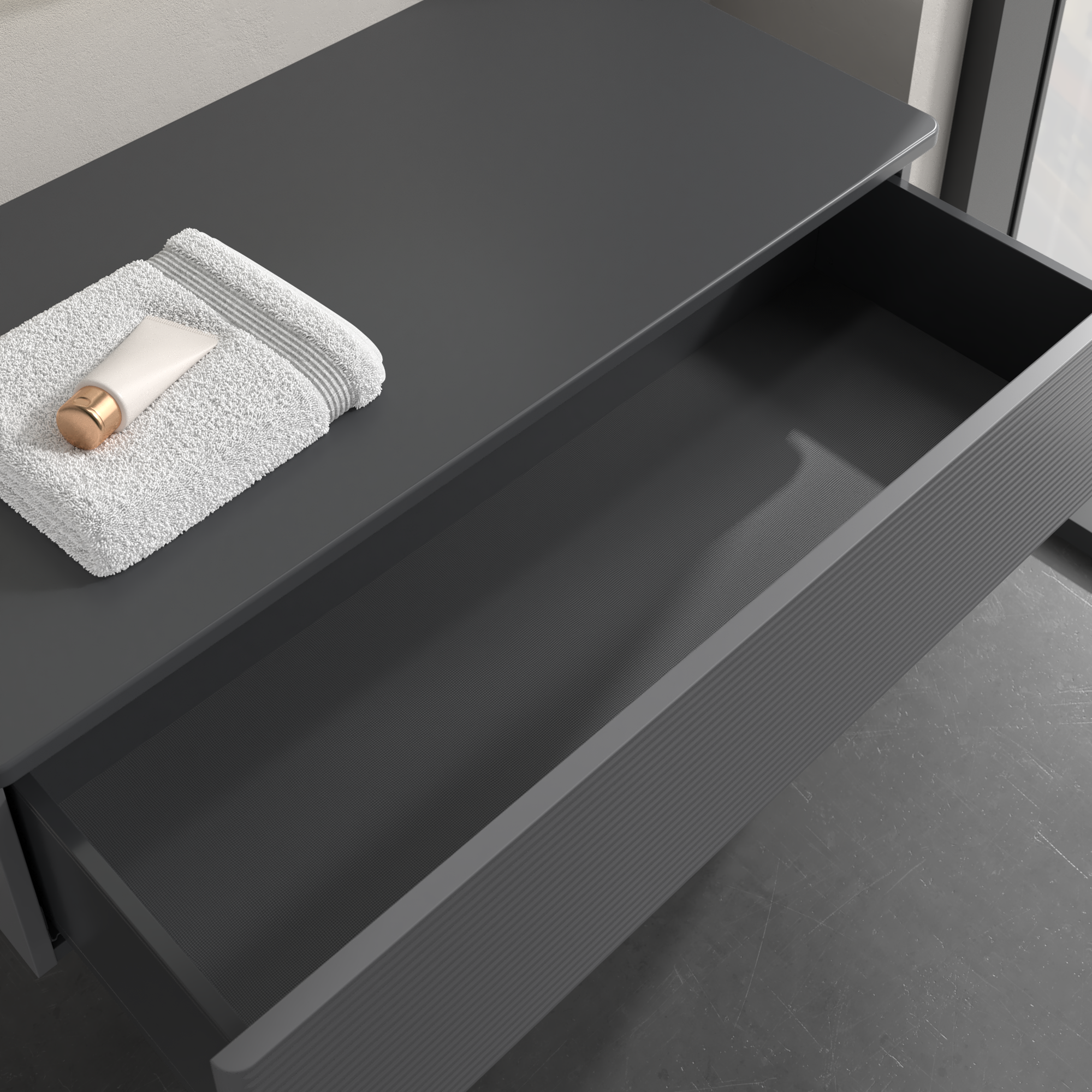 Antao Meuble d'appoint, 1 tiroir sur rails, 1000x268x500mm, Façade avec structure, Caisson: Anthracite Matt Lacquer, Façade: Anthracite Matt Lacquer, Plaque de recouvrement: Honey Oak