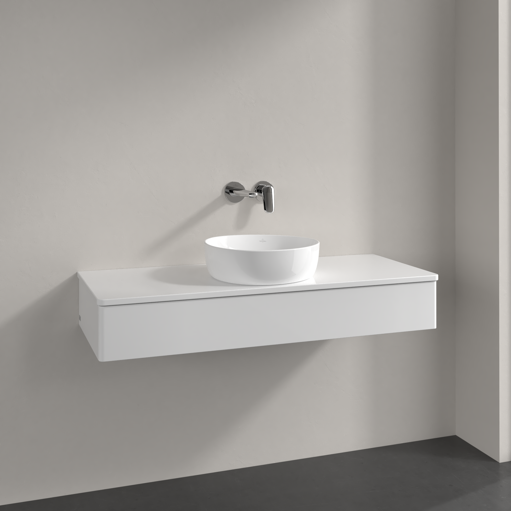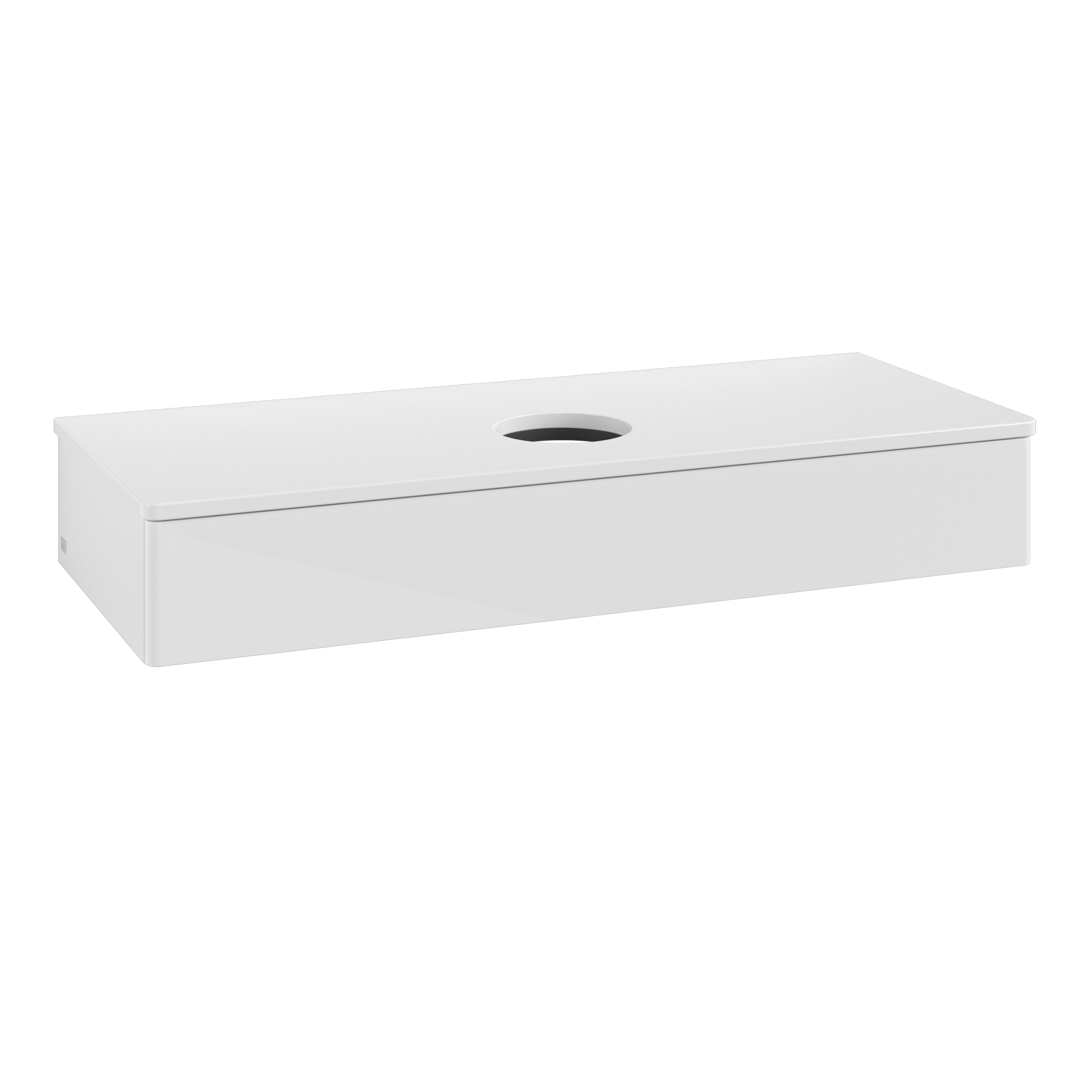 Antao Meuble sous plan, 1 tiroir sur rails, 1200x190x500mm, Façade sans structure, Caisson: Glossy White Lacquer, Façade: Glossy White Lacquer, Plaque de recouvrement: Glossy White Lacquer