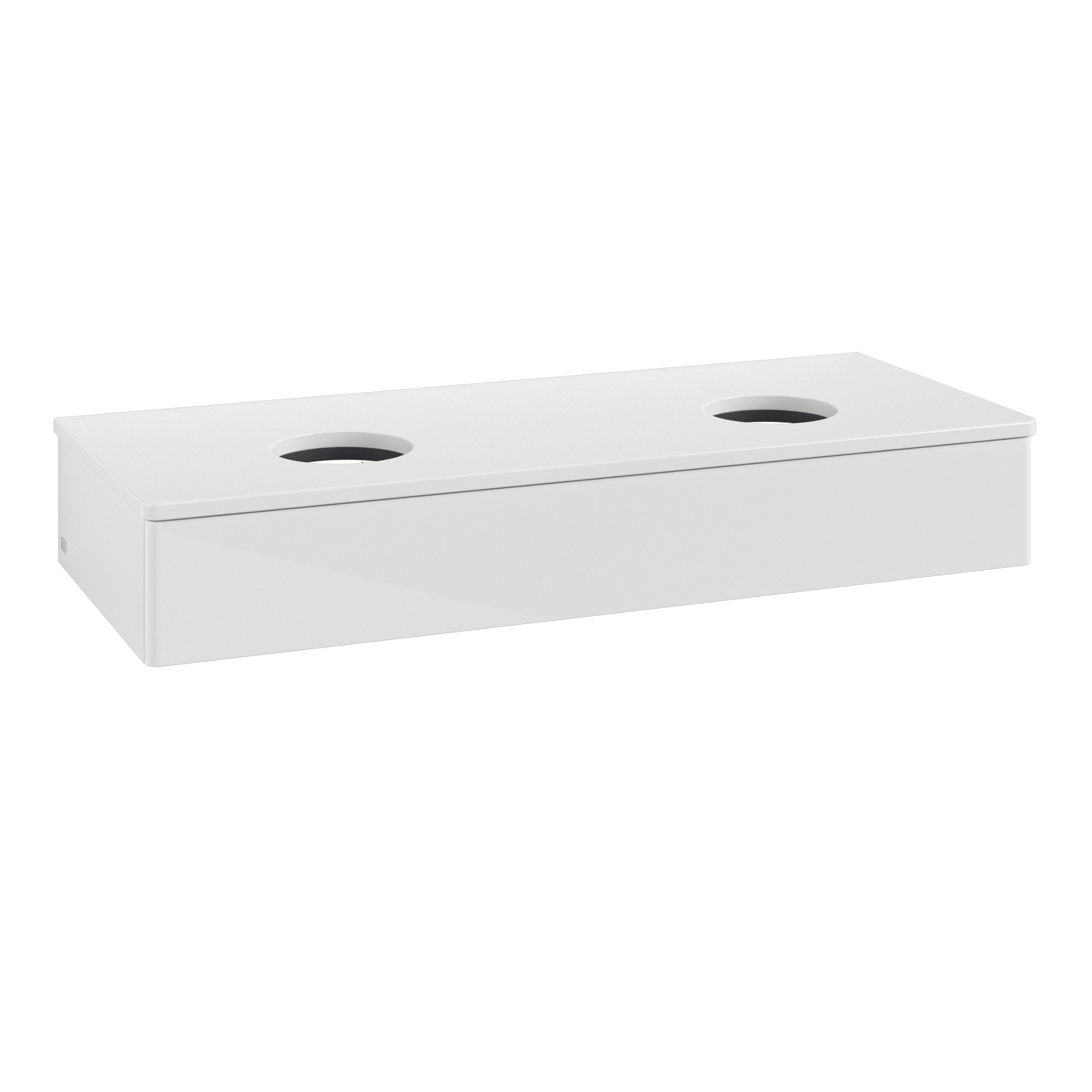 Antao Meuble sous plan, 1 tiroir sur rails, 1200x190x500mm, Façade sans structure, Caisson: Glossy White Lacquer, Façade: Glossy White Lacquer, Plaque de recouvrement: Glossy White Lacquer