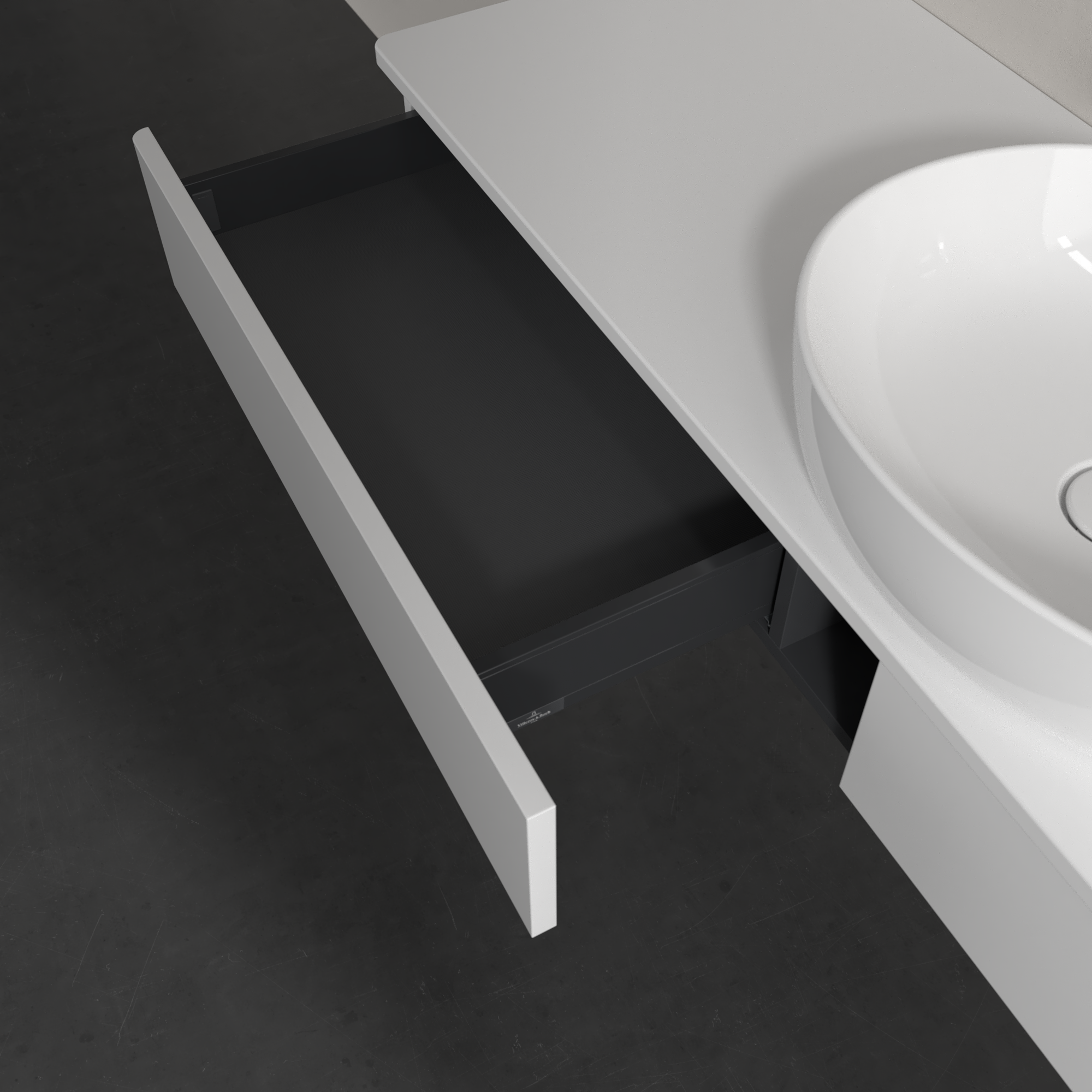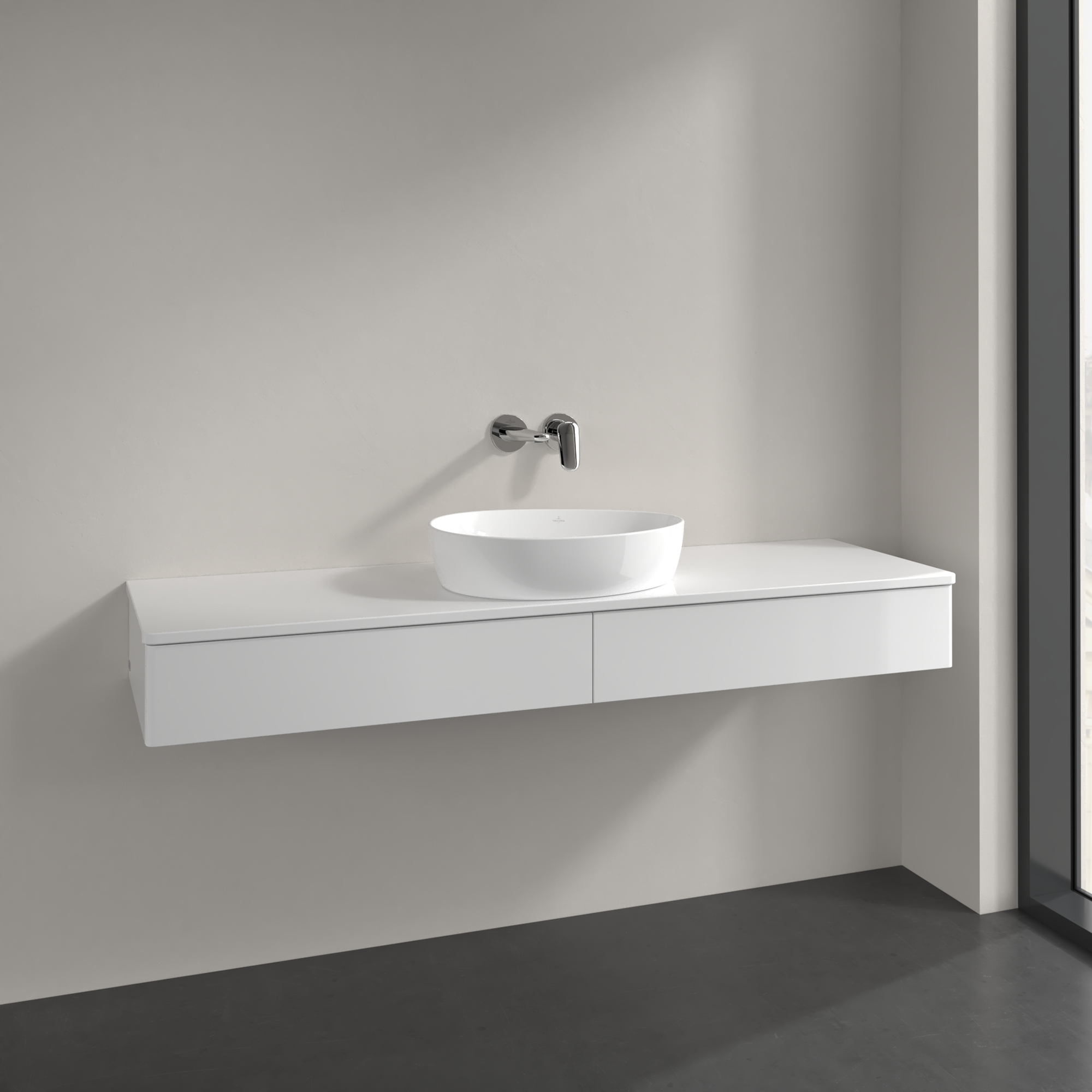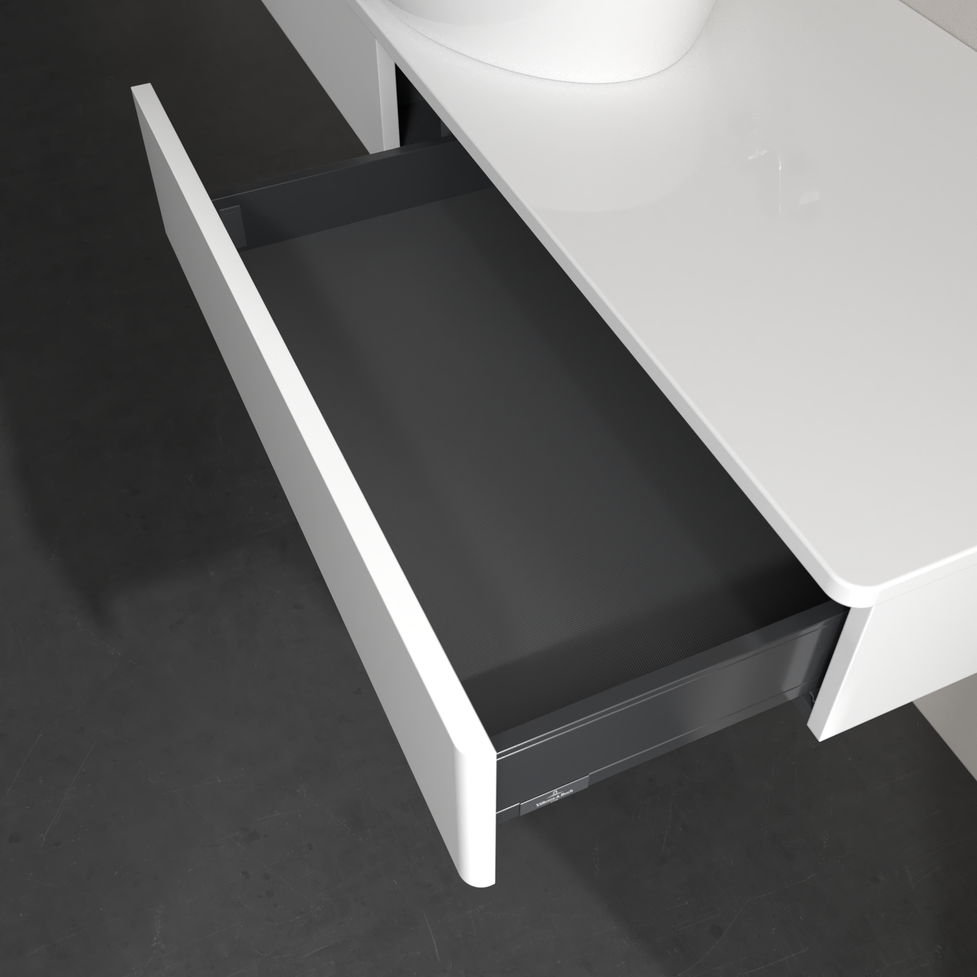 Antao Meuble sous plan, 2 tiroirs sur rails, 1600x190x500mm, Façade sans structure, Caisson: Glossy White Lacquer, Façade: Glossy White Lacquer, Plaque de recouvrement: Glossy White Lacquer