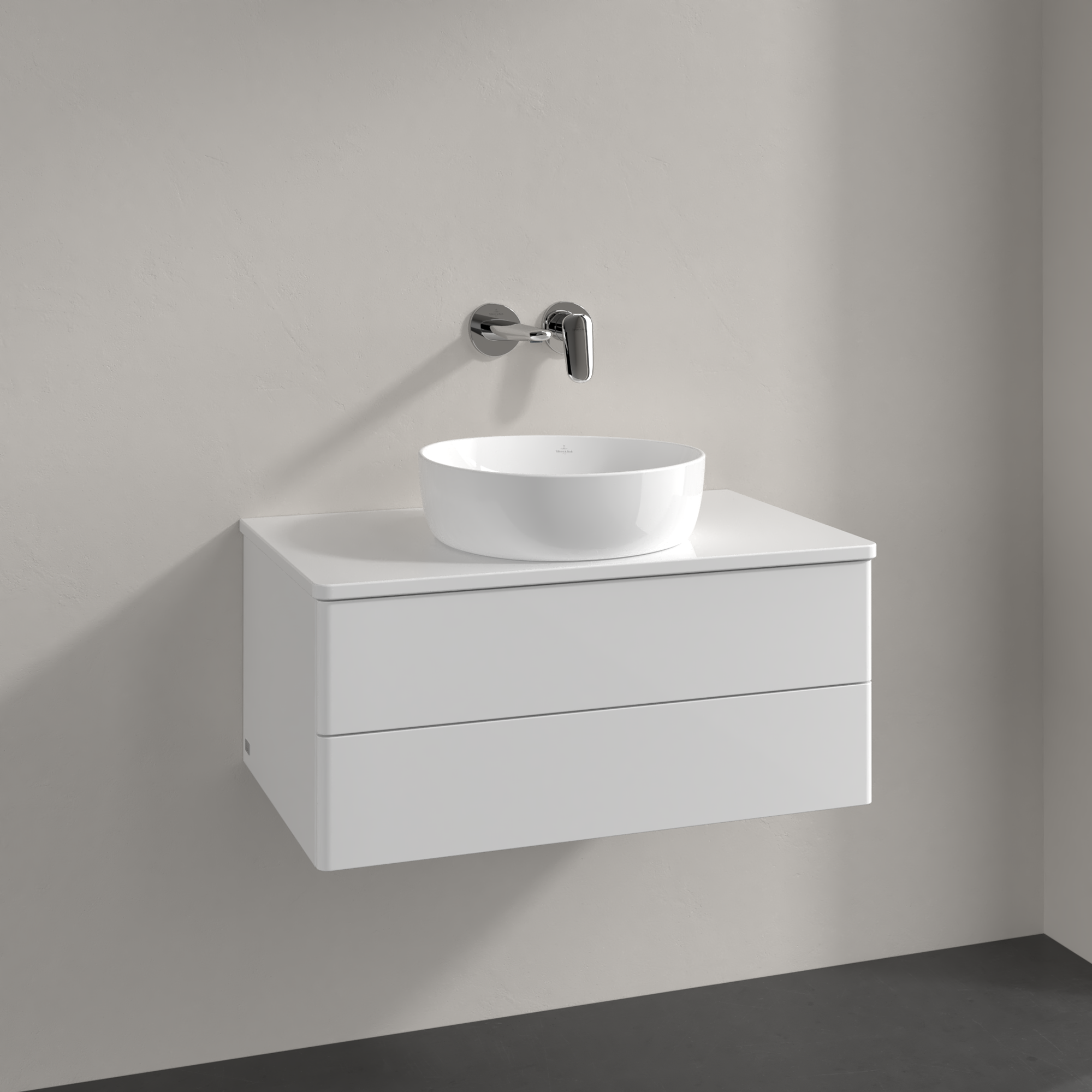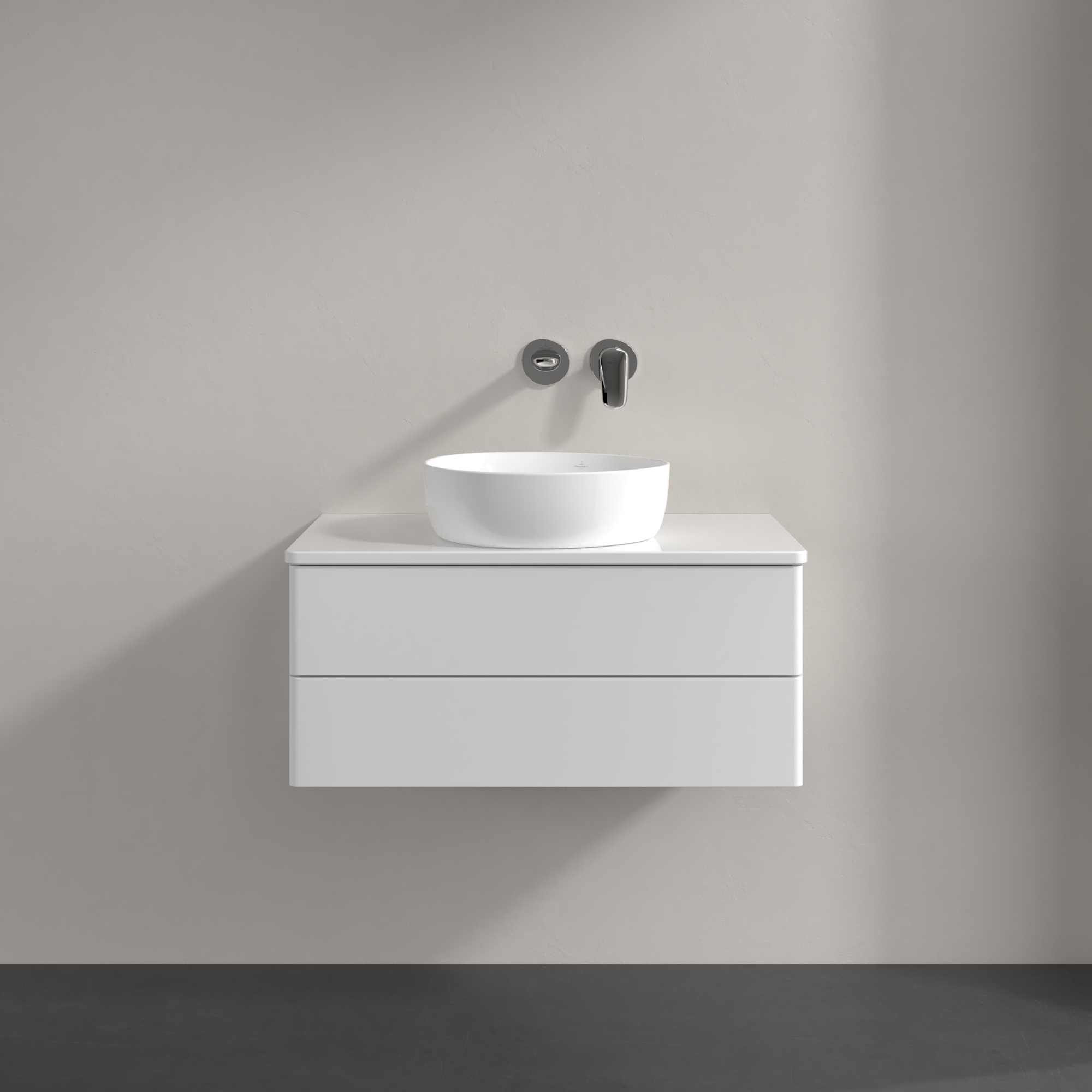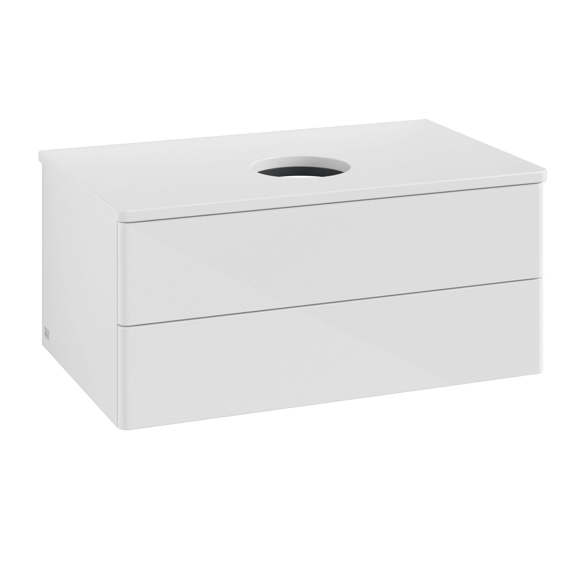 Antao Meuble sous plan, 2 tiroirs sur rails, 800x360x500mm, Façade sans structure, Caisson: Glossy White Lacquer, Façade: Glossy White Lacquer, Plaque de recouvrement: Glossy White Lacquer