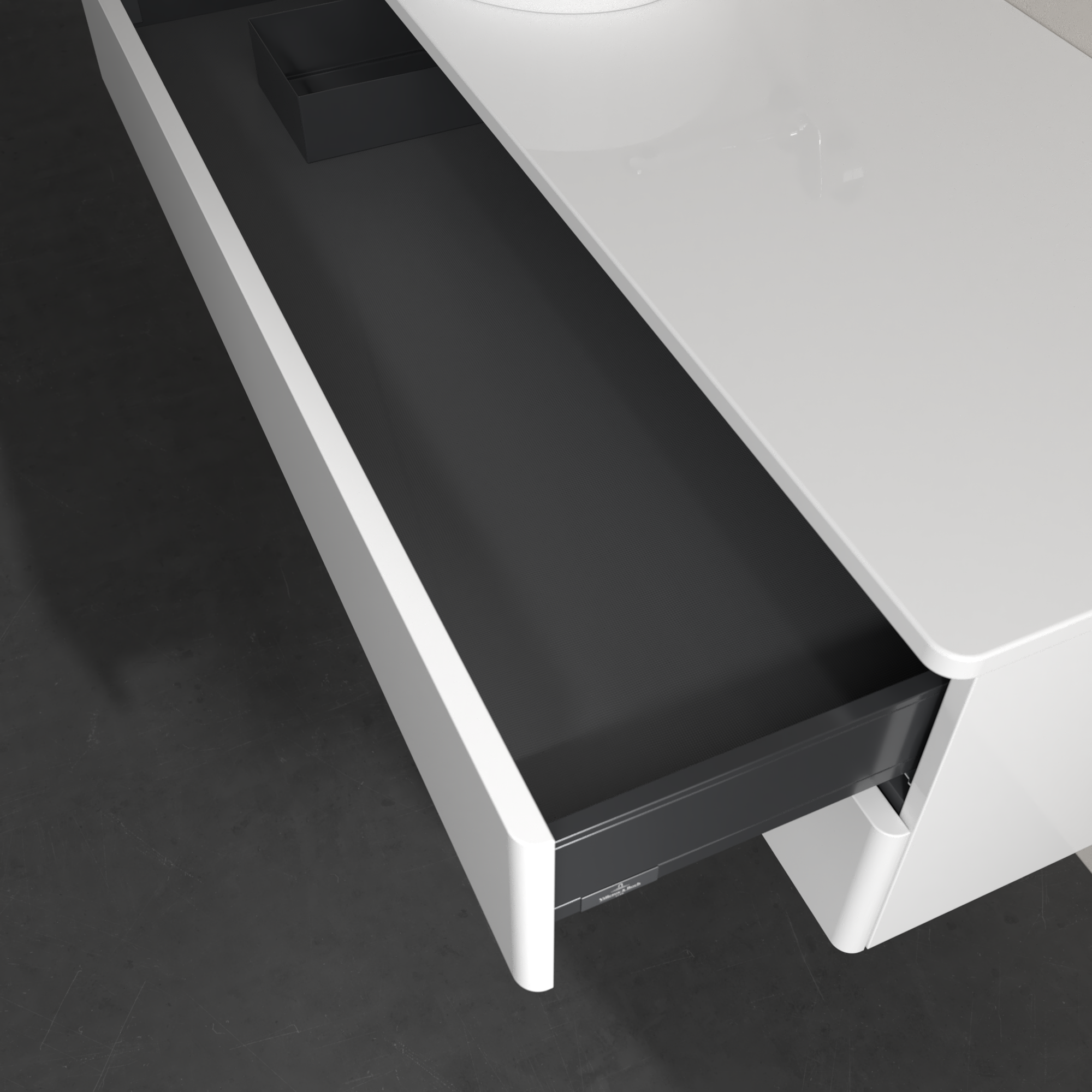 Antao Meuble sous plan, 2 tiroirs sur rails, 1200x360x500mm, Façade sans structure, Caisson: Glossy White Lacquer, Façade: Glossy White Lacquer, Plaque de recouvrement: Glossy White Lacquer