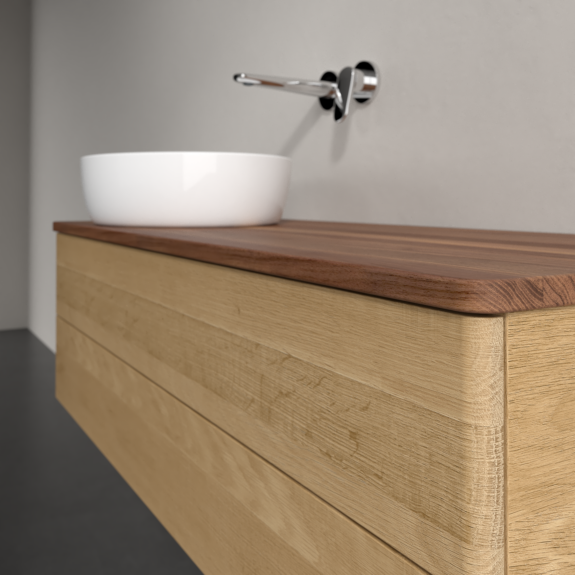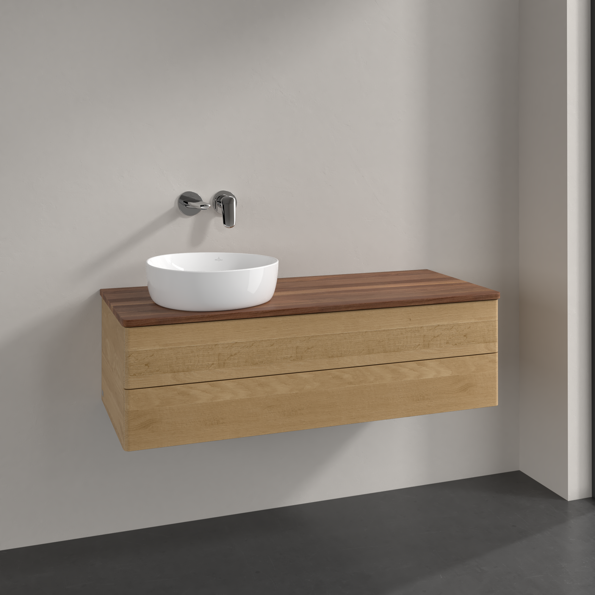 Antao Meuble sous plan, 2 tiroirs sur rails, 1200x360x500mm, Façade sans structure, Caisson: Honey Oak, Façade: Honey Oak, Plaque de recouvrement: Warm Walnut