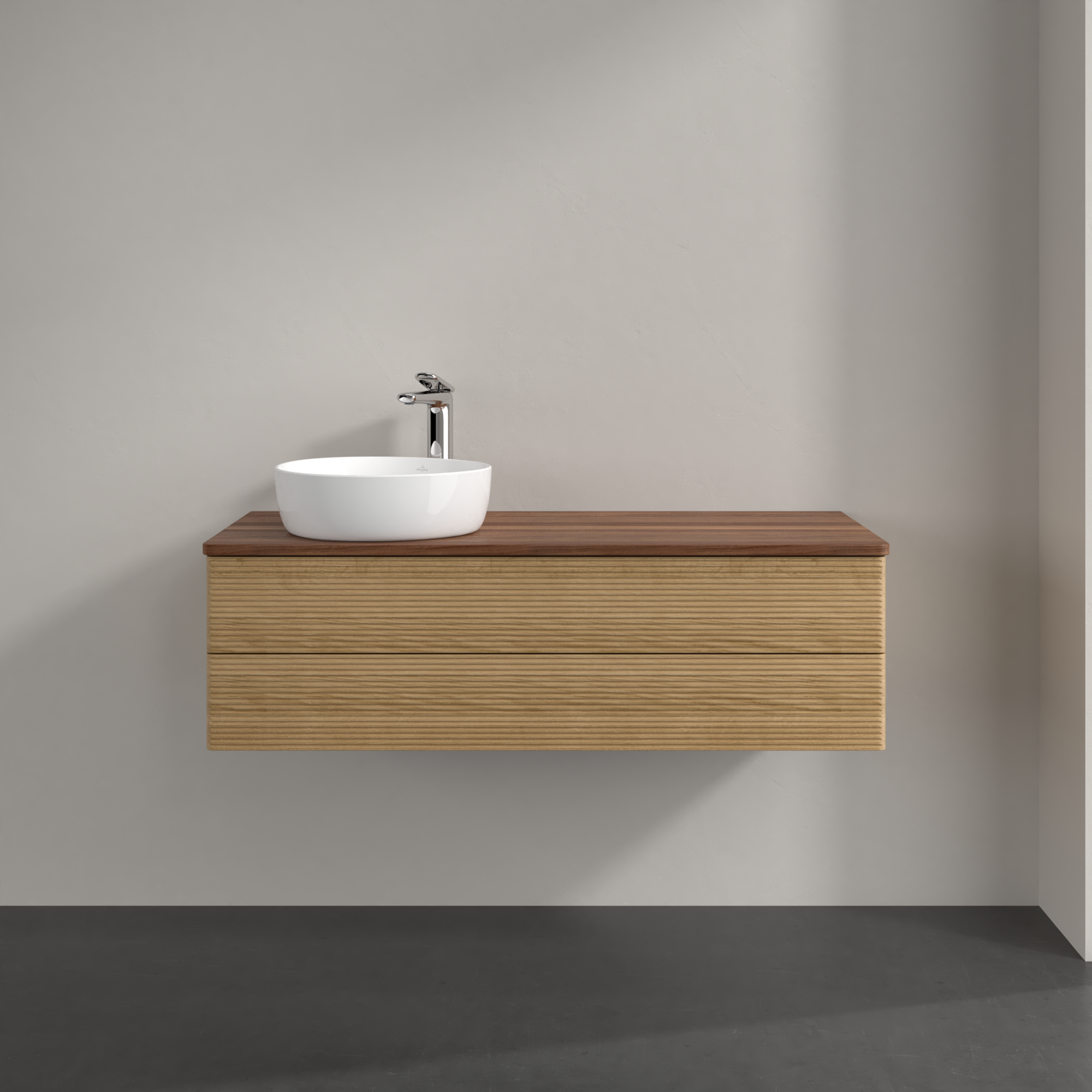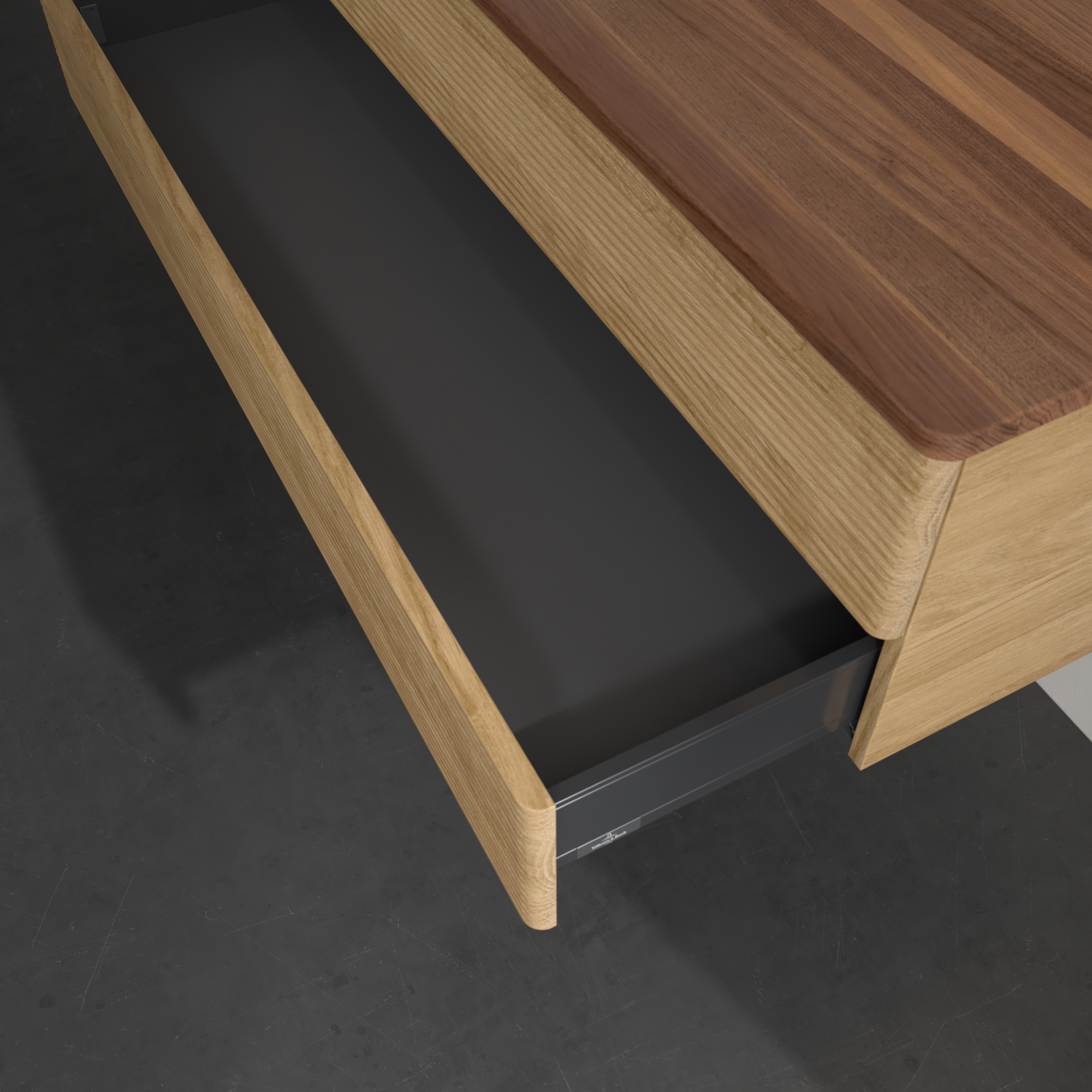 Antao Meuble sous plan, 2 tiroirs sur rails, 1200x360x500mm, Façade avec structure, Caisson: Honey Oak, Façade: Honey Oak, Plaque de recouvrement: Warm Walnut