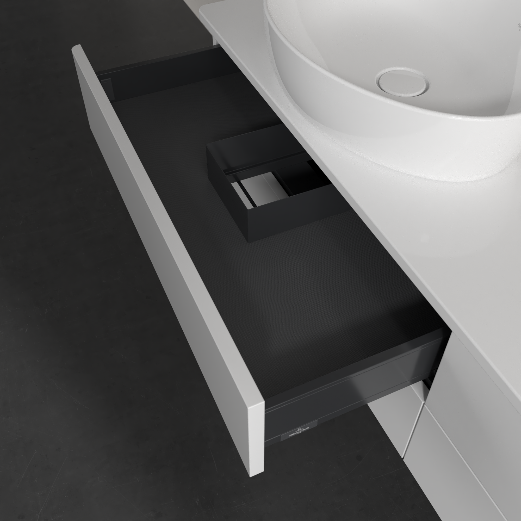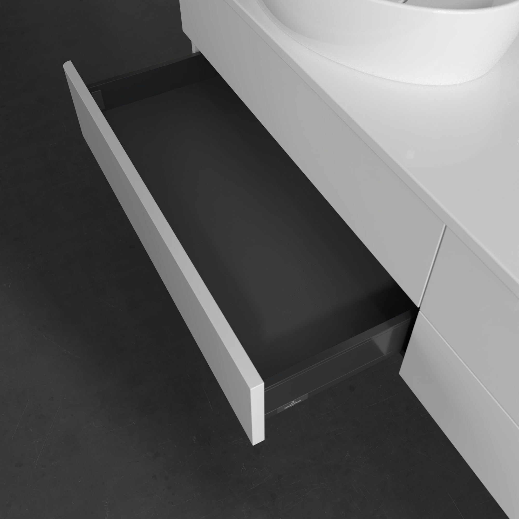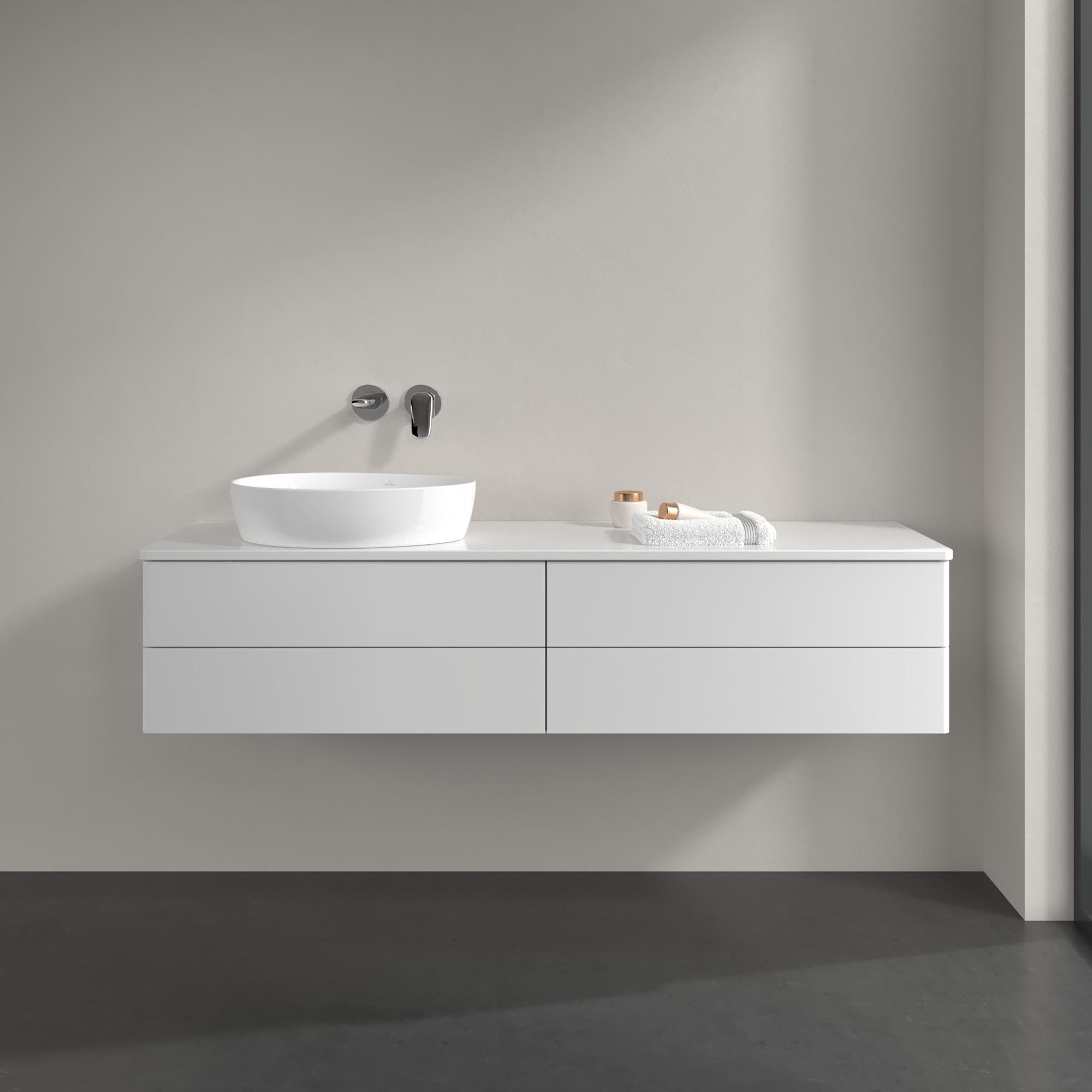 Antao Meuble sous plan, 4 tiroirs sur rails, 1600x360x500mm, Façade sans structure, Caisson: Glossy White Lacquer, Façade: Glossy White Lacquer, Plaque de recouvrement: Glossy White Lacquer