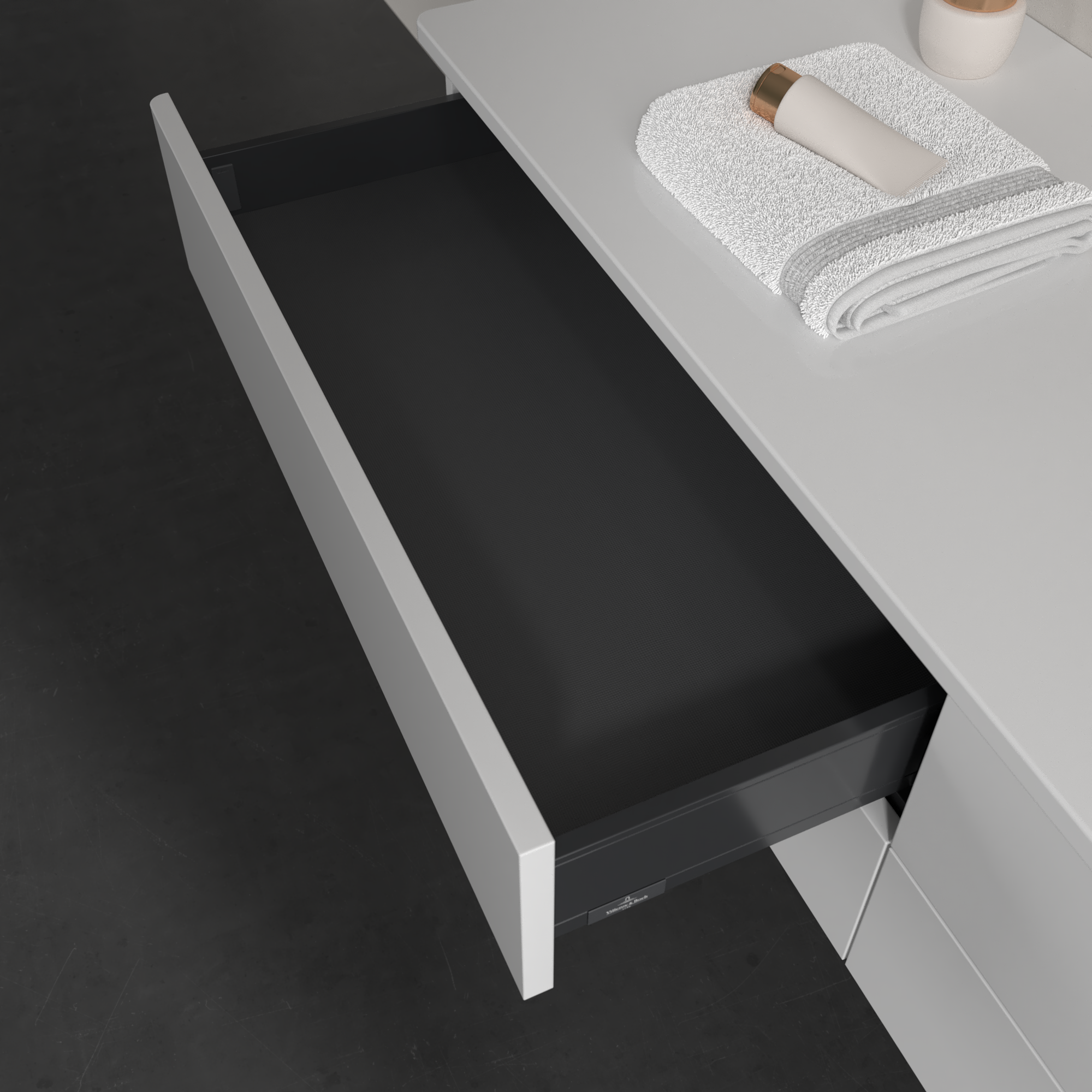 Antao Meuble sous plan, 4 tiroirs sur rails, 1600x360x500mm, Façade sans structure, Caisson: Glossy White Lacquer, Façade: Glossy White Lacquer, Plaque de recouvrement: Glossy White Lacquer