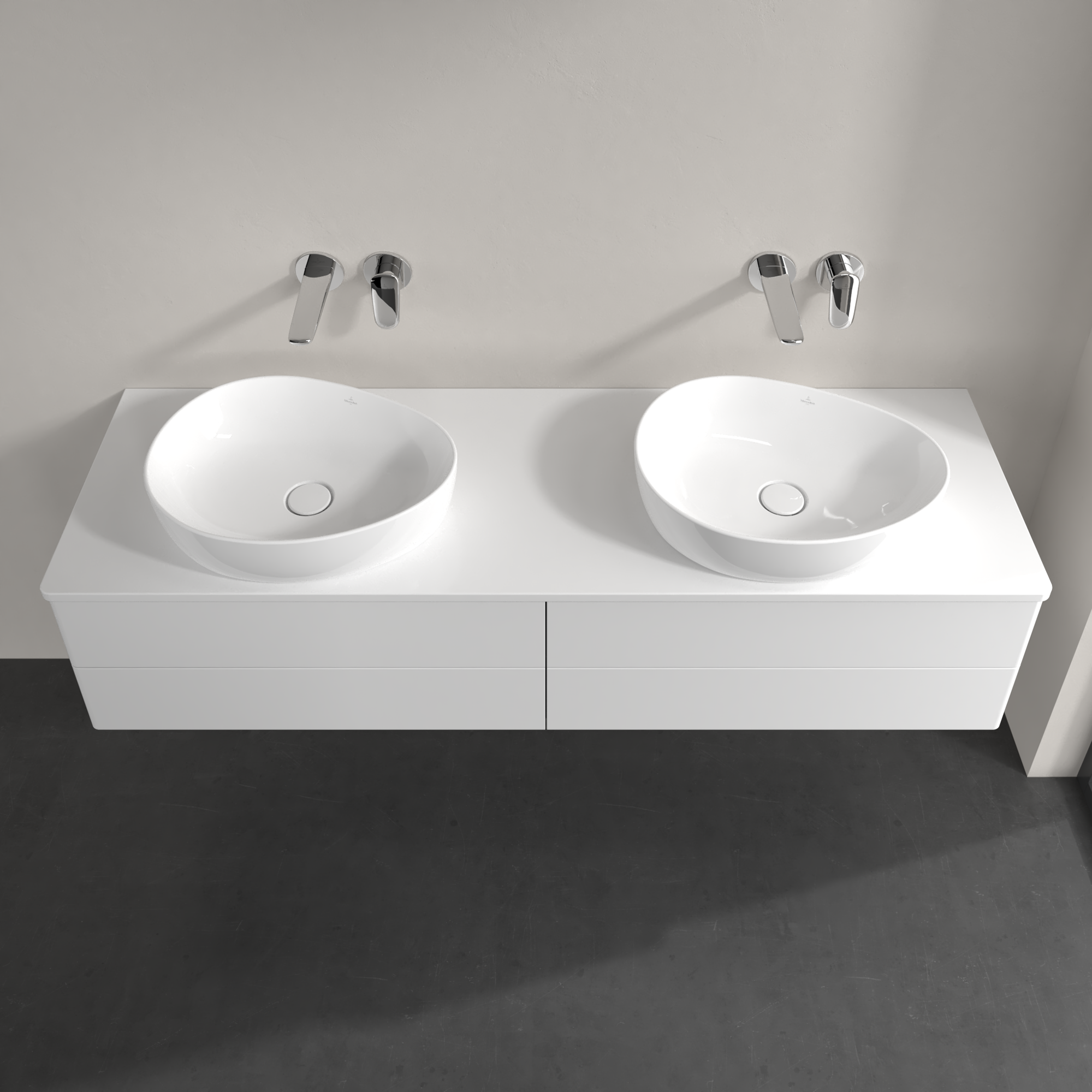 Antao Meuble sous plan, 4 tiroirs sur rails, 1600x360x500mm, Façade sans structure, Caisson: Glossy White Lacquer, Façade: Glossy White Lacquer, Plaque de recouvrement: Glossy White Lacquer