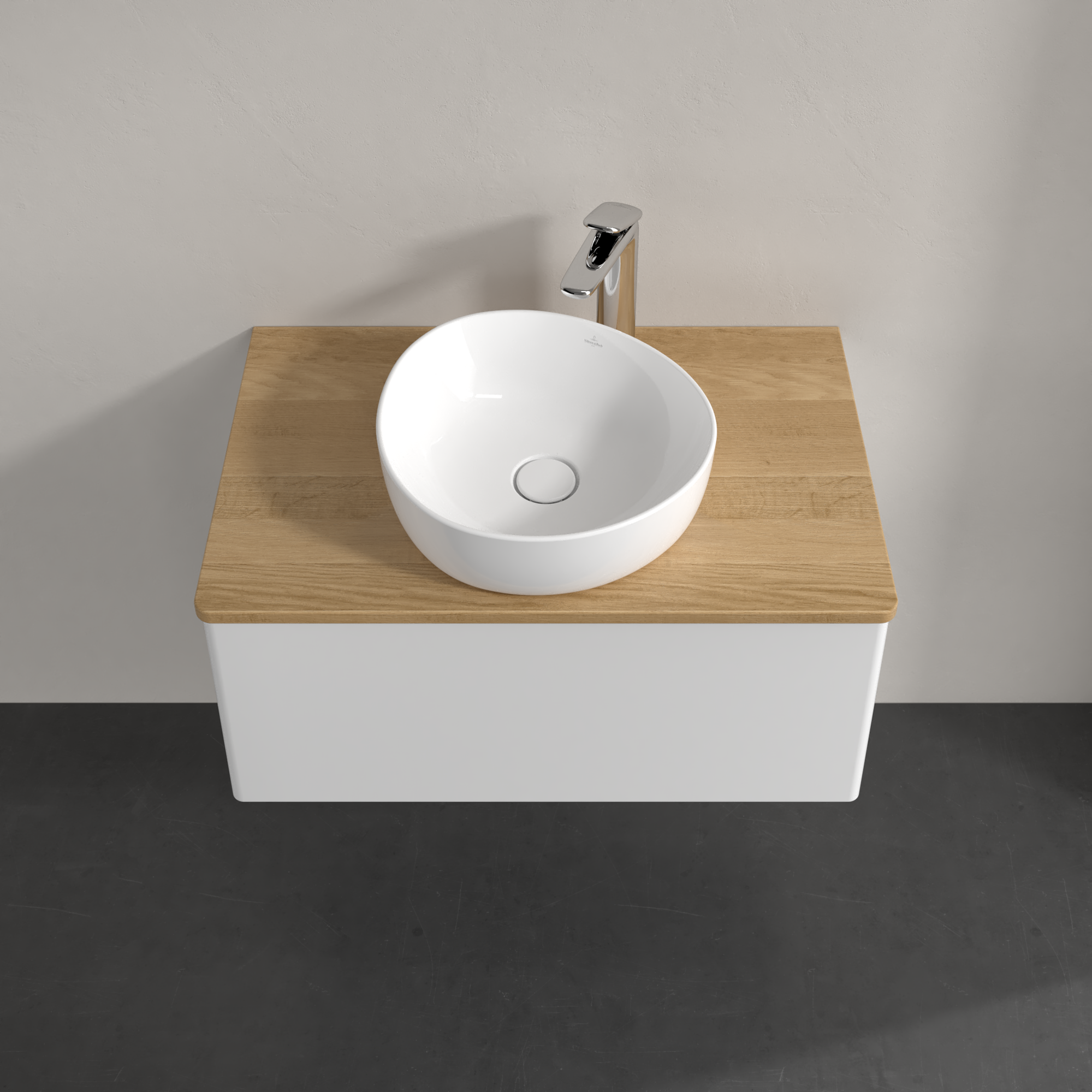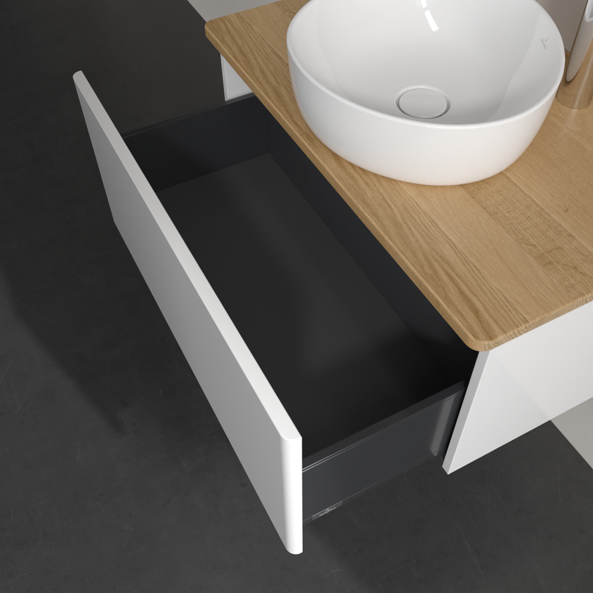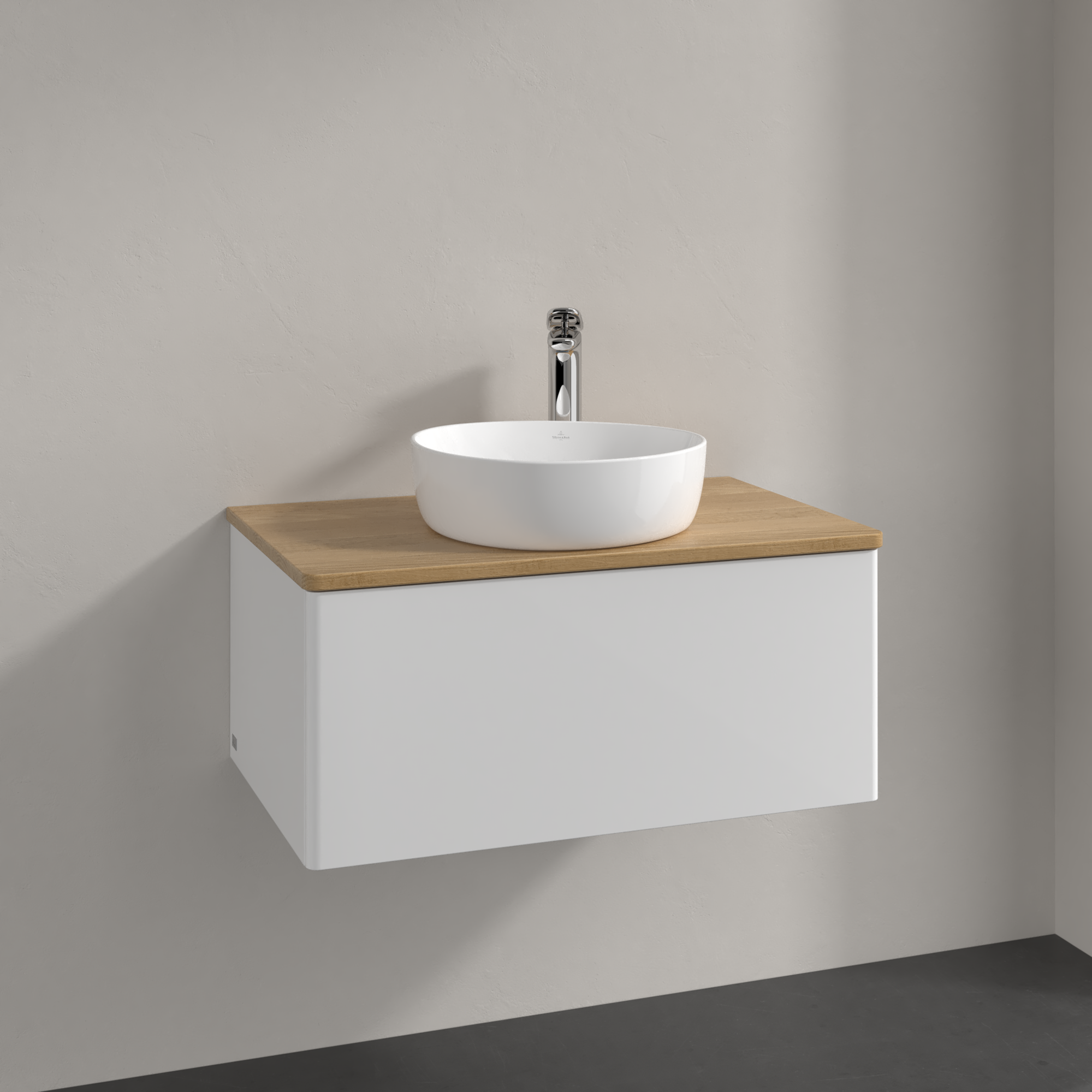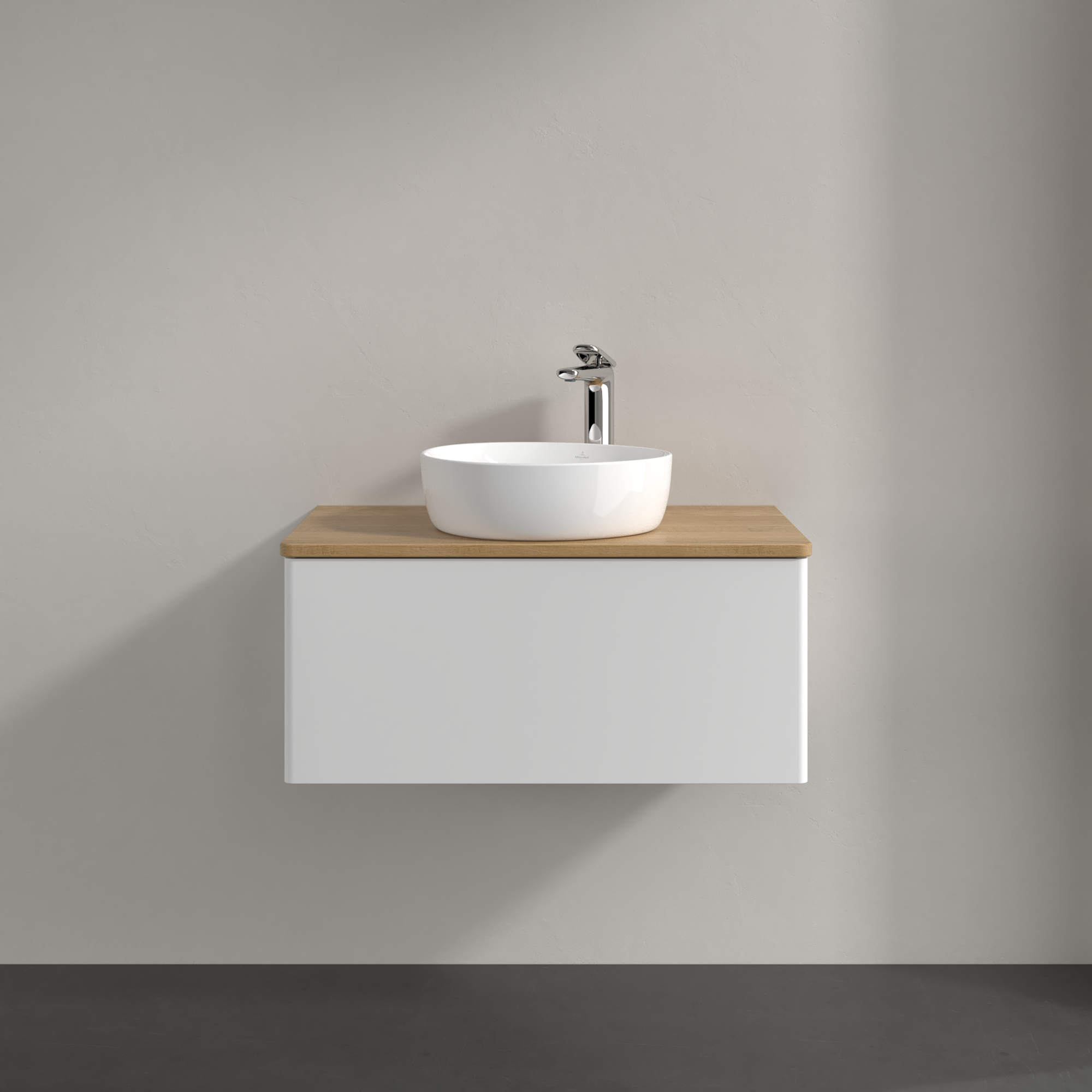 Antao Meuble sous plan, 1 tiroir sur rails, 800x360x500mm, Façade sans structure, Caisson: Glossy White Lacquer, Façade: Glossy White Lacquer, Plaque de recouvrement: Honey Oak