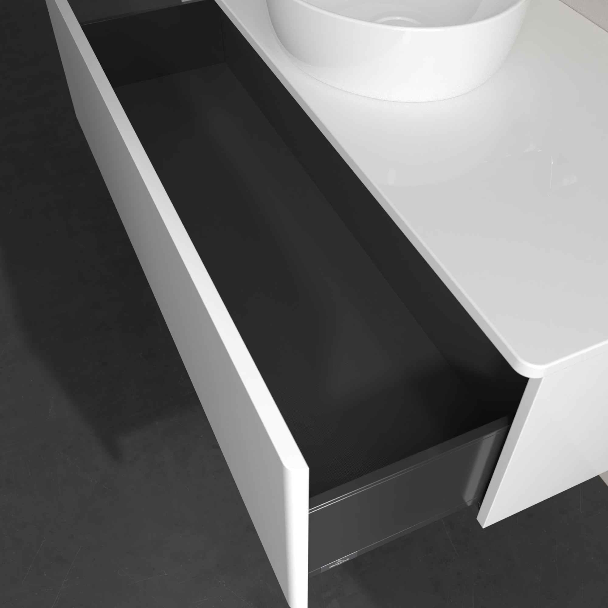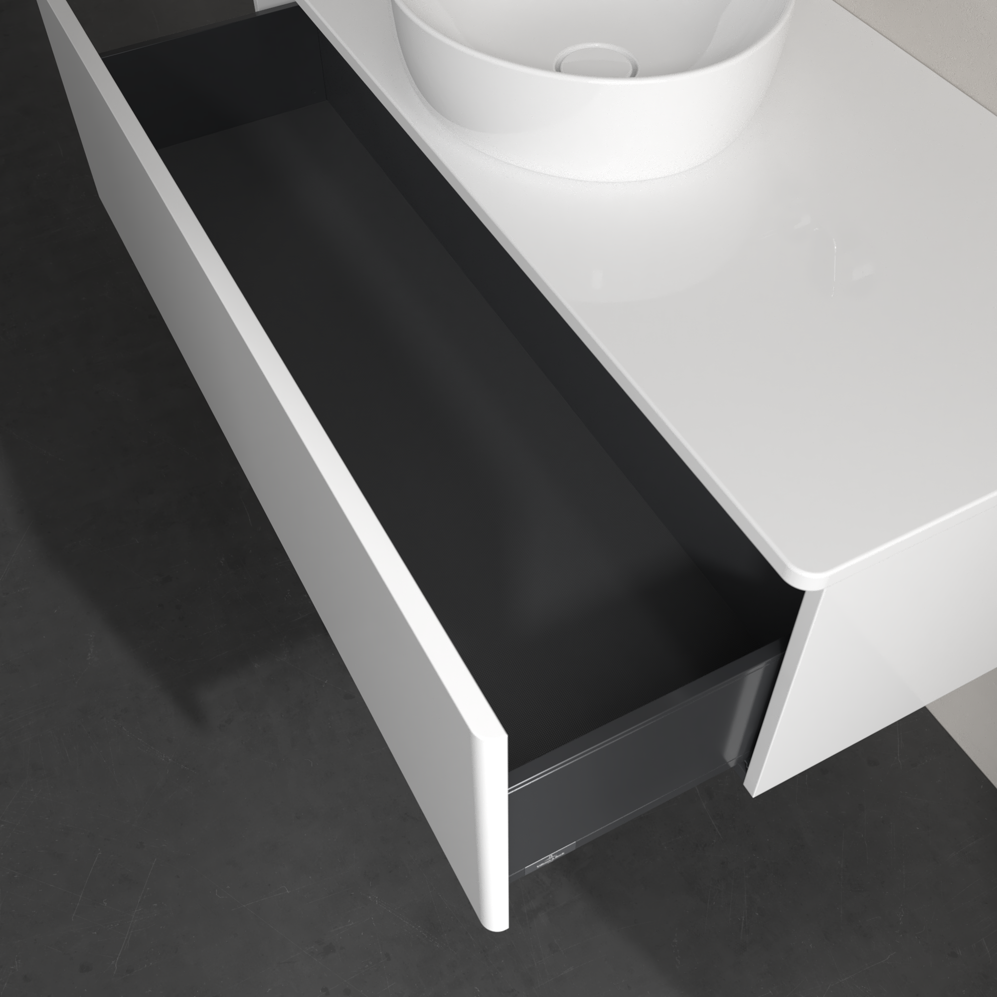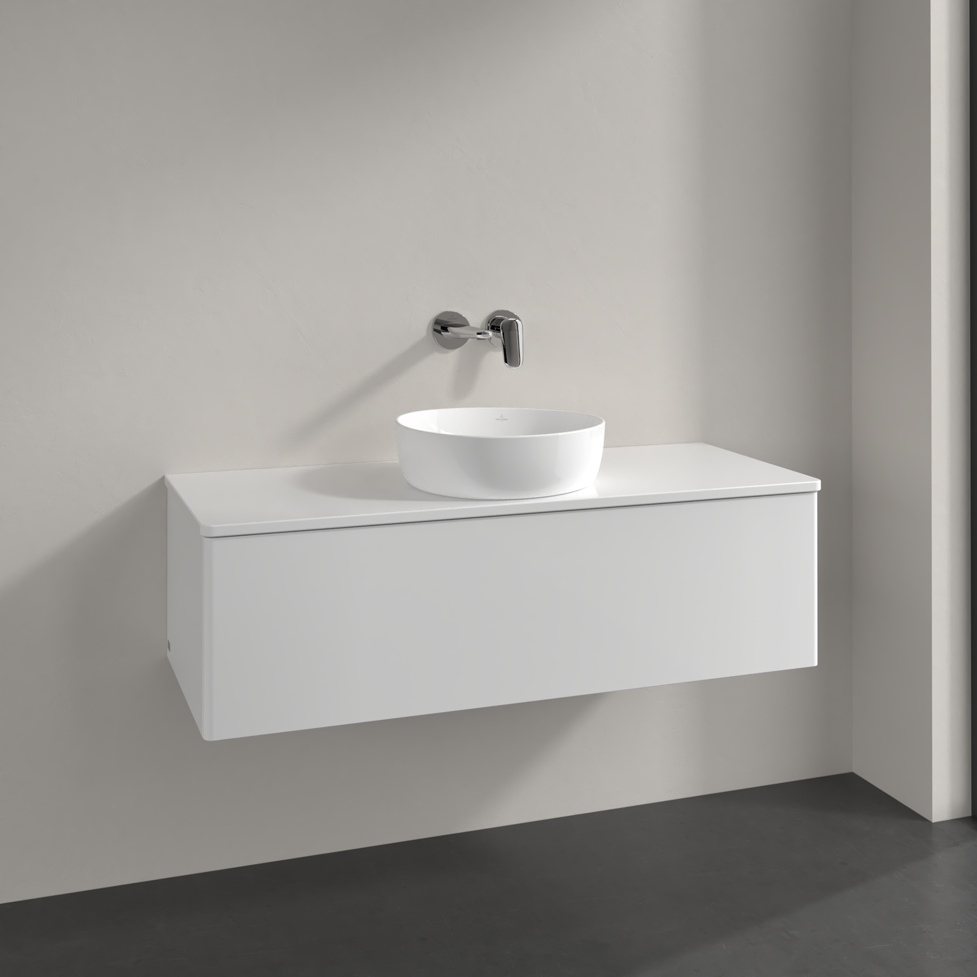 Antao Meuble sous plan, 1 tiroir sur rails, 1200x360x500mm, Façade sans structure, Caisson: Glossy White Lacquer, Façade: Glossy White Lacquer, Plaque de recouvrement: Glossy White Lacquer