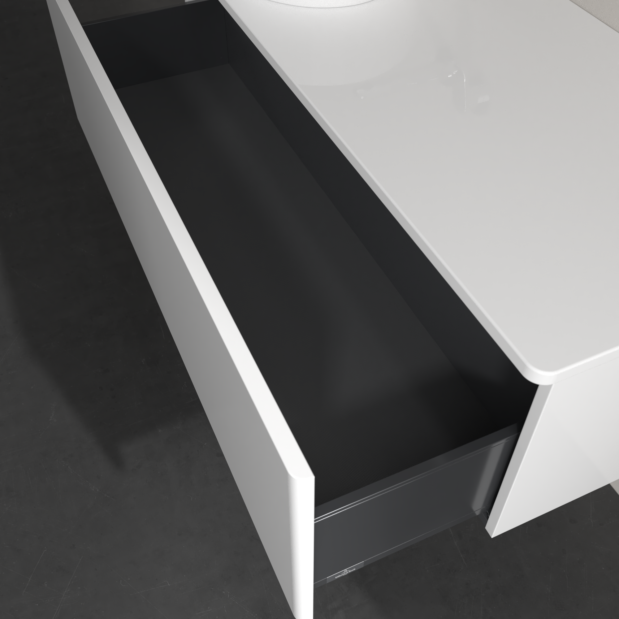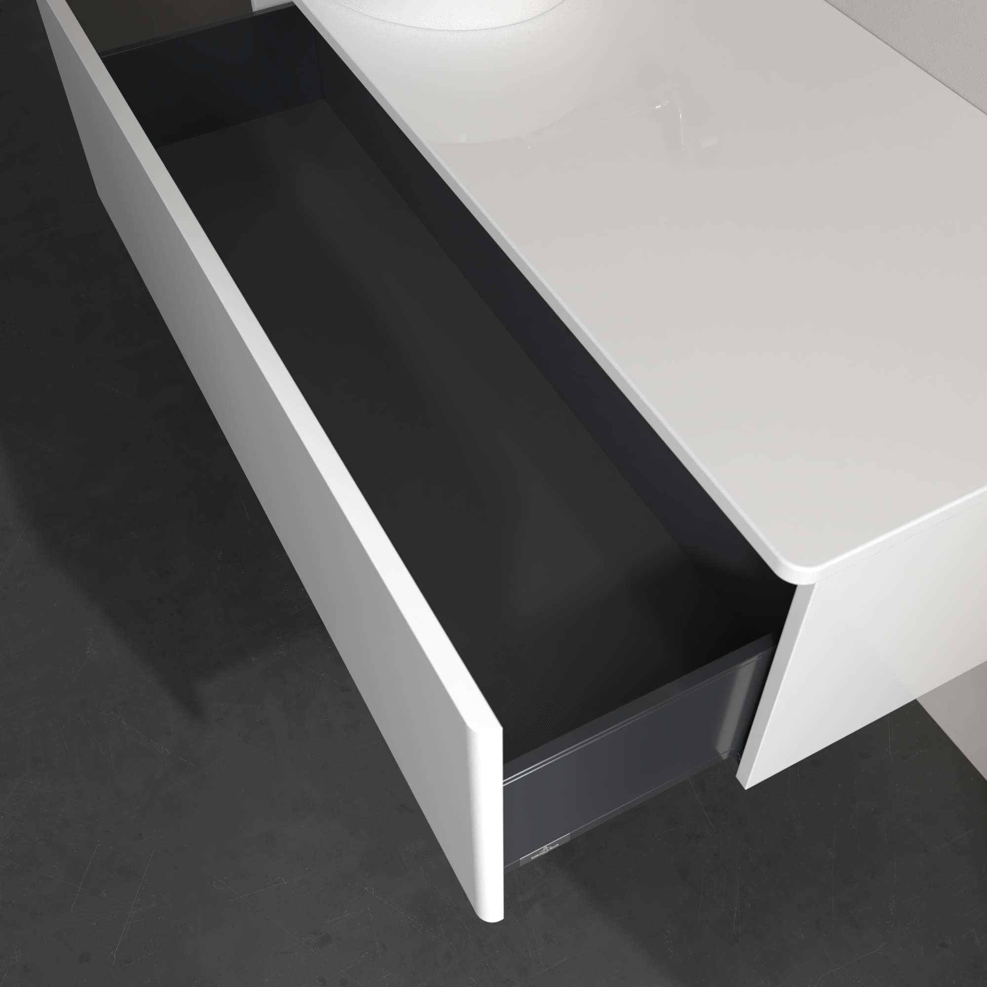 Antao Meuble sous plan, 1 tiroir sur rails, 1200x360x500mm, Façade sans structure, Caisson: Glossy White Lacquer, Façade: Glossy White Lacquer, Plaque de recouvrement: Glossy White Lacquer