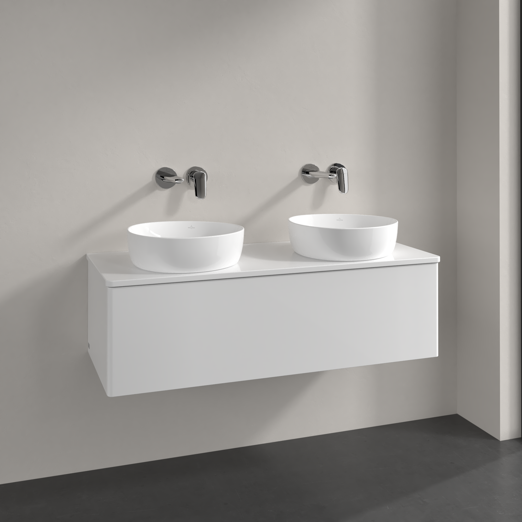 Antao Meuble sous plan, 1 tiroir sur rails, 1200x360x500mm, Façade sans structure, Caisson: Glossy White Lacquer, Façade: Glossy White Lacquer, Plaque de recouvrement: Glossy White Lacquer