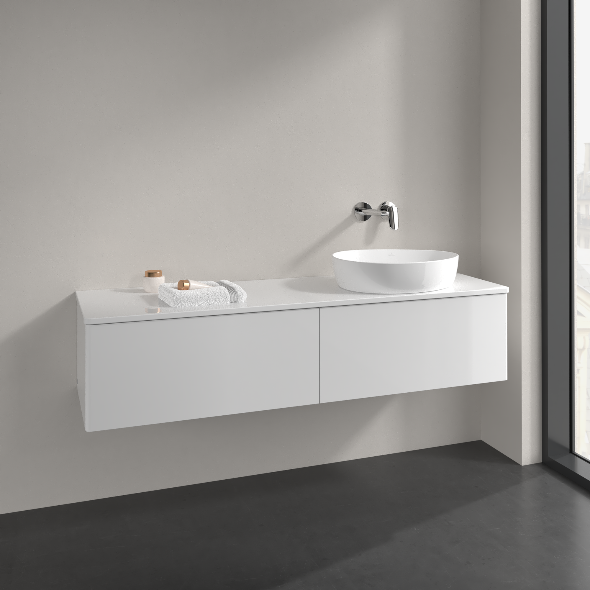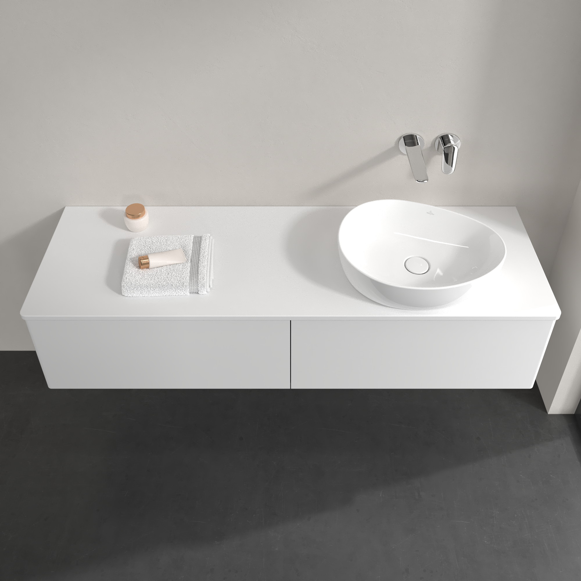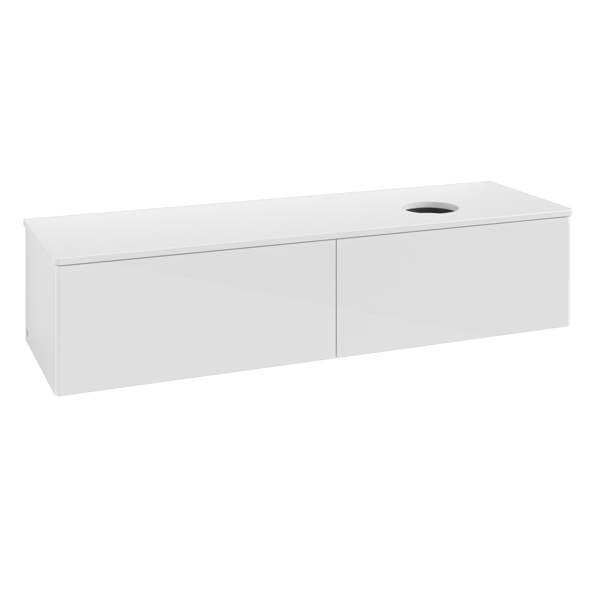 Antao Meuble sous plan, 2 tiroirs sur rails, 1600x360x500mm, Façade sans structure, Caisson: Glossy White Lacquer, Façade: Glossy White Lacquer, Plaque de recouvrement: Glossy White Lacquer