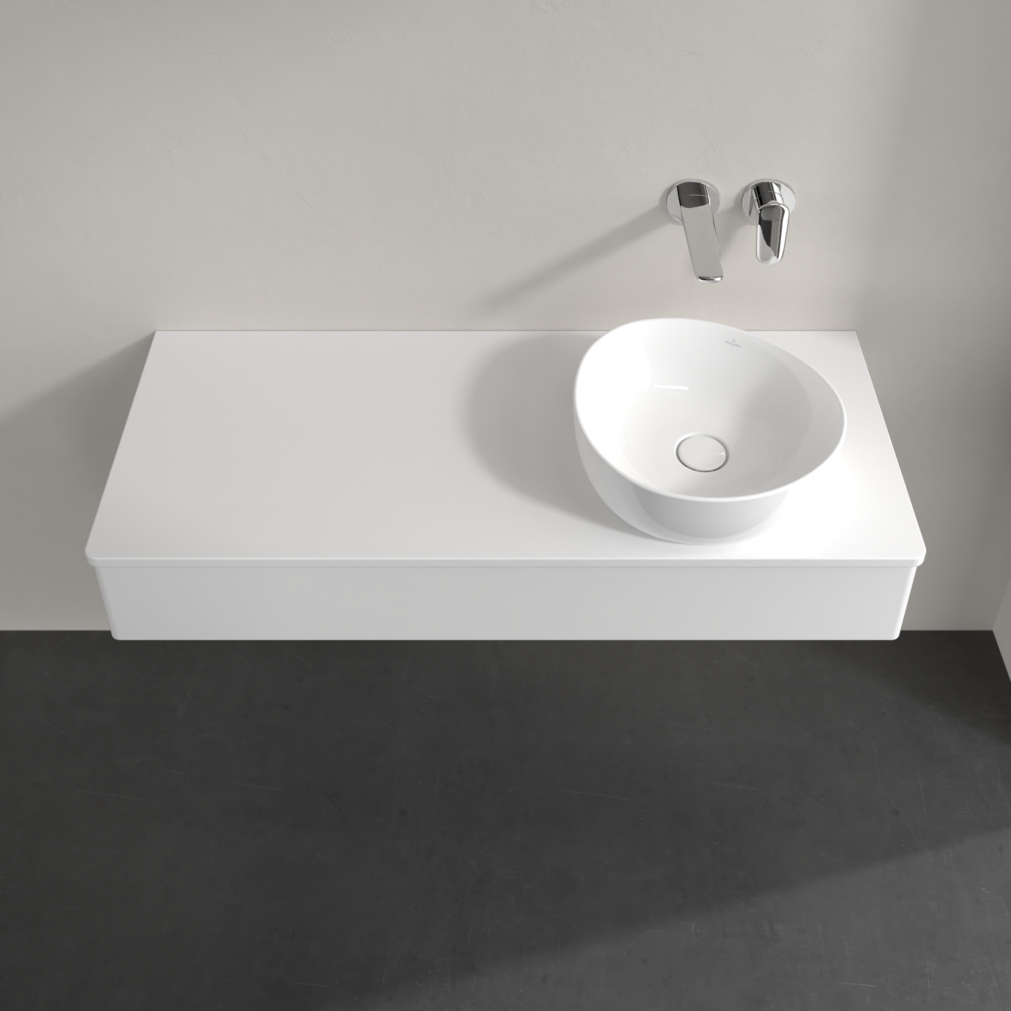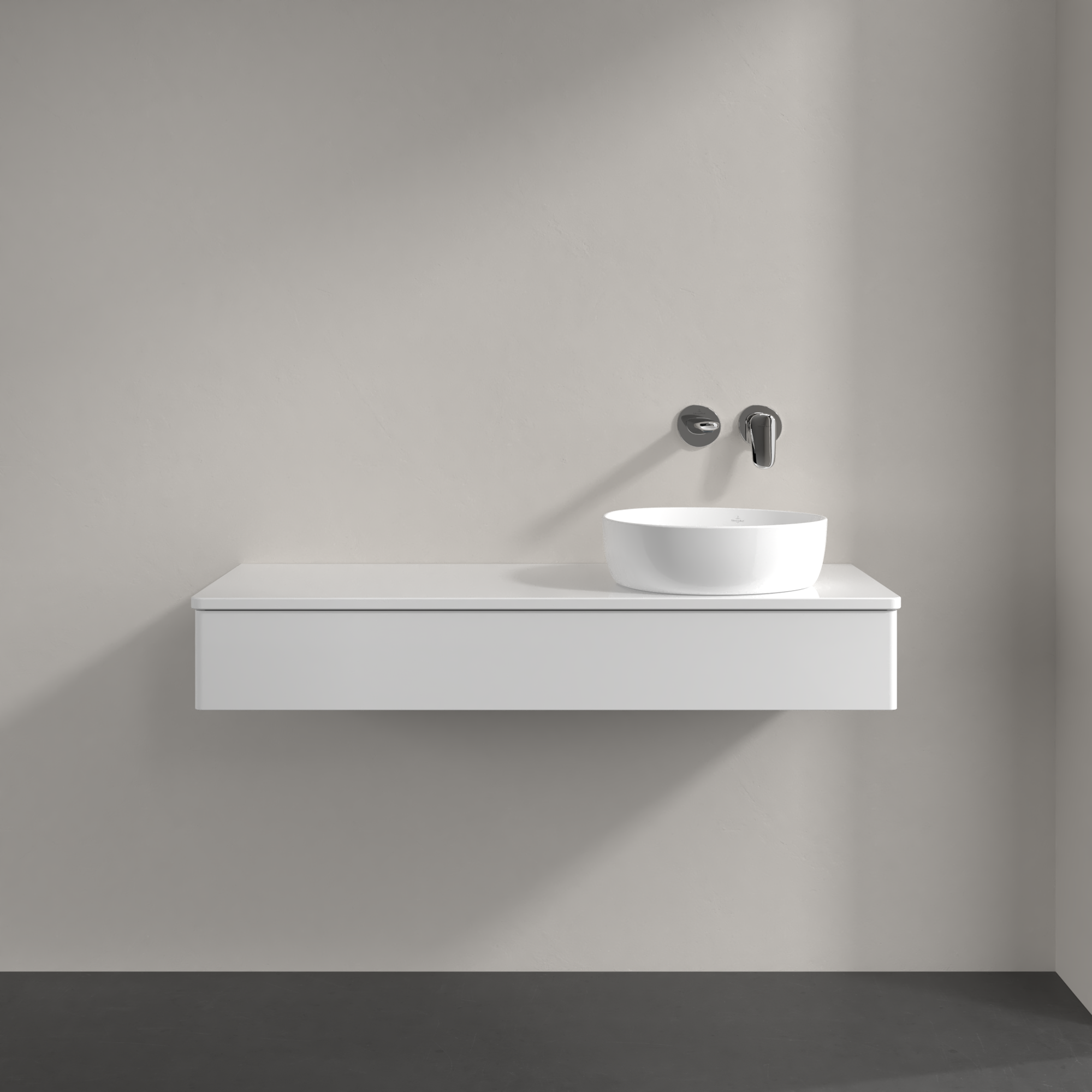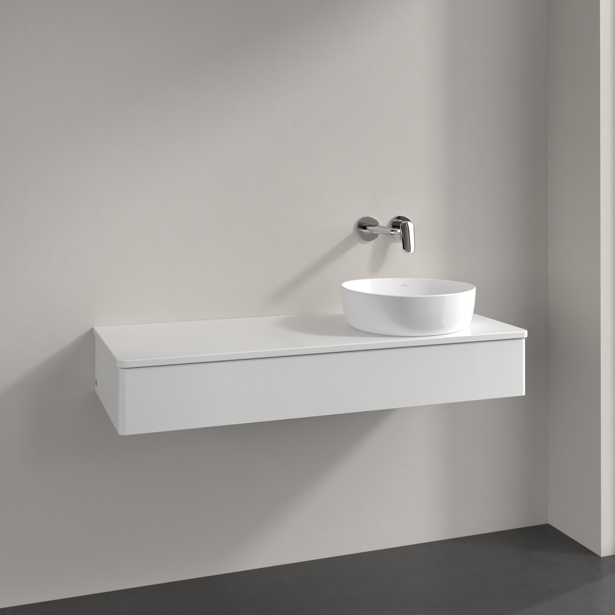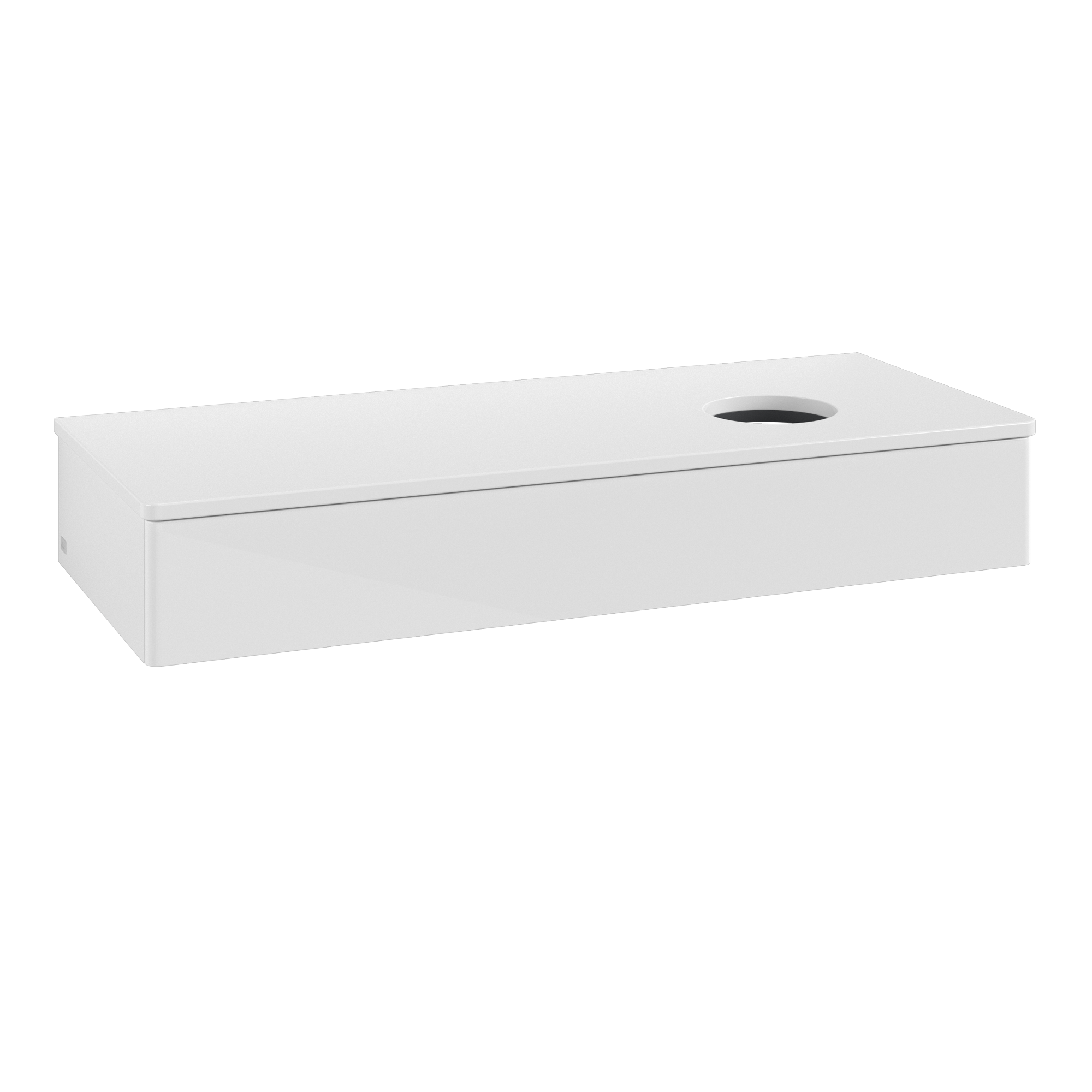 Antao Meuble sous plan, avec éclairage, 1 tiroir sur rails, 1200x190x500mm, Façade sans structure, Caisson: Glossy White Lacquer, Façade: Glossy White Lacquer, Plaque de recouvrement: Glossy White Lacquer