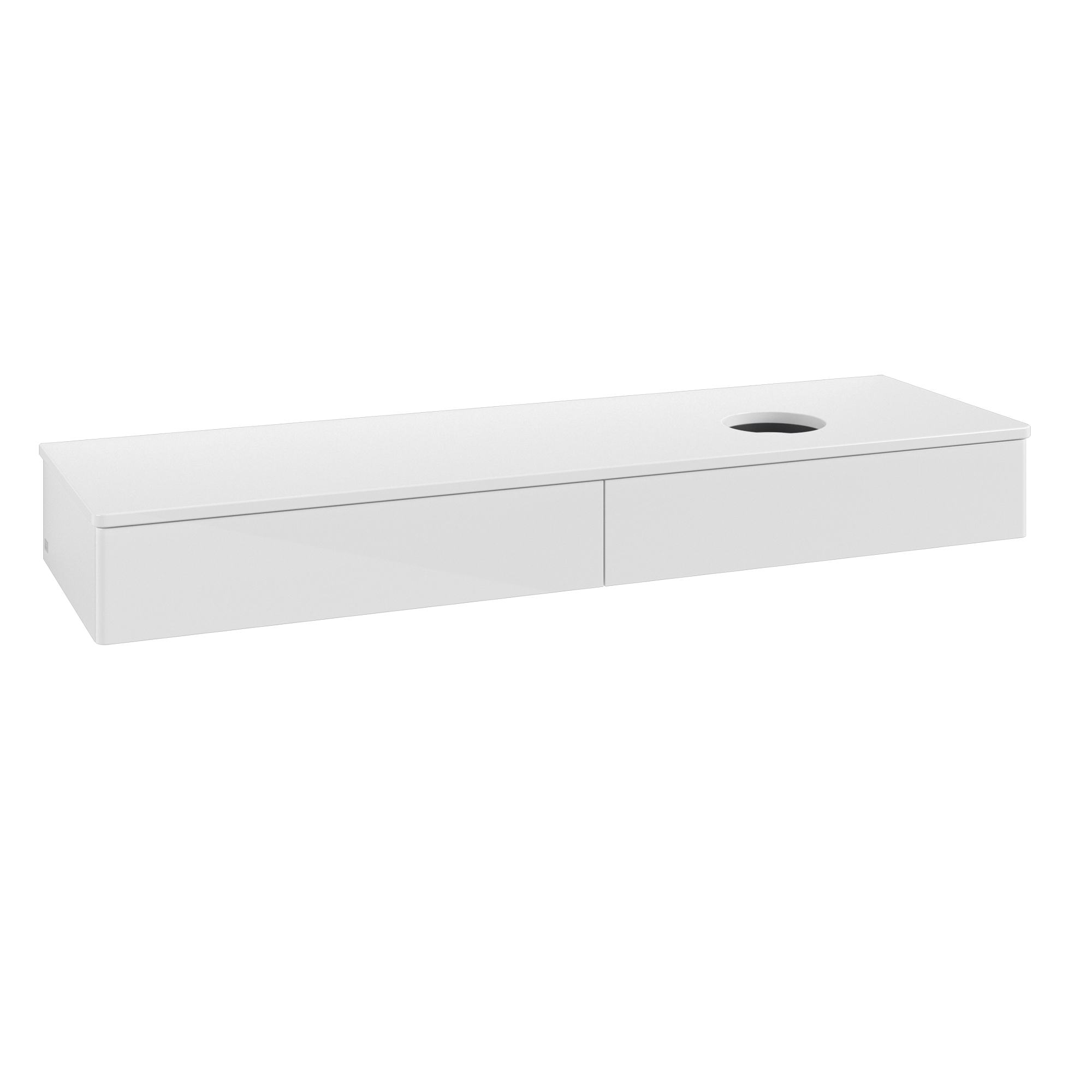 Antao Meuble sous plan, avec éclairage, 2 tiroirs sur rails, 1600x190x500mm, Façade sans structure, Caisson: Glossy White Lacquer, Façade: Glossy White Lacquer, Plaque de recouvrement: Glossy White Lacquer