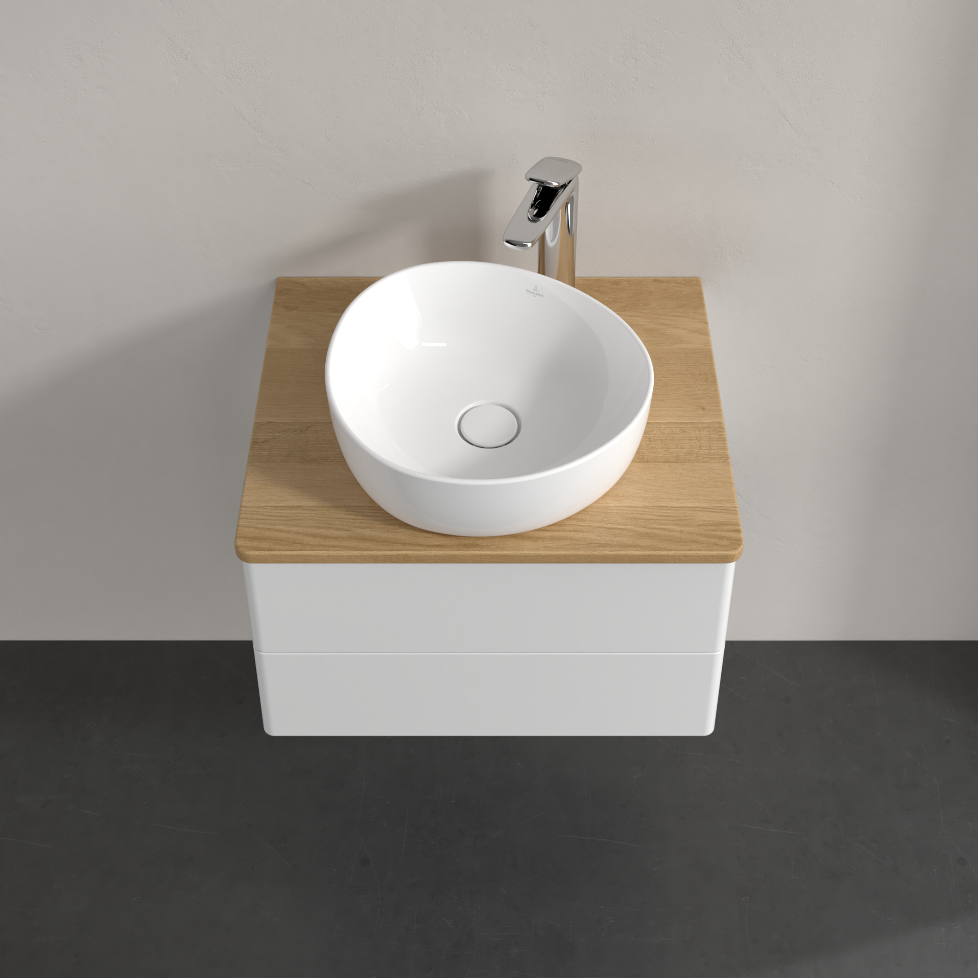 Antao Meuble sous plan, avec éclairage, 2 tiroirs sur rails, 600x360x500mm, Façade sans structure, Caisson: Glossy White Lacquer, Façade: Glossy White Lacquer, Plaque de recouvrement: Honey Oak