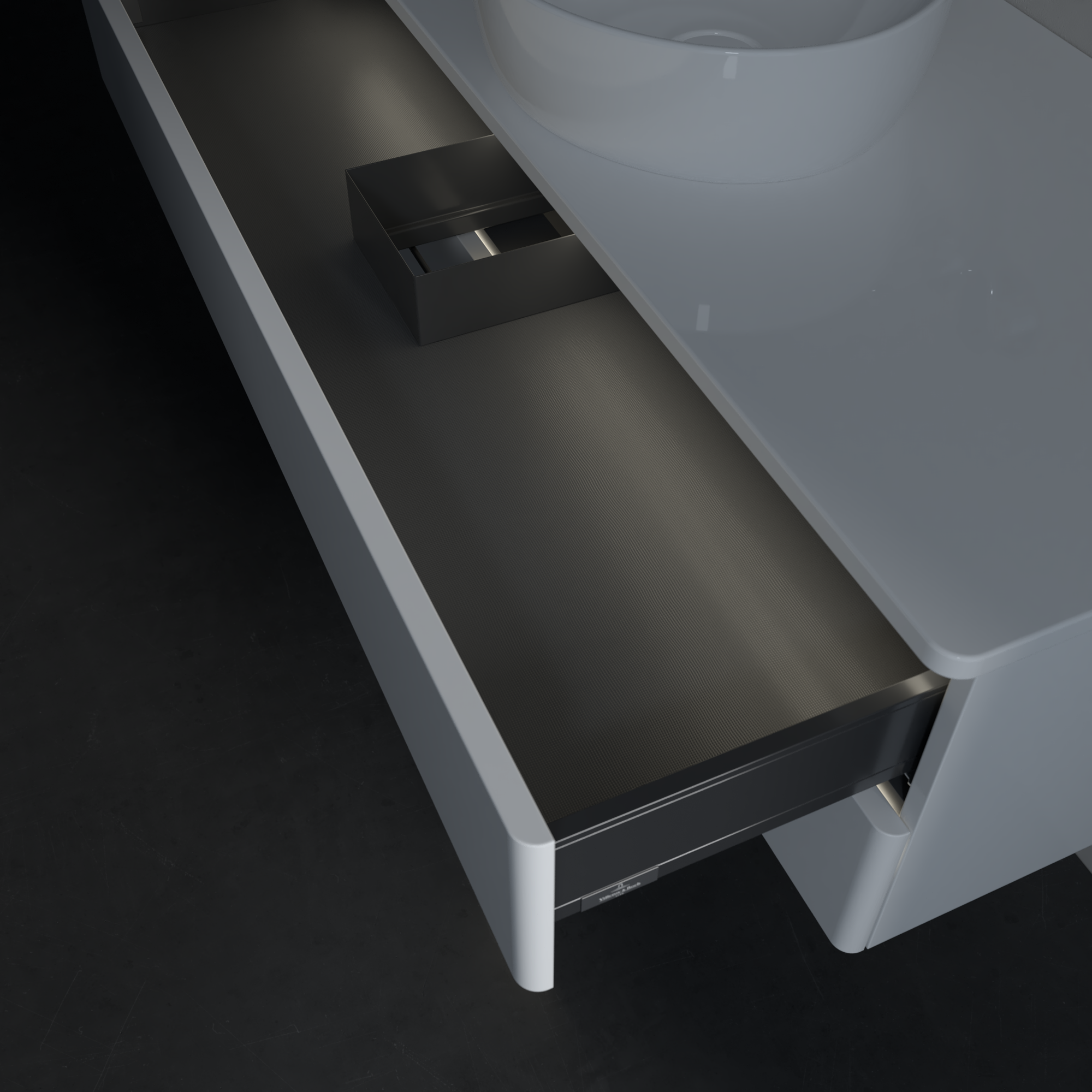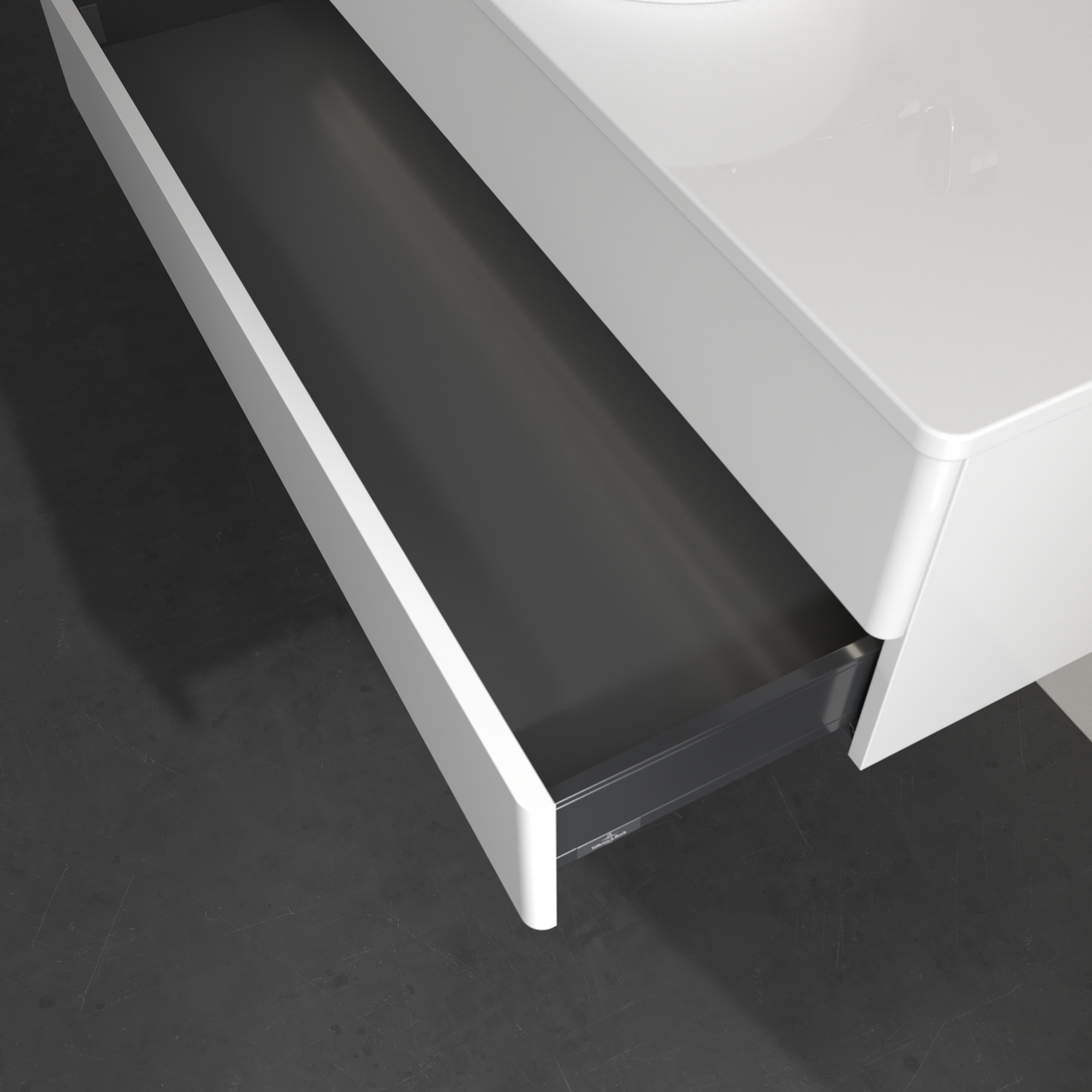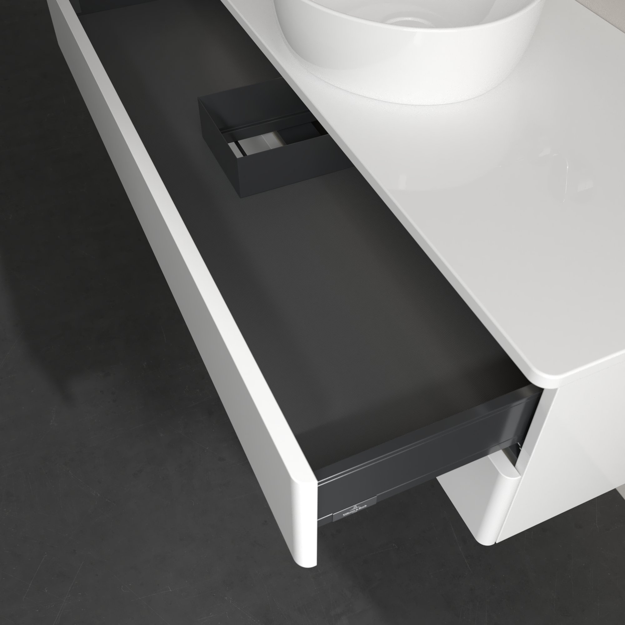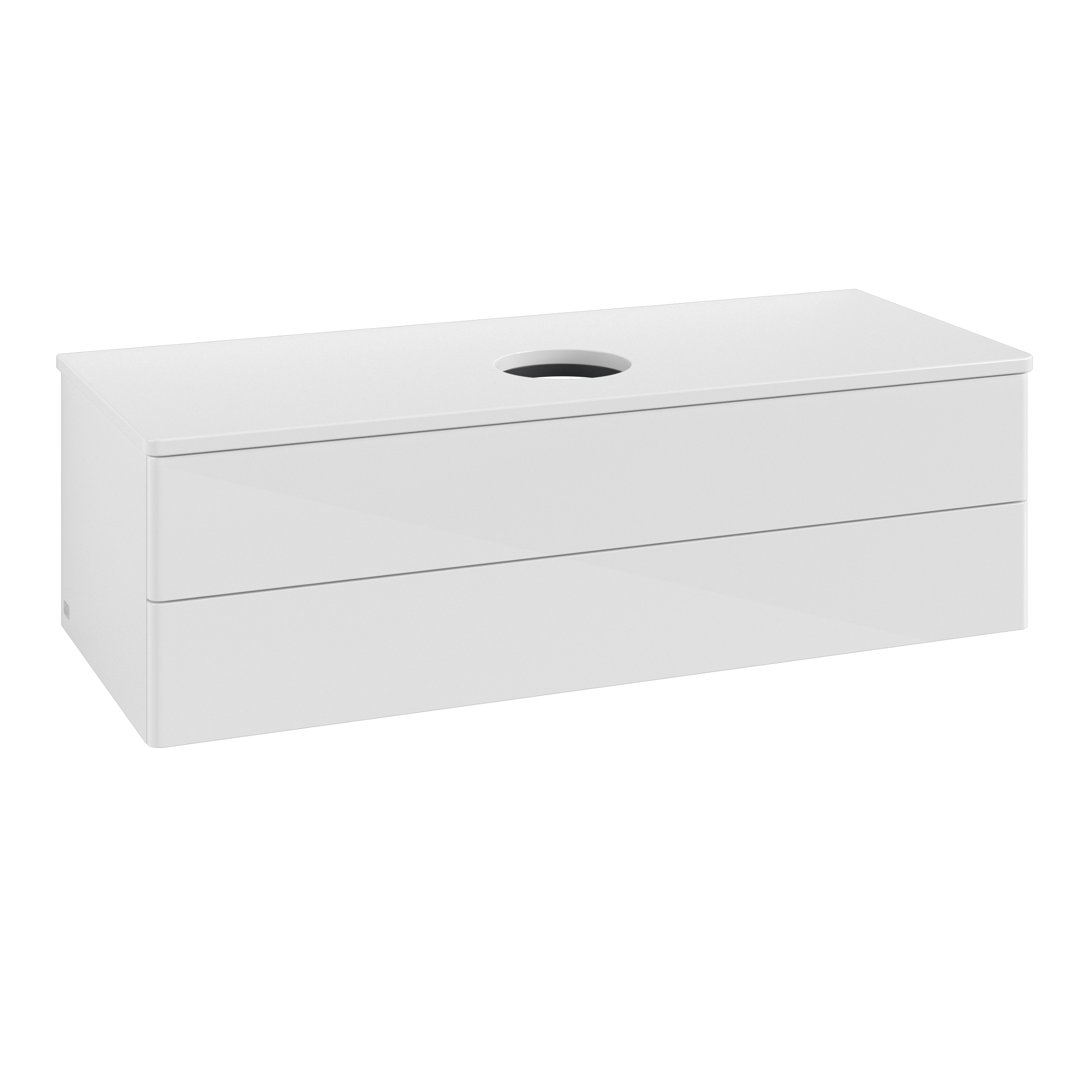 Antao Meuble sous plan, avec éclairage, 2 tiroirs sur rails, 1200x360x500mm, Façade sans structure, Caisson: Glossy White Lacquer, Façade: Glossy White Lacquer, Plaque de recouvrement: Glossy White Lacquer