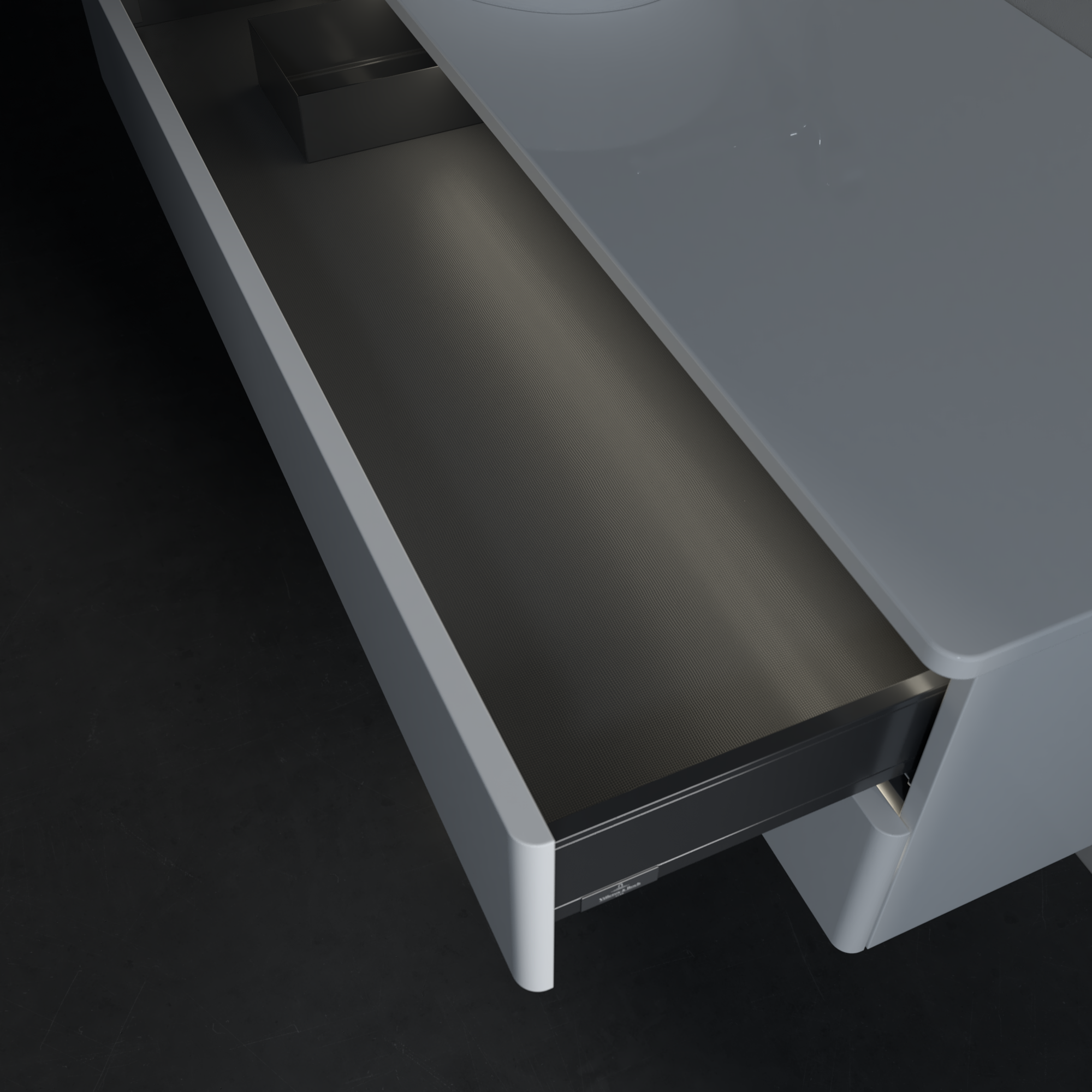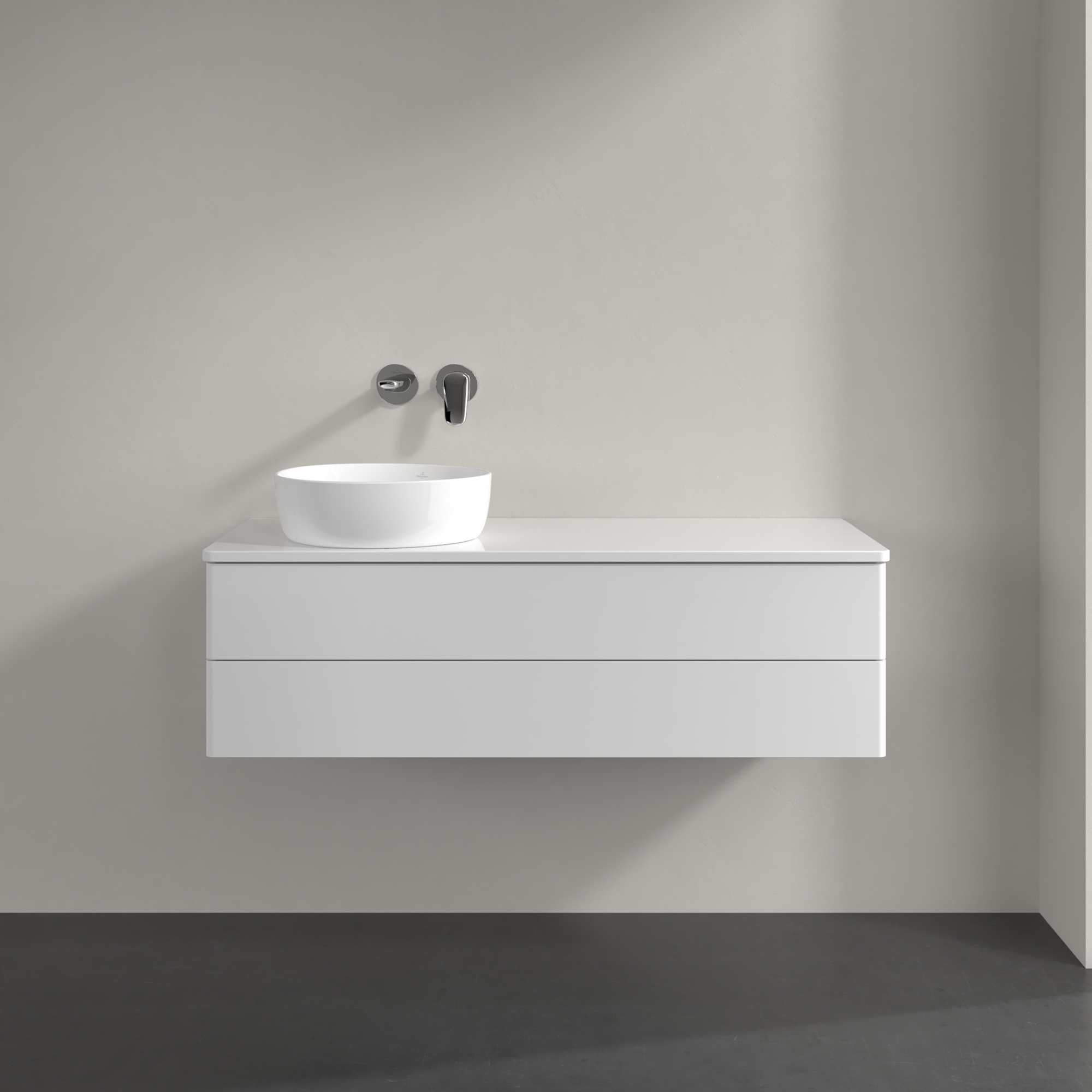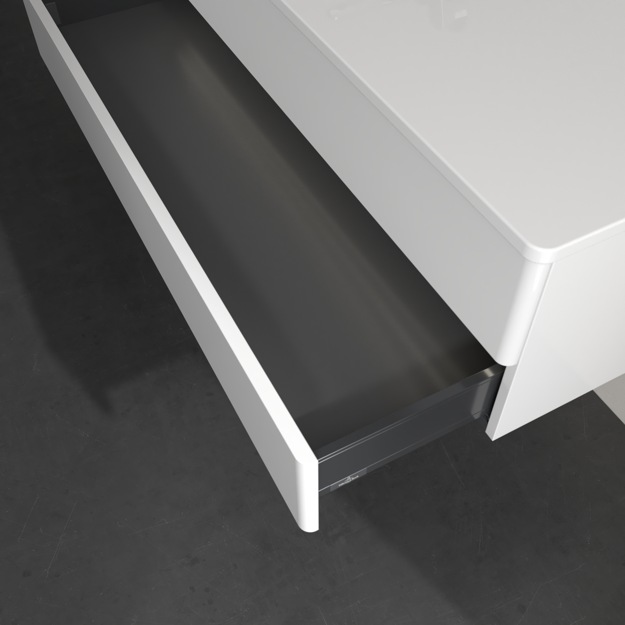 Antao Meuble sous plan, avec éclairage, 2 tiroirs sur rails, 1200x360x500mm, Façade sans structure, Caisson: Glossy White Lacquer, Façade: Glossy White Lacquer, Plaque de recouvrement: Glossy White Lacquer