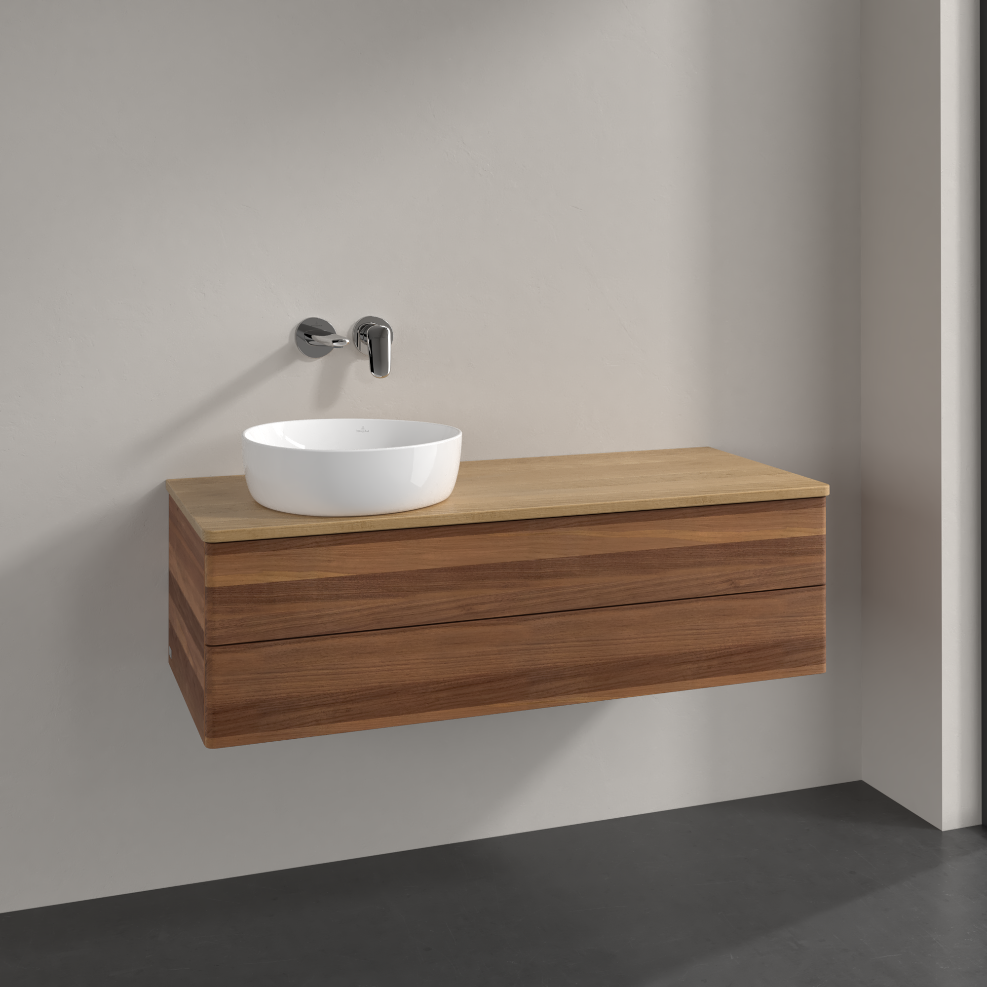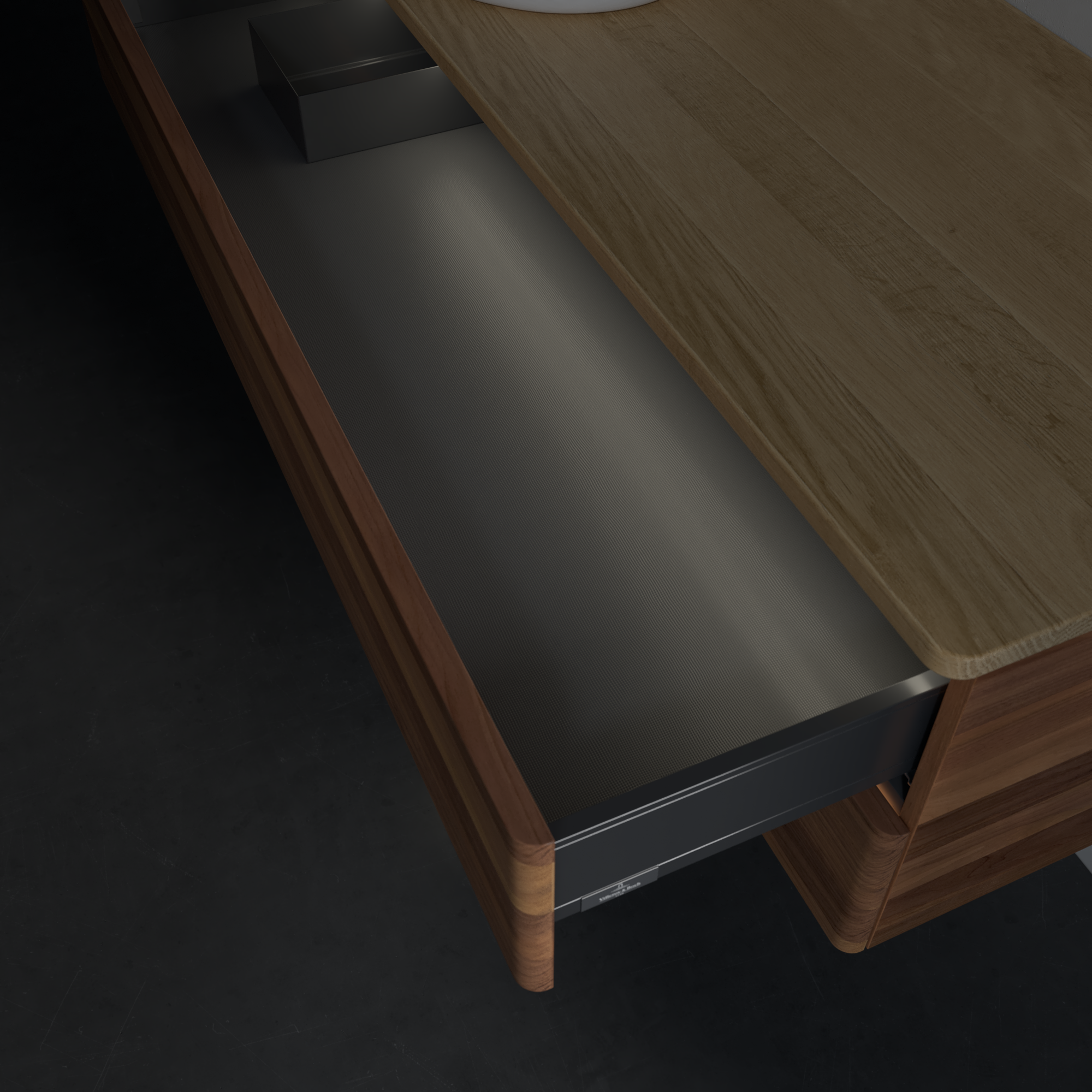 Antao Meuble sous plan, avec éclairage, 2 tiroirs sur rails, 1200x360x500mm, Façade sans structure, Caisson: Warm Walnut, Façade: Warm Walnut, Plaque de recouvrement: Honey Oak