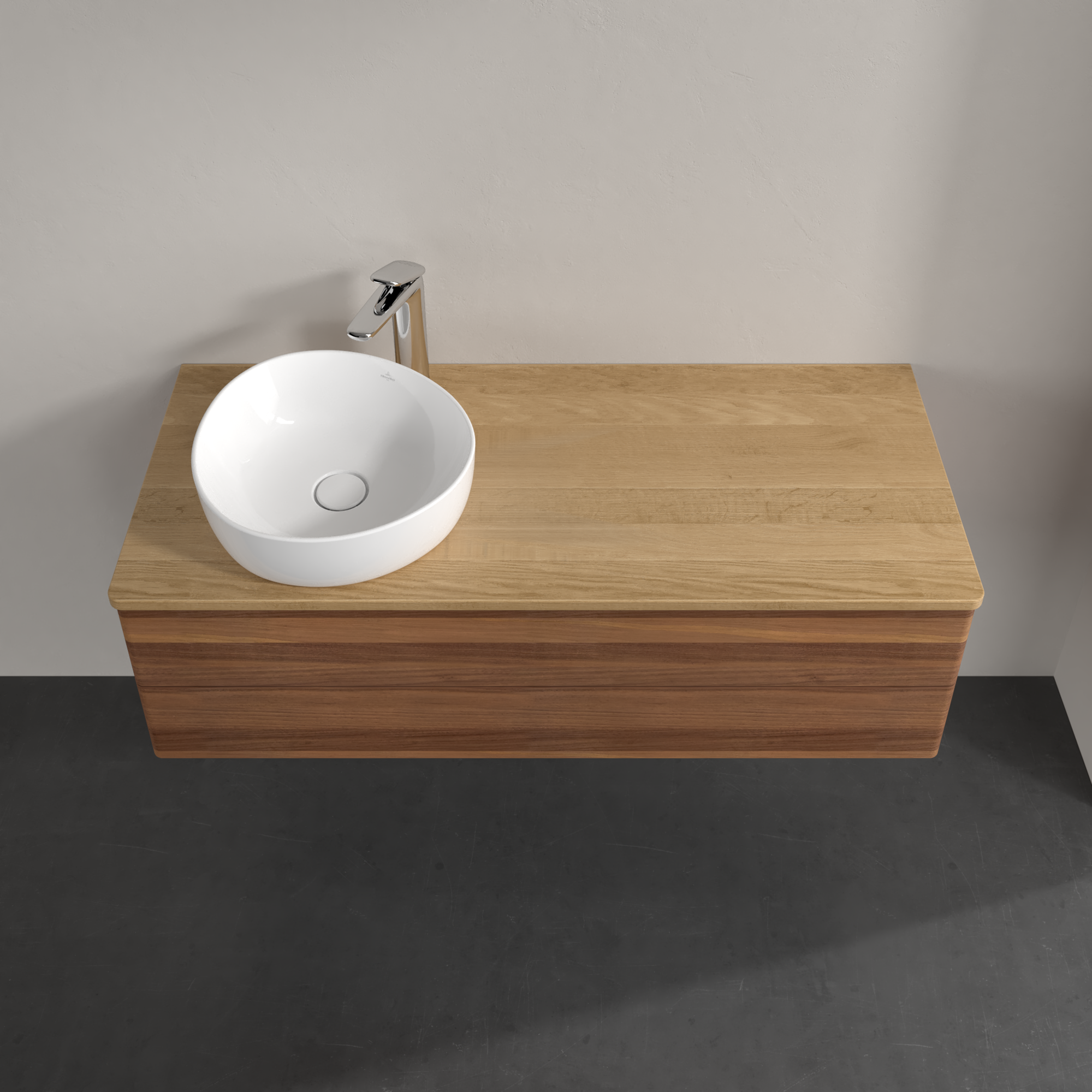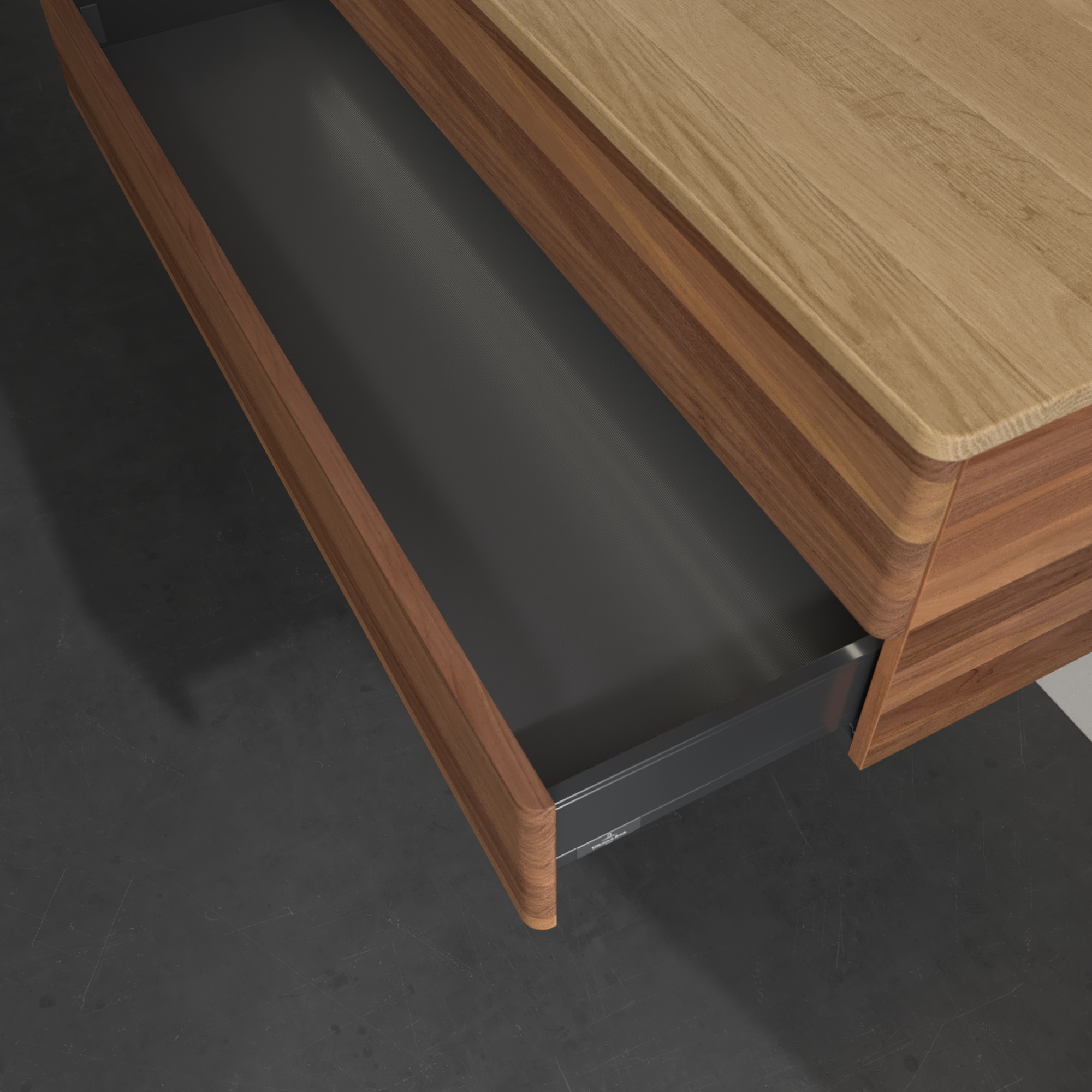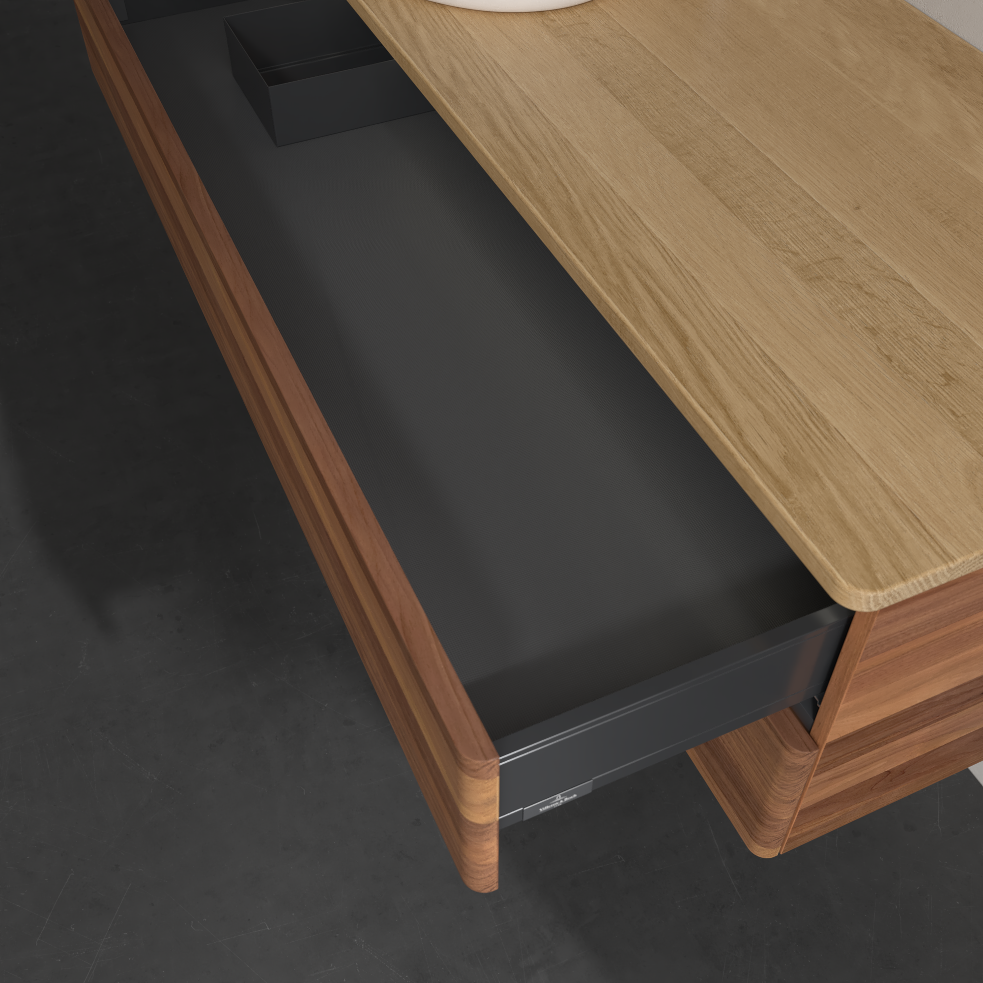 Antao Meuble sous plan, avec éclairage, 2 tiroirs sur rails, 1200x360x500mm, Façade sans structure, Caisson: Warm Walnut, Façade: Warm Walnut, Plaque de recouvrement: Honey Oak