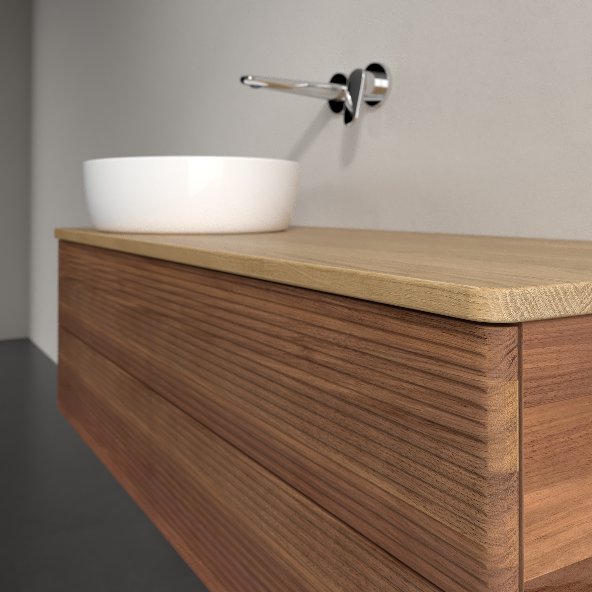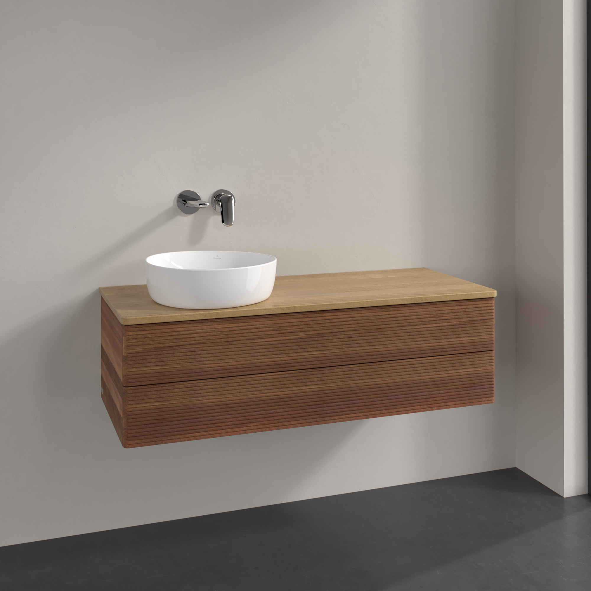 Antao Meuble sous plan, avec éclairage, 2 tiroirs sur rails, 1200x360x500mm, Façade avec structure, Caisson: Warm Walnut, Façade: Warm Walnut, Plaque de recouvrement: Honey Oak