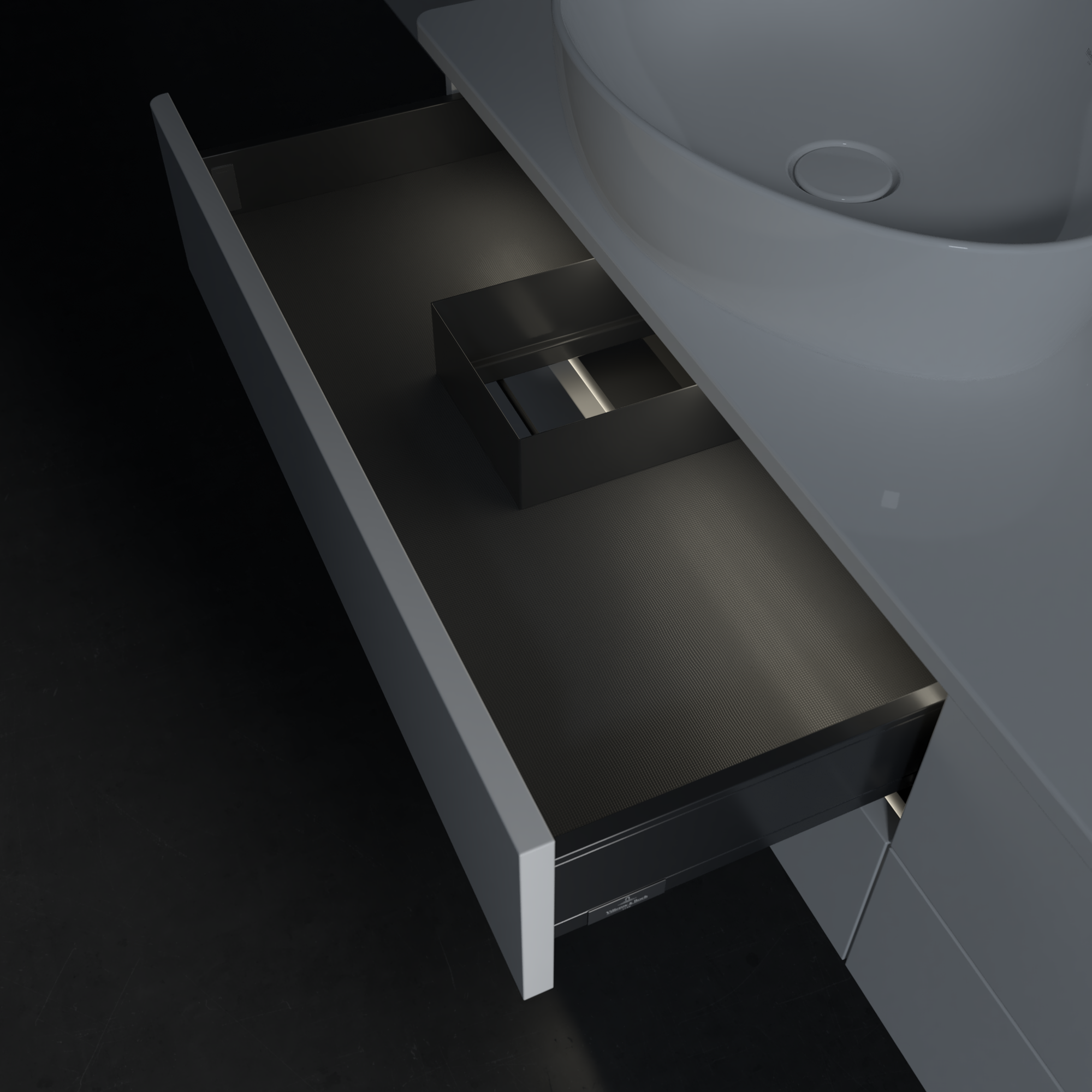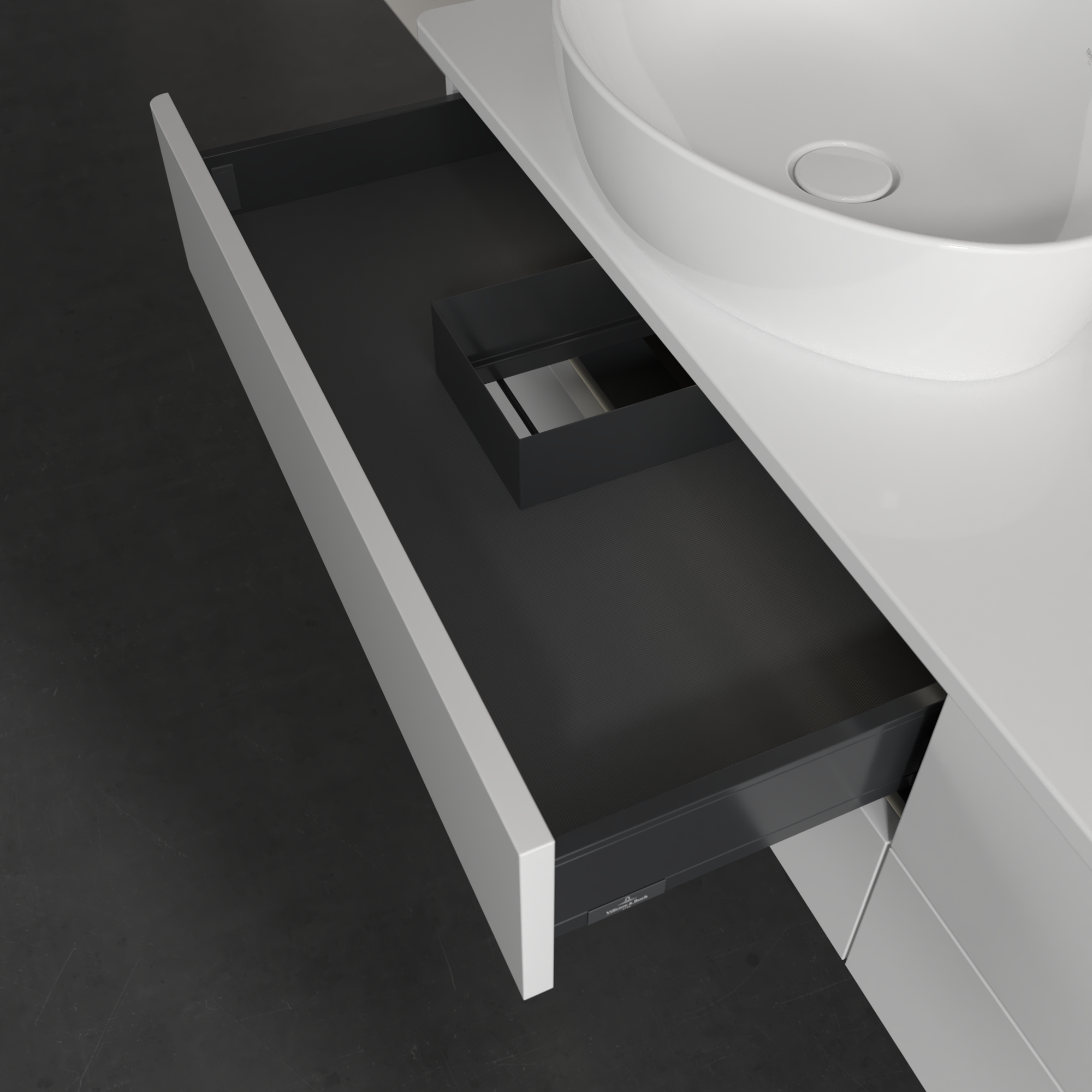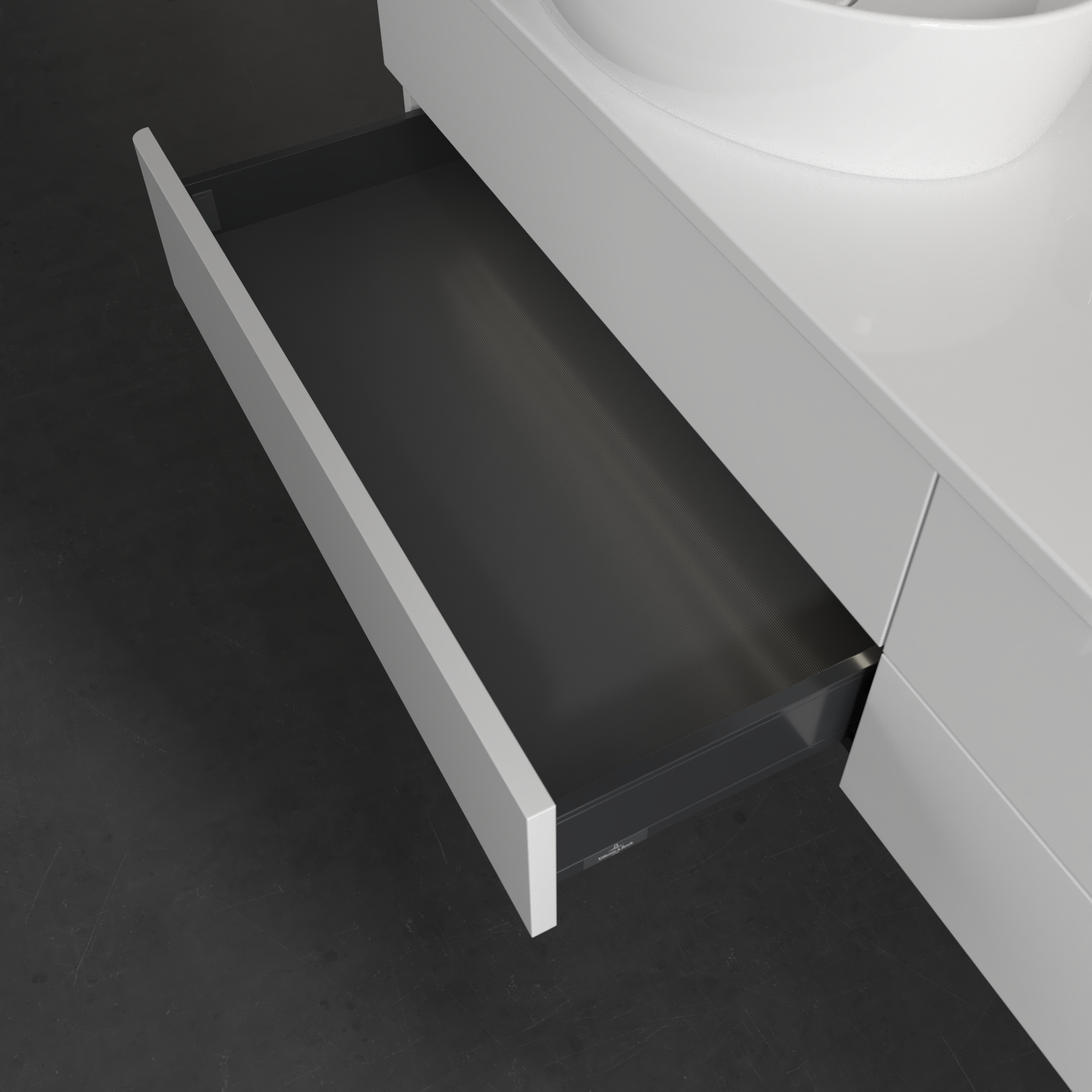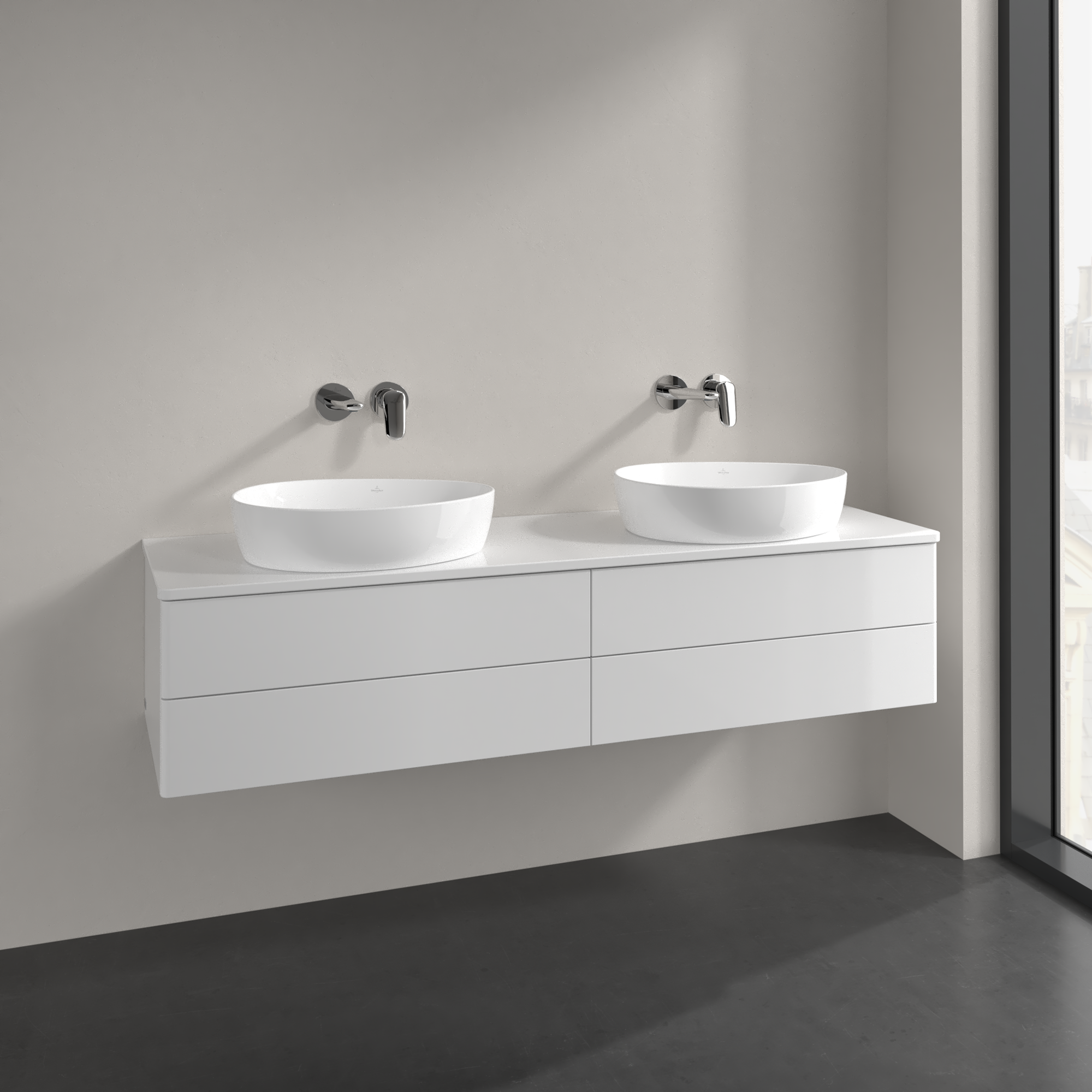 Antao Meuble sous plan, avec éclairage, 4 tiroirs sur rails, 1600x360x500mm, Façade sans structure, Caisson: Glossy White Lacquer, Façade: Glossy White Lacquer, Plaque de recouvrement: Glossy White Lacquer