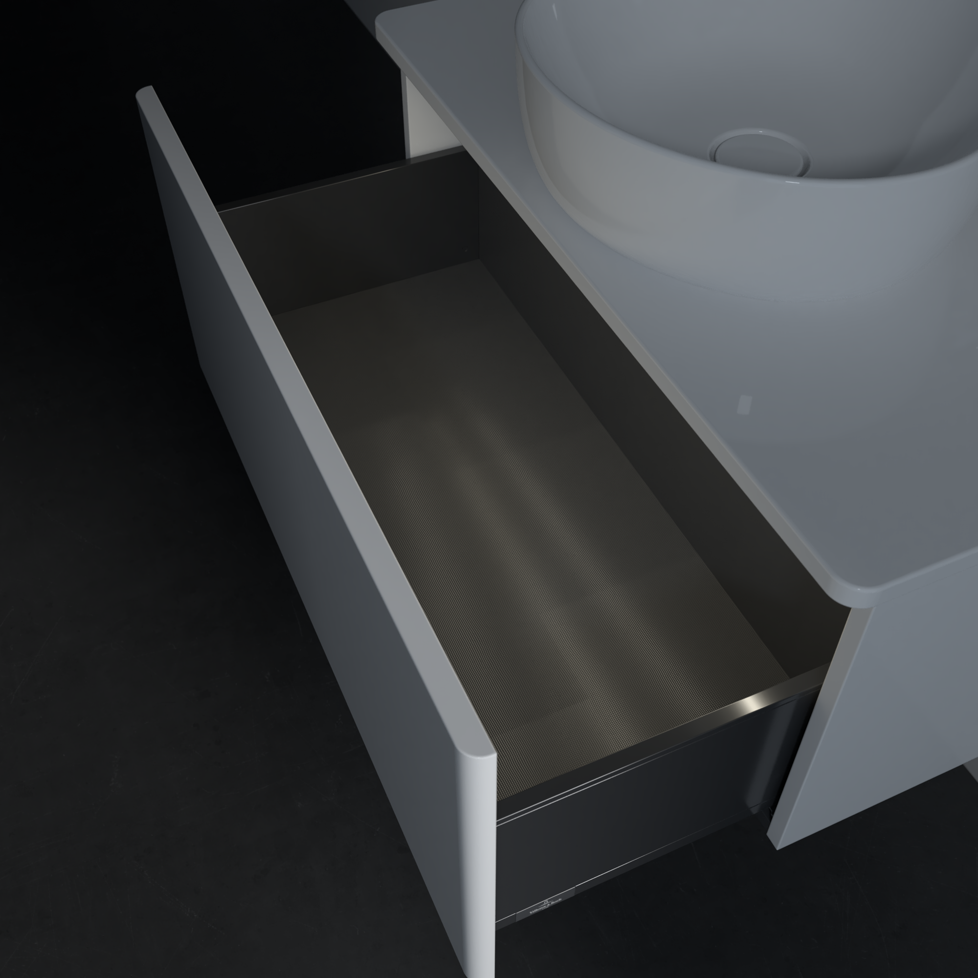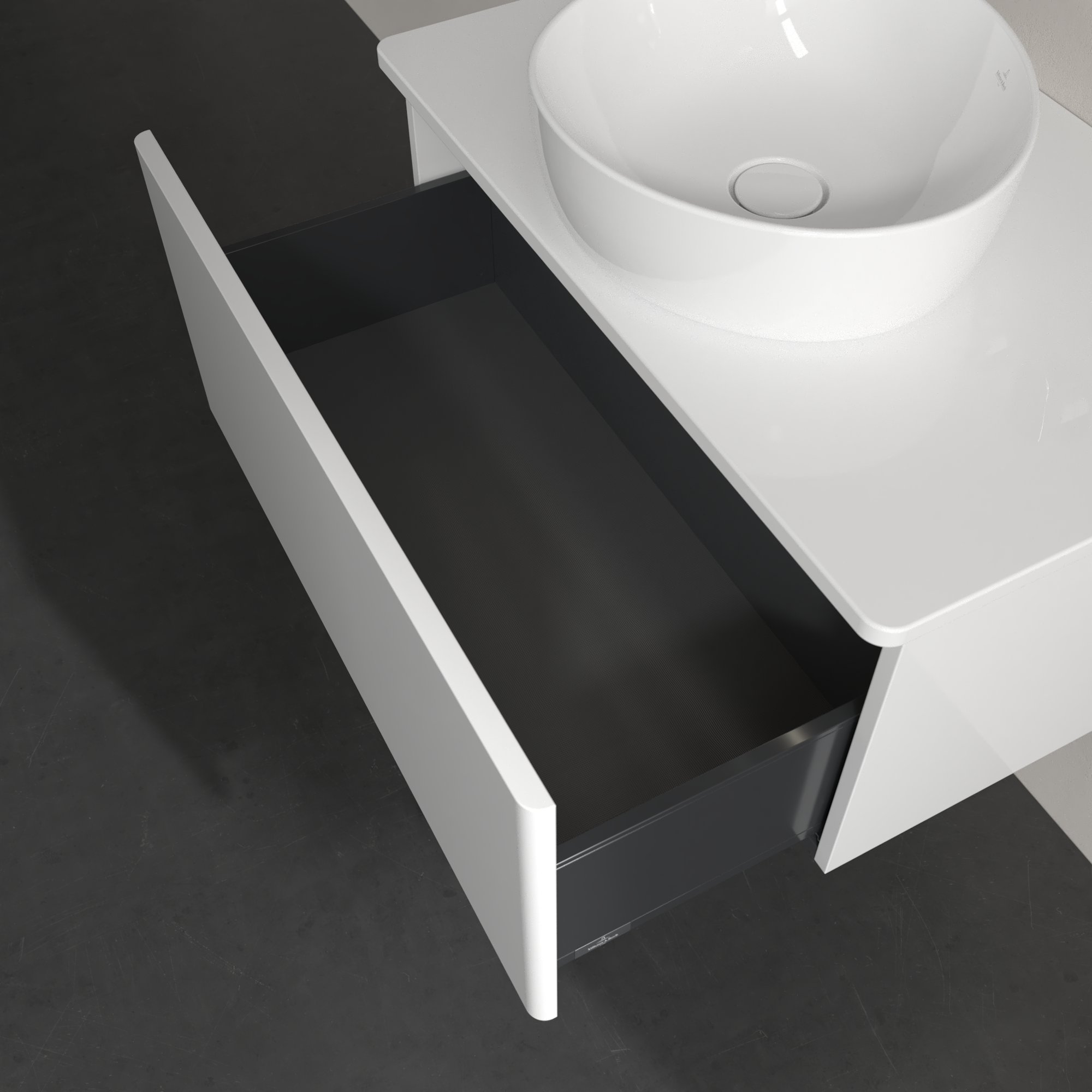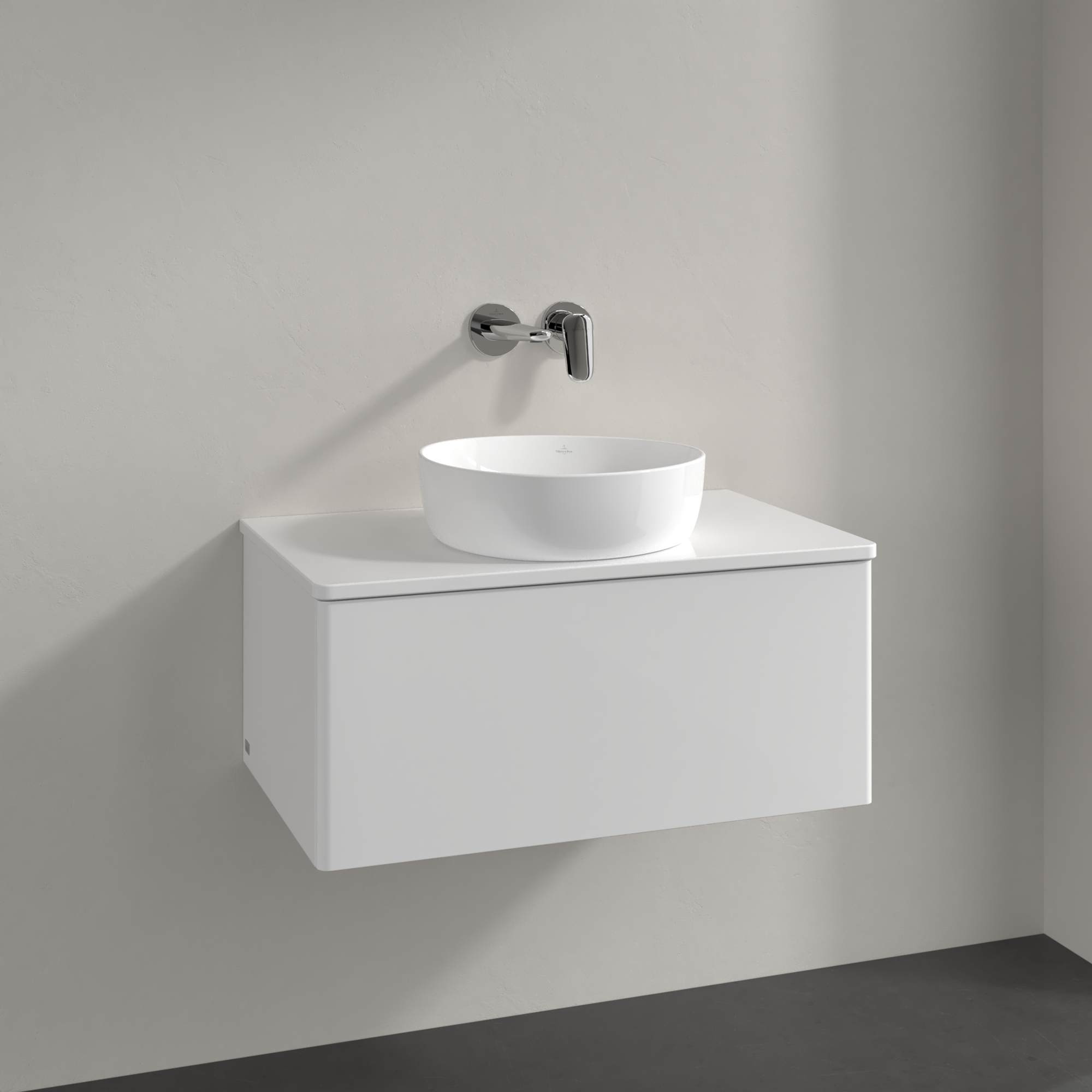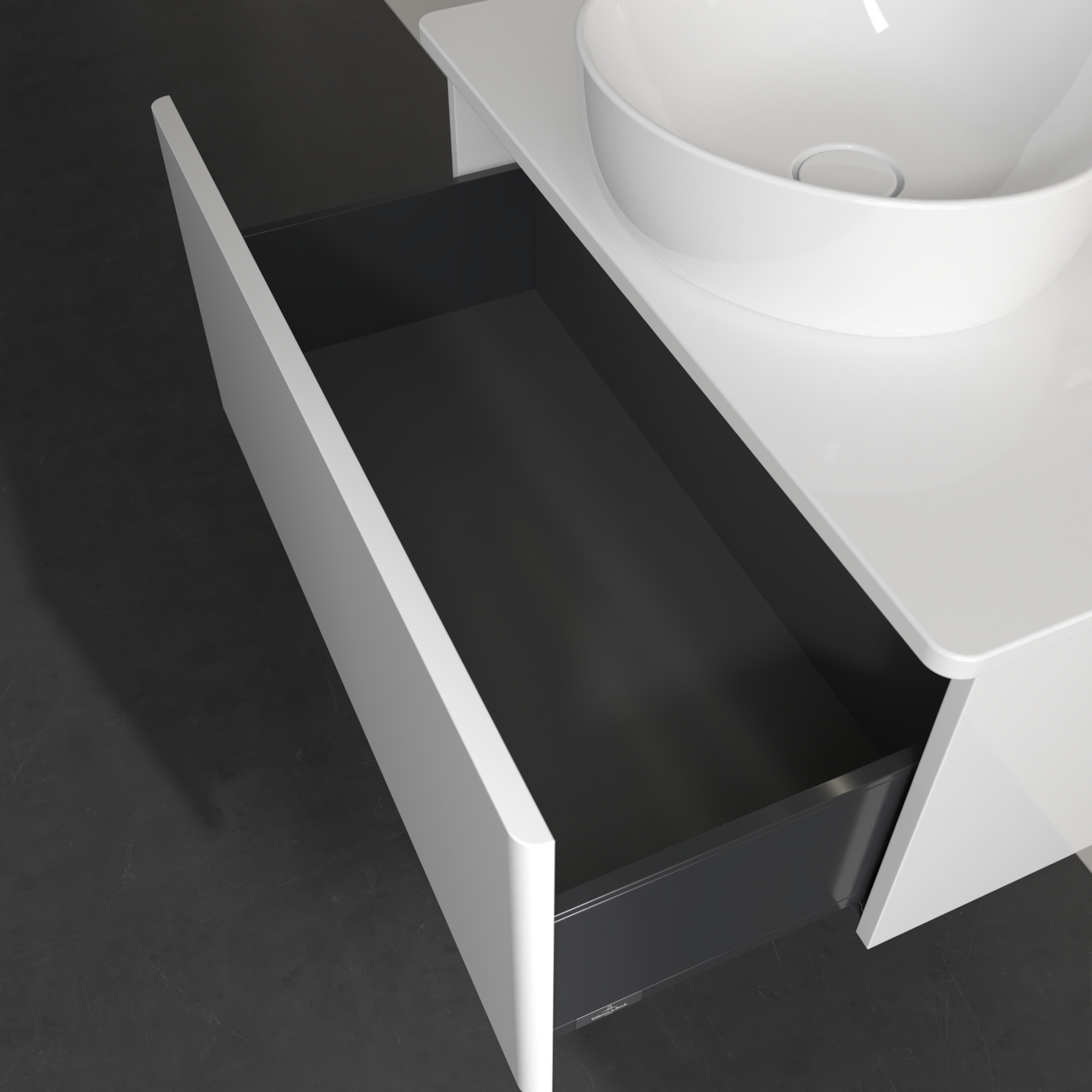 Antao Meuble sous plan, avec éclairage, 1 tiroir sur rails, 800x360x500mm, Façade sans structure, Caisson: Glossy White Lacquer, Façade: Glossy White Lacquer, Plaque de recouvrement: Glossy White Lacquer